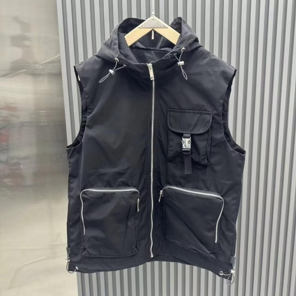 가을 2024 유행 브랜드 솔리드 컬러 캐주얼 빠른 건조 모든 경기 멀티 포켓 후드 조끼 남자 조끼 민소매 벽스토어 가기