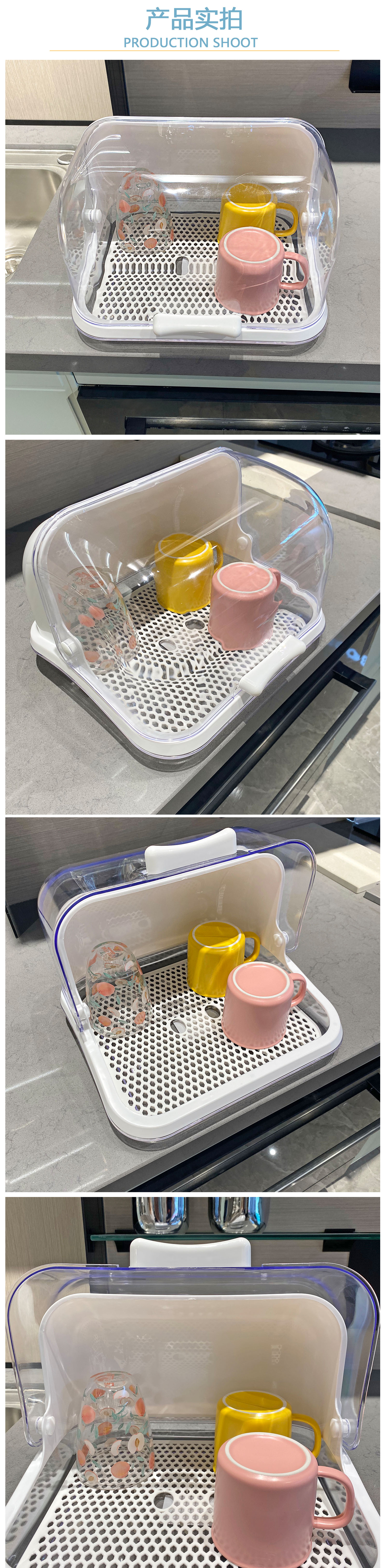 가정용 주방 물 컵 아기 병 보관 상자 배수 어린이 식기 보관 상자 플립 커버 방진 보관 상자