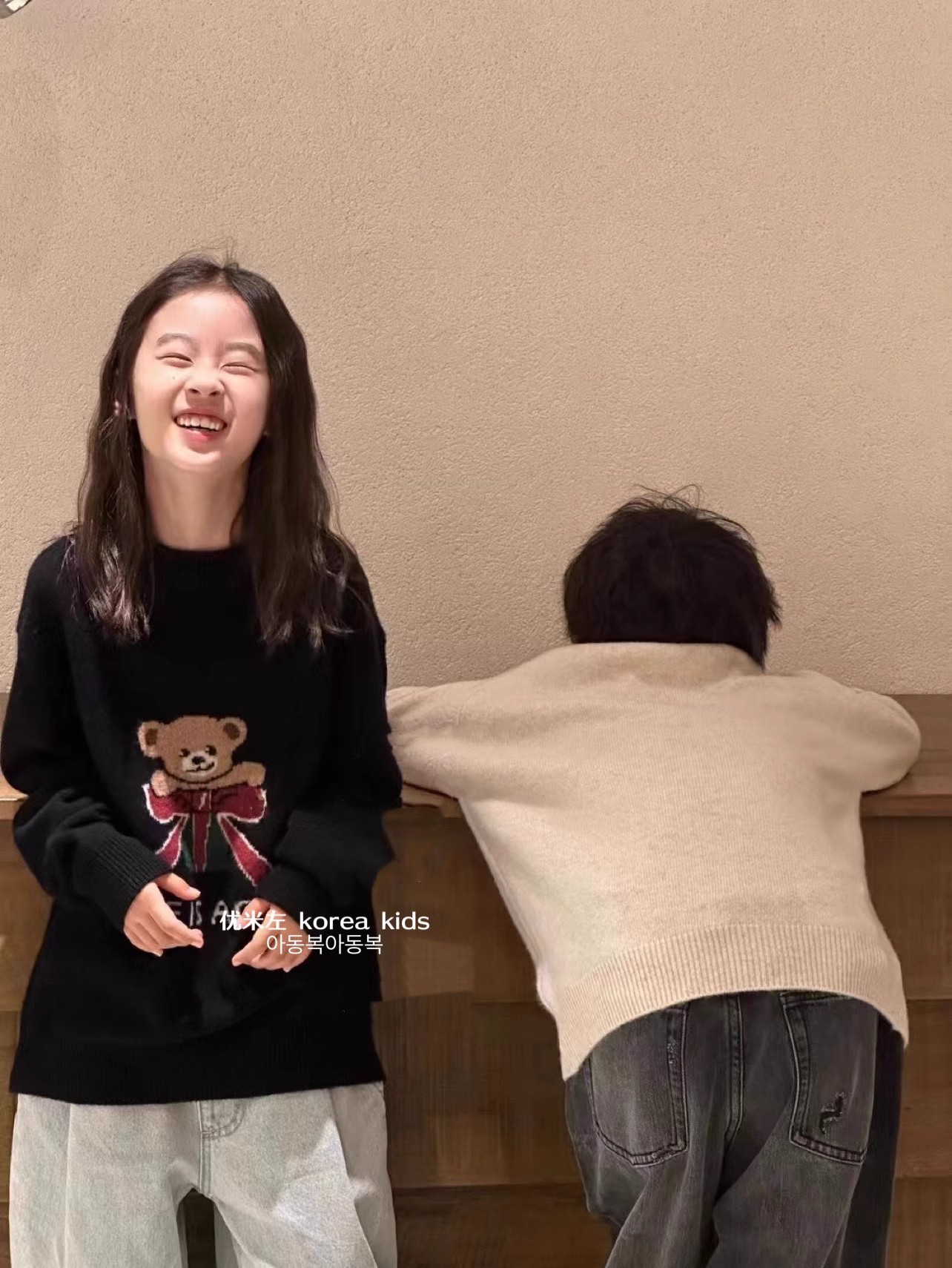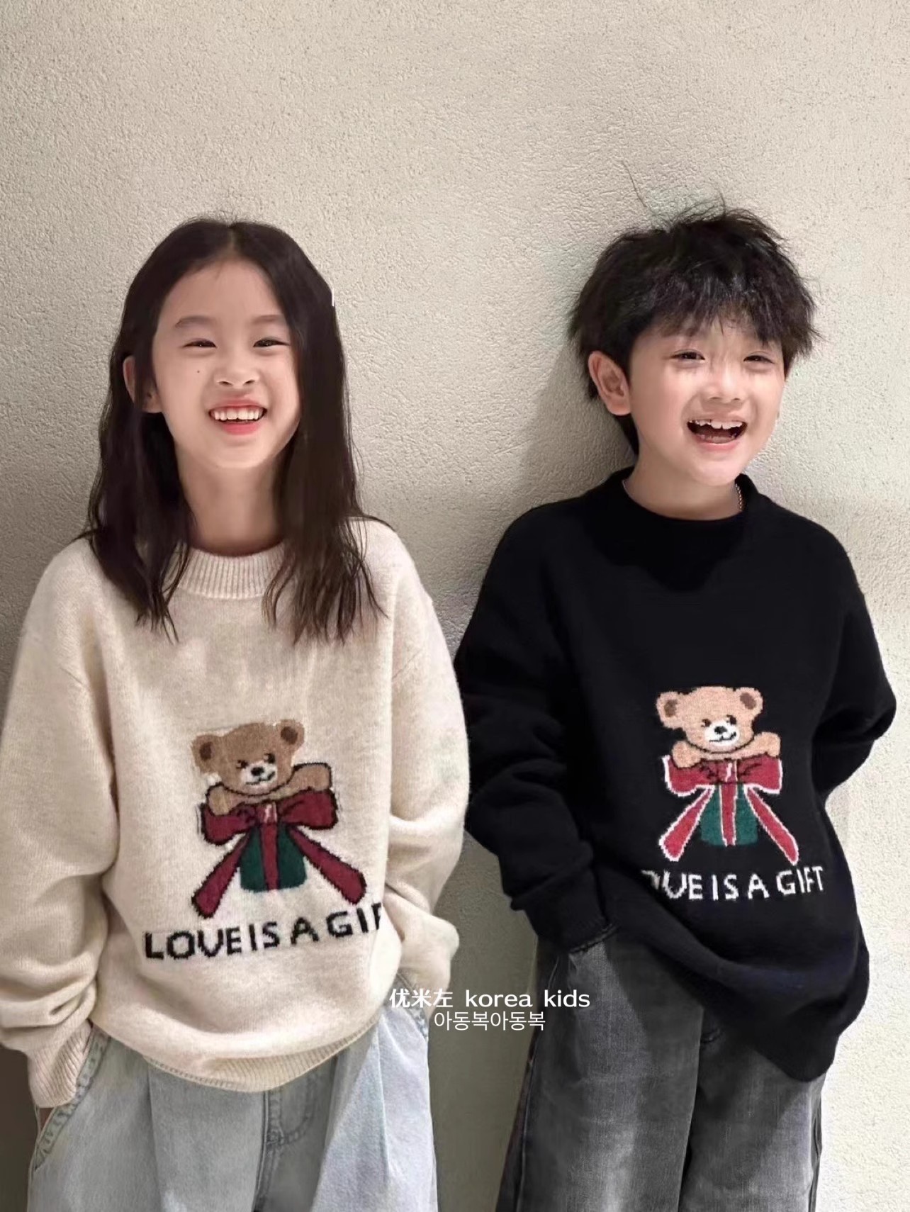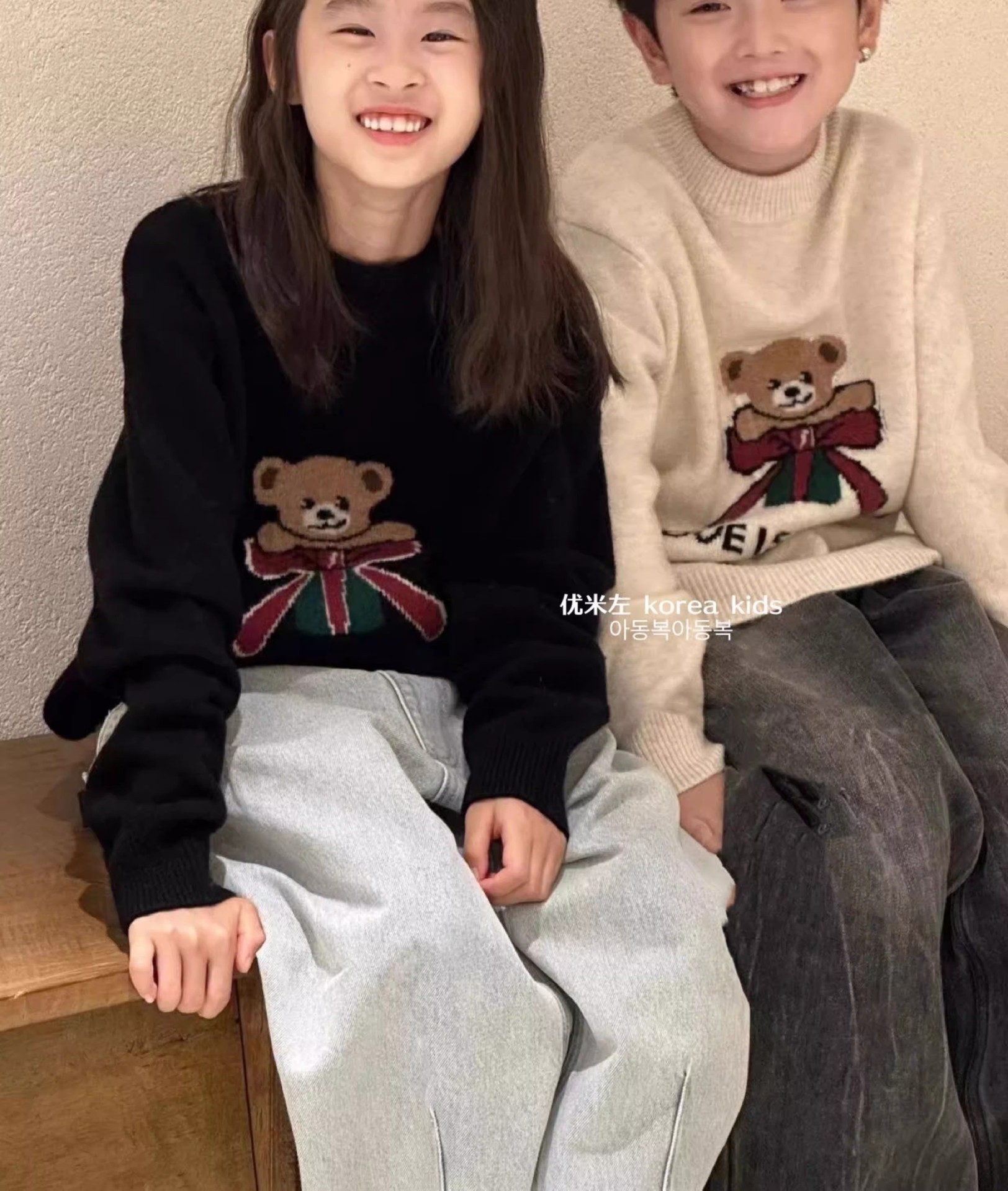어린이 의류 귀여운 소녀 스웨터 2024 새로운 가을과 겨울 소년과 소녀 곰 니트 셔츠 큰 어린이 탑스토어 가기
