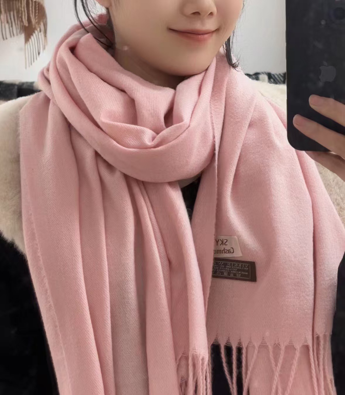 SKY 여성용 다용도 한국 캐시미어 스카프 겨울 솔리드 컬러 200g 스카프 앙코라 레드 태슬 모조 캐시미어 두꺼운스토어 가기
