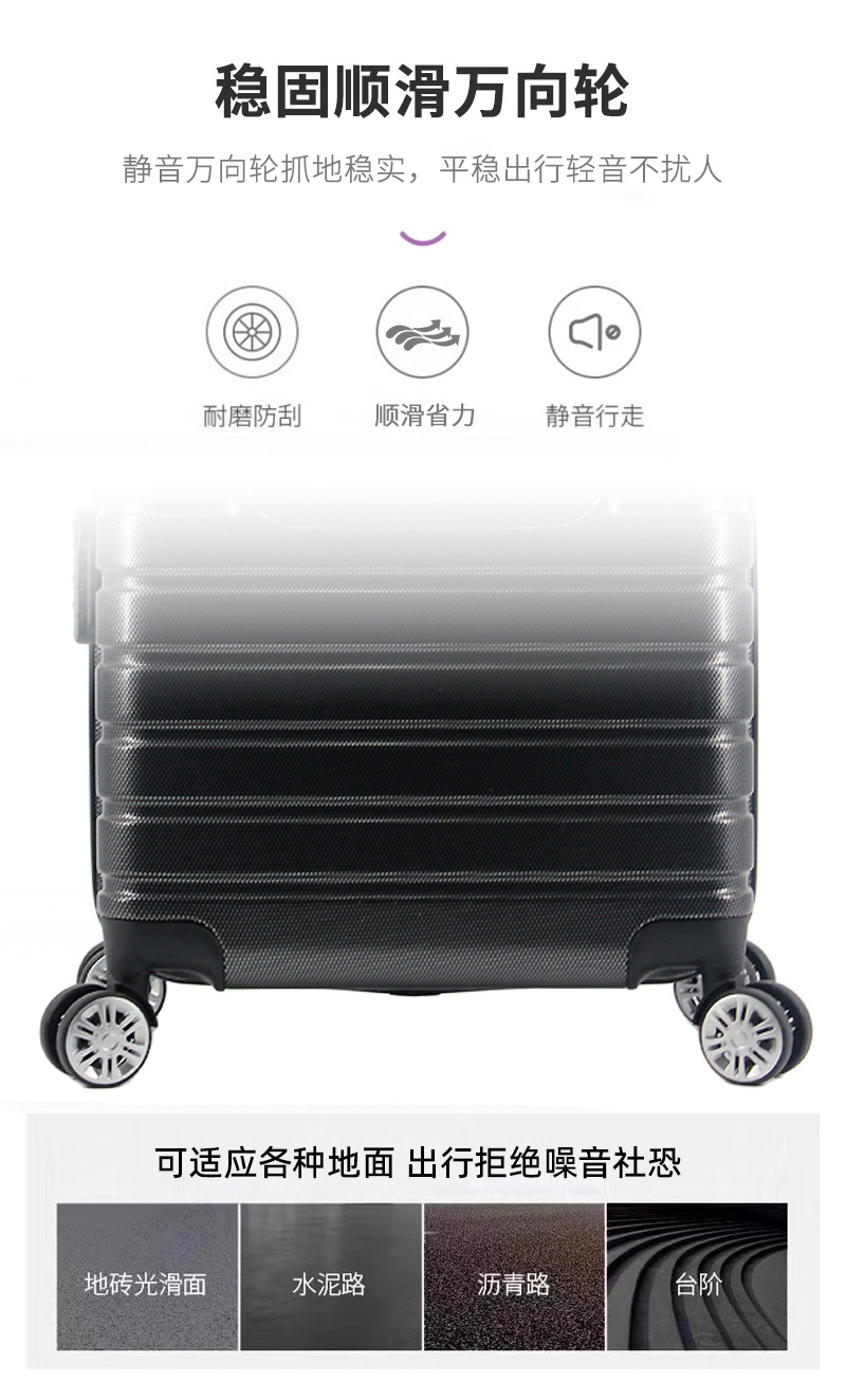 16inch 여행용 캐리어, 긁힘 방지 및 내마모성 기내용 캐리어, 회전식 바퀴가 달린 트롤리 캐리어, 비즈니스 여행용 트롤리 캐리어, 비밀번호 잠금 캐리어스토어 가기
