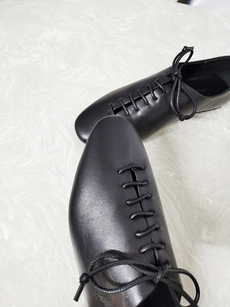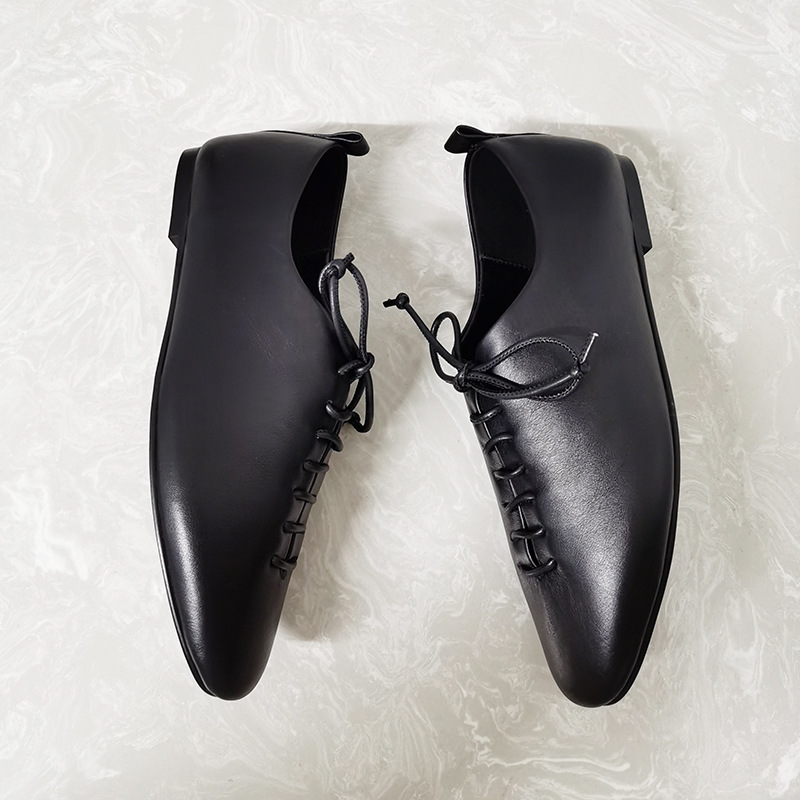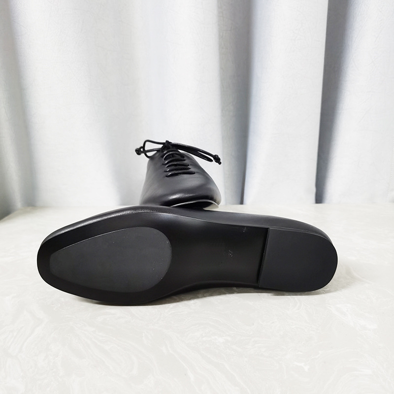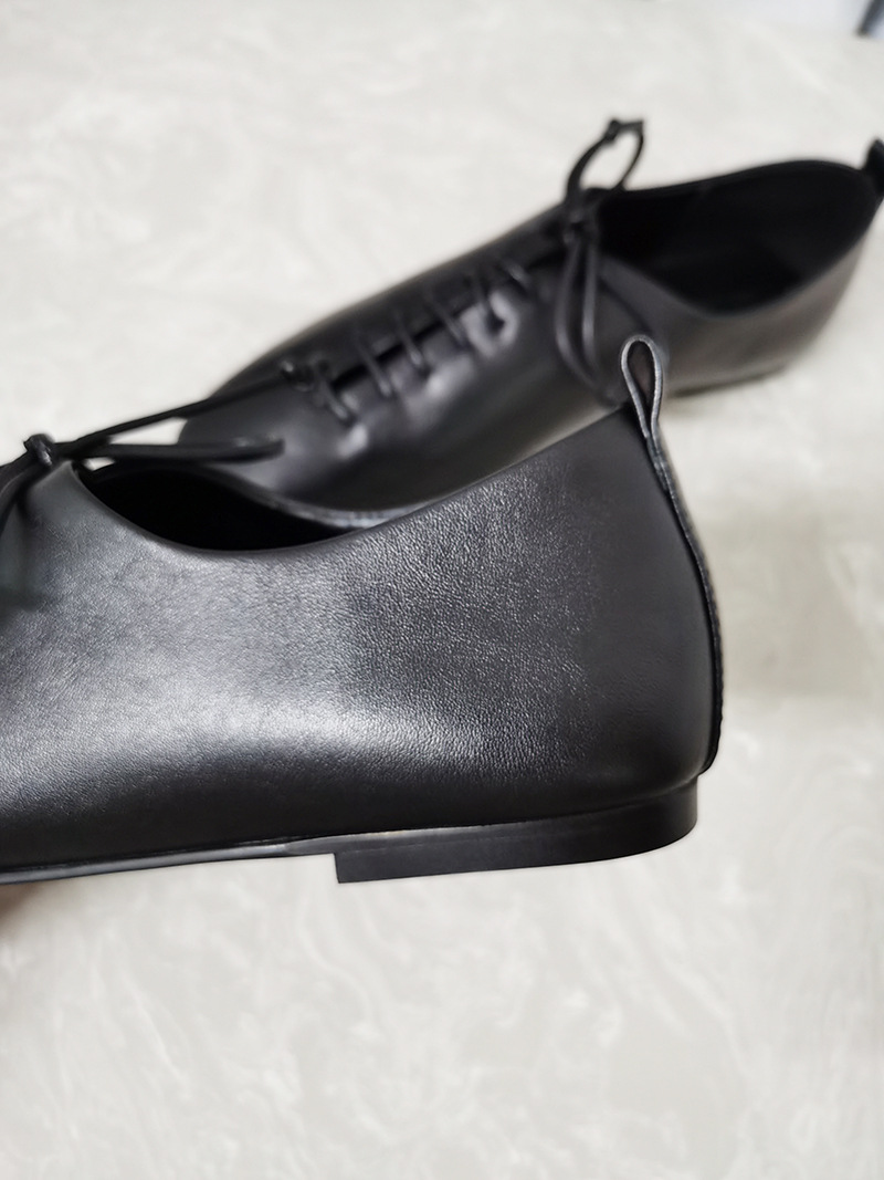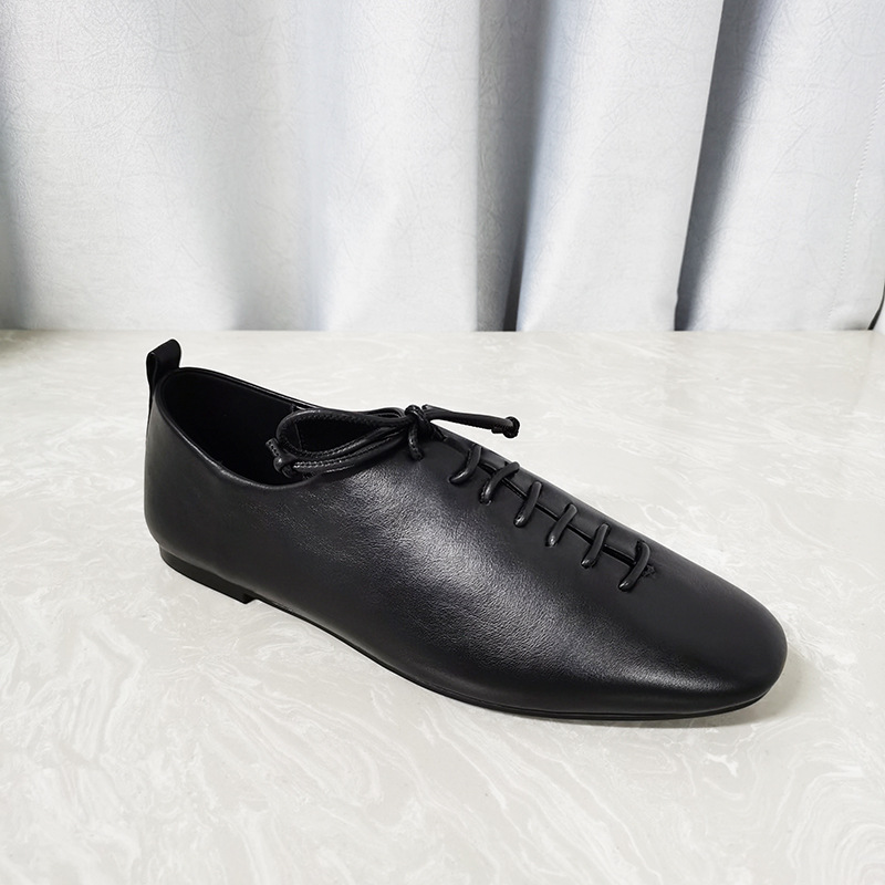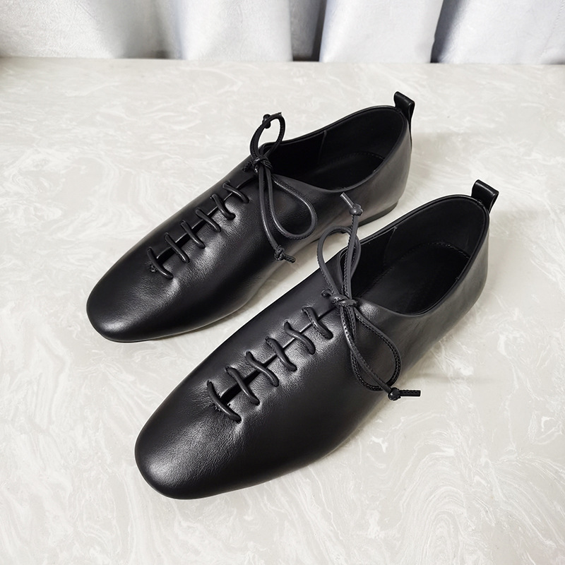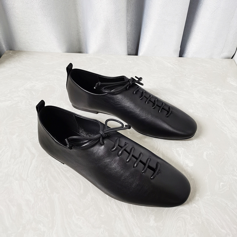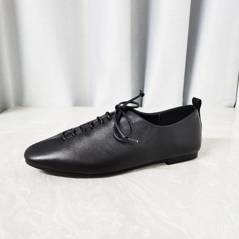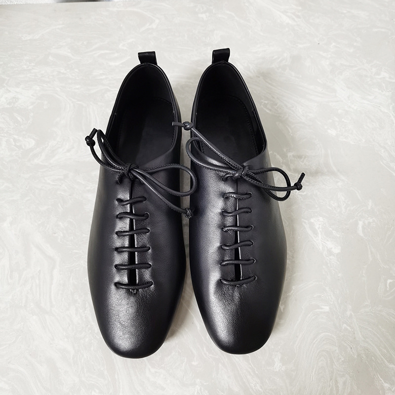 가을 새로운 여성 신발 캐주얼 레이스 업 정품 가죽 플랫 라운드 토 편안한 부드러운 가죽 싱글 레이어 신발 통근 및 작업