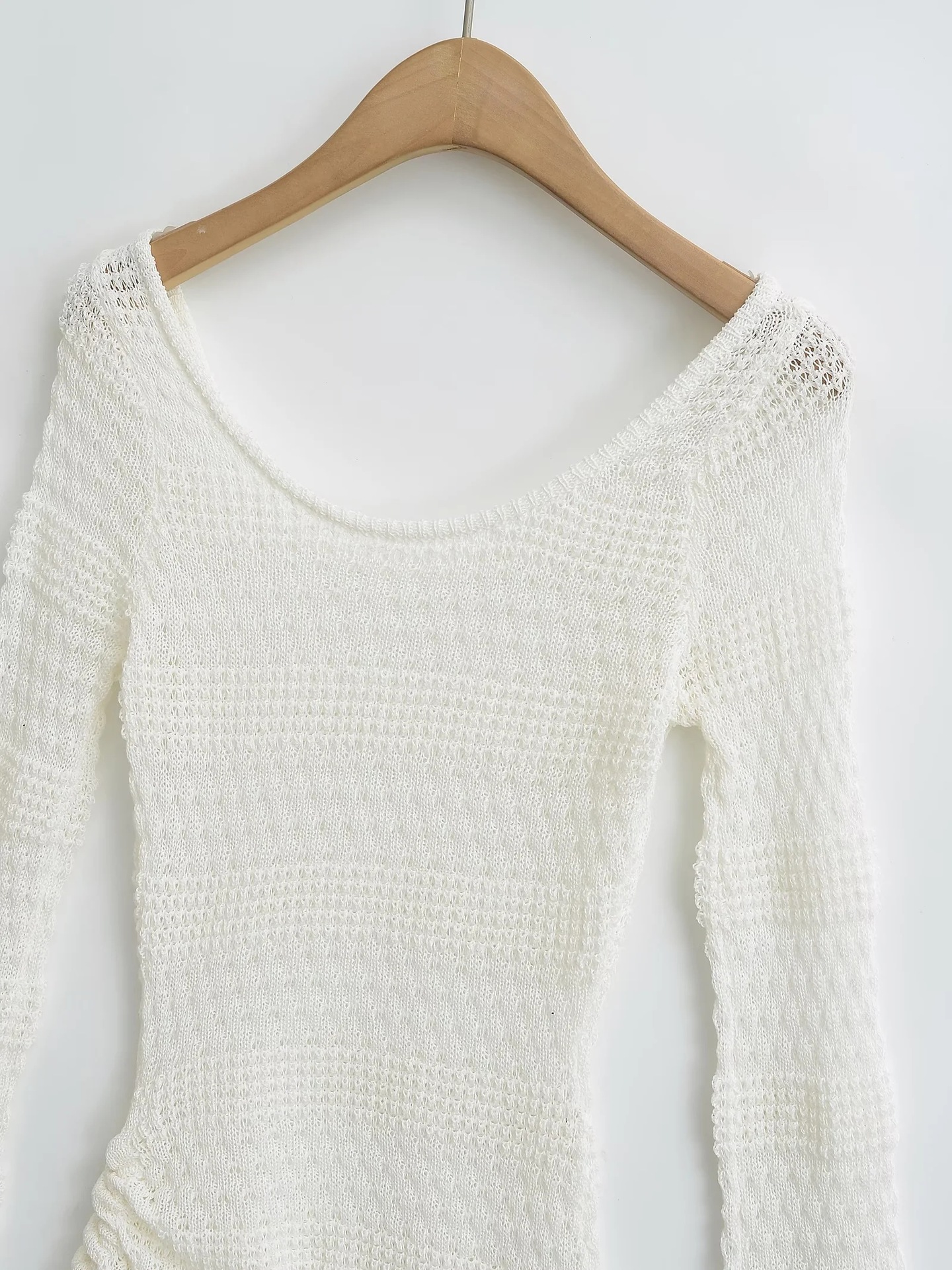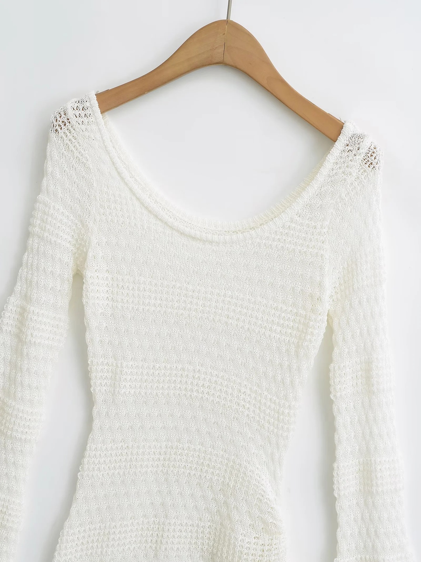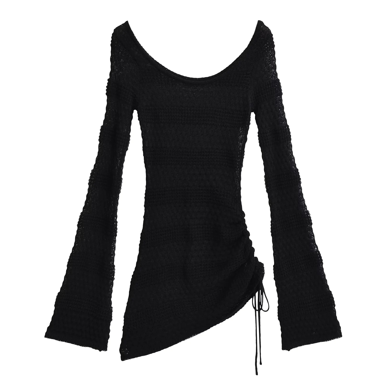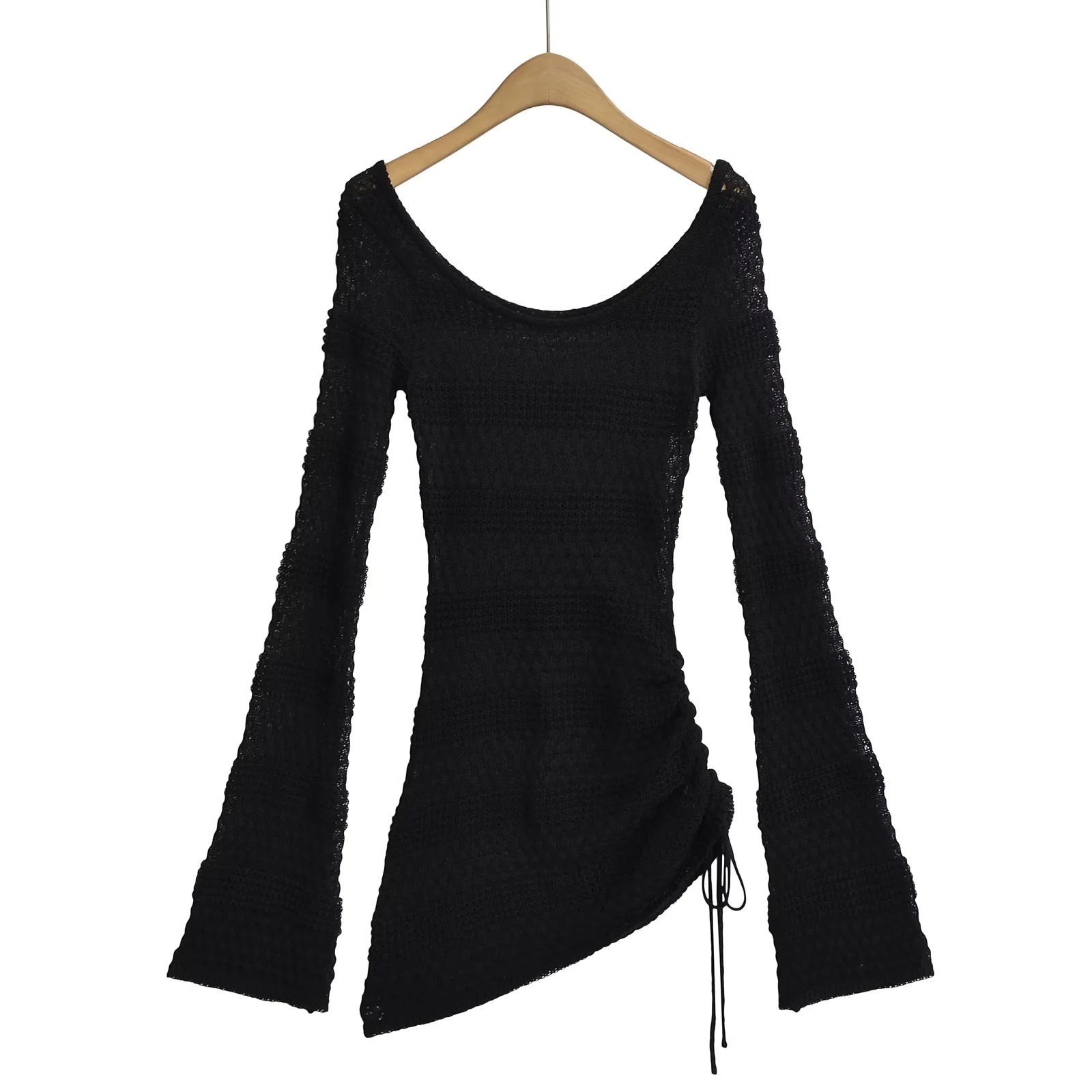 가을 2024 새로운 스파이스 걸스 게으른 스타일 둥근 목 할로우 뿔 슬리브 니트 스웨터 여성용 타이트 허리 니트 블라우스 탑