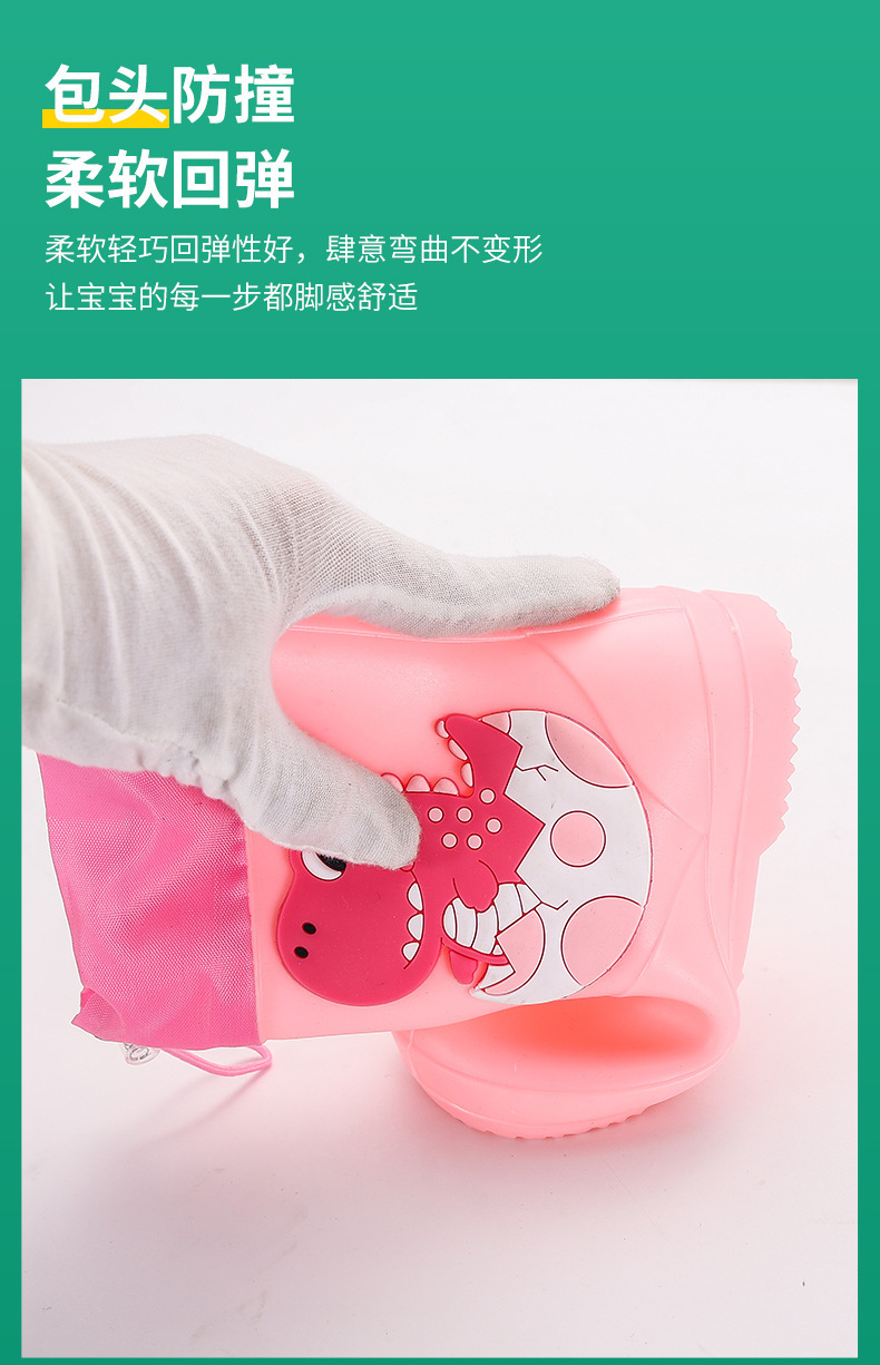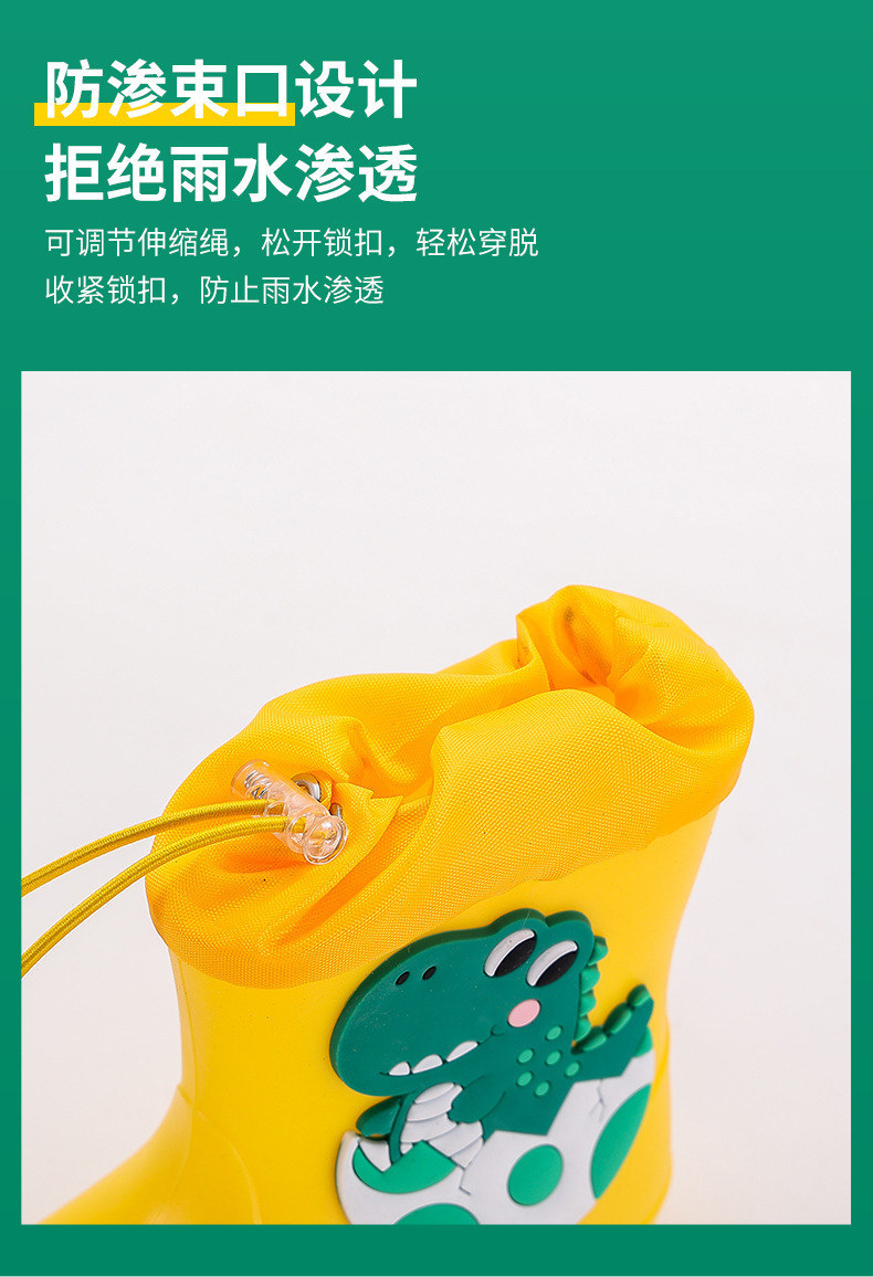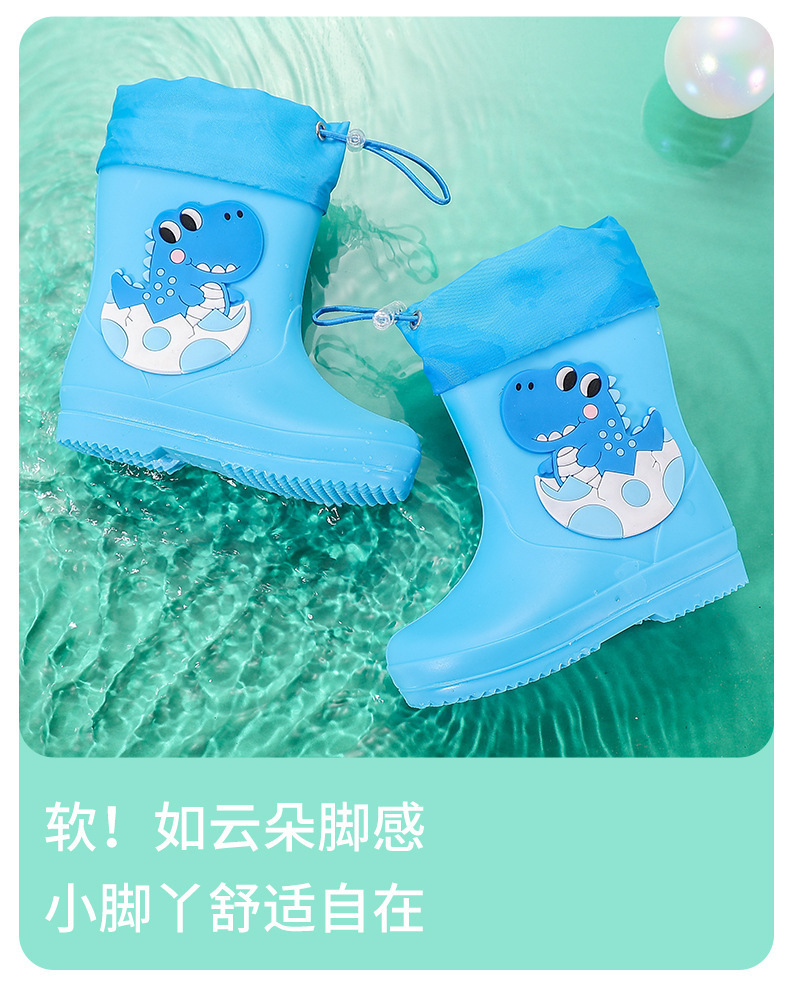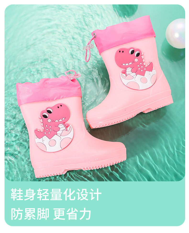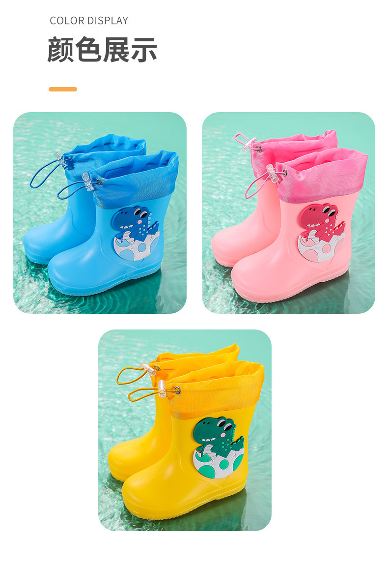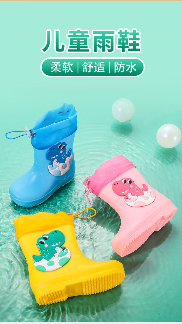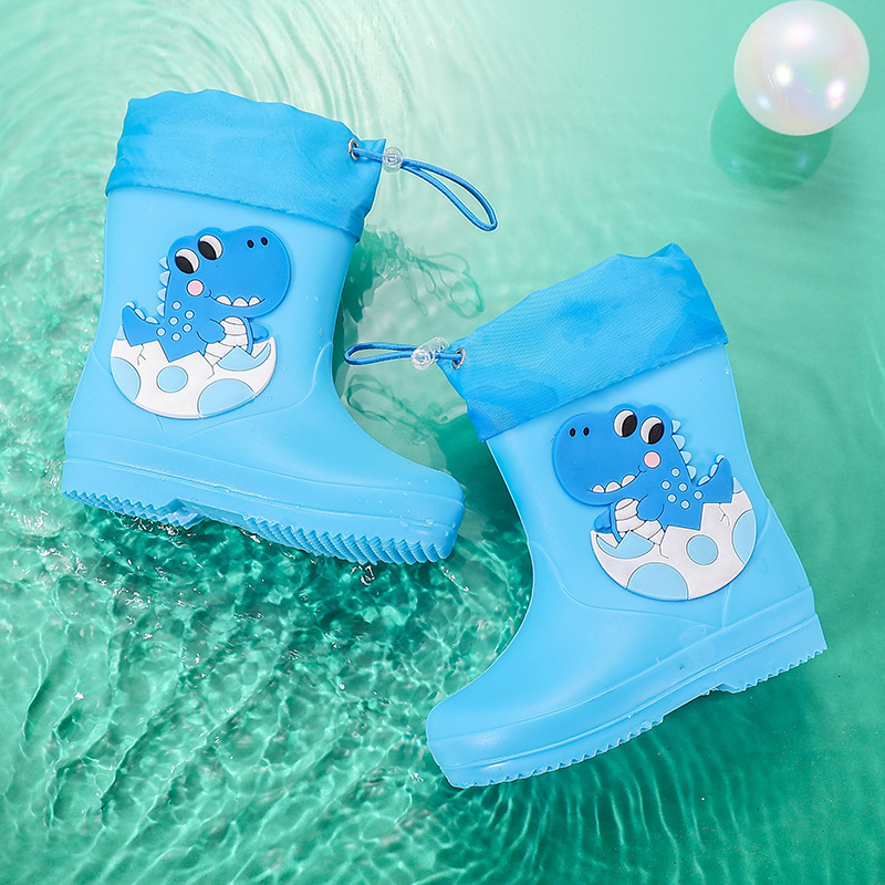 새로운 어린이 장화 탄성 버클 만화 공룡 방수 소년 소녀 아기 장화 어린이 겉옷 물 신발 부츠스토어 가기