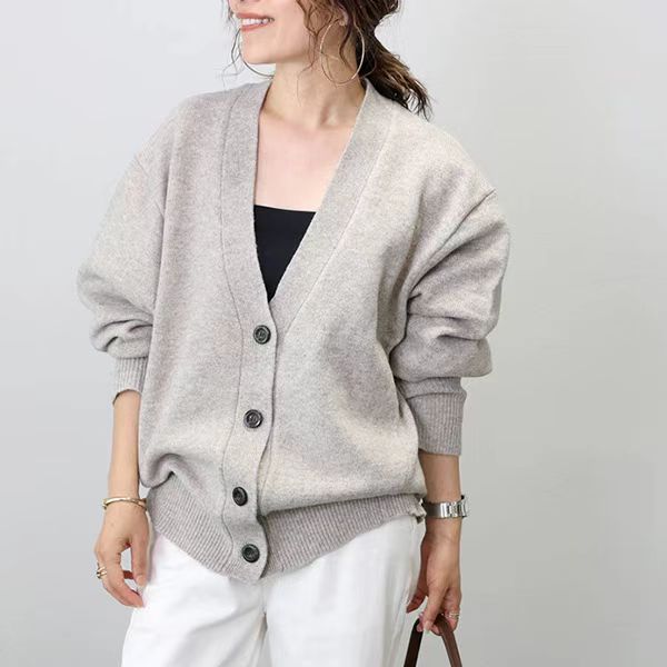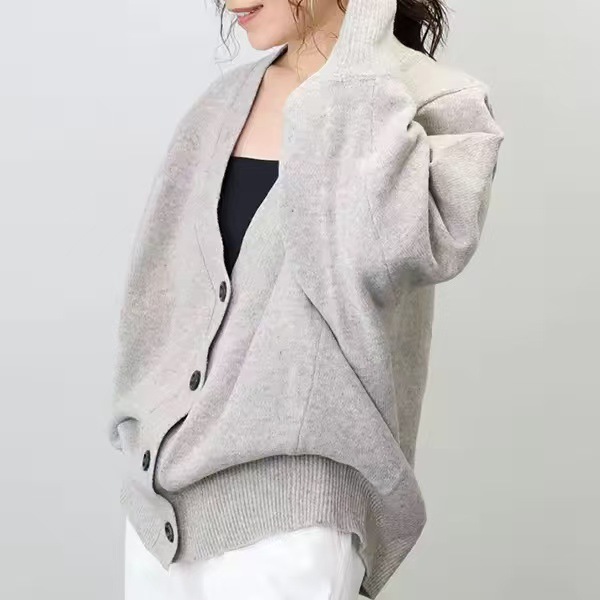 MOGE 슈퍼 잘 생긴 게으른 스타일 우아한 V 넥 니트 스웨터 카디건 여성의 2024 가을 새로운 루즈 탑
