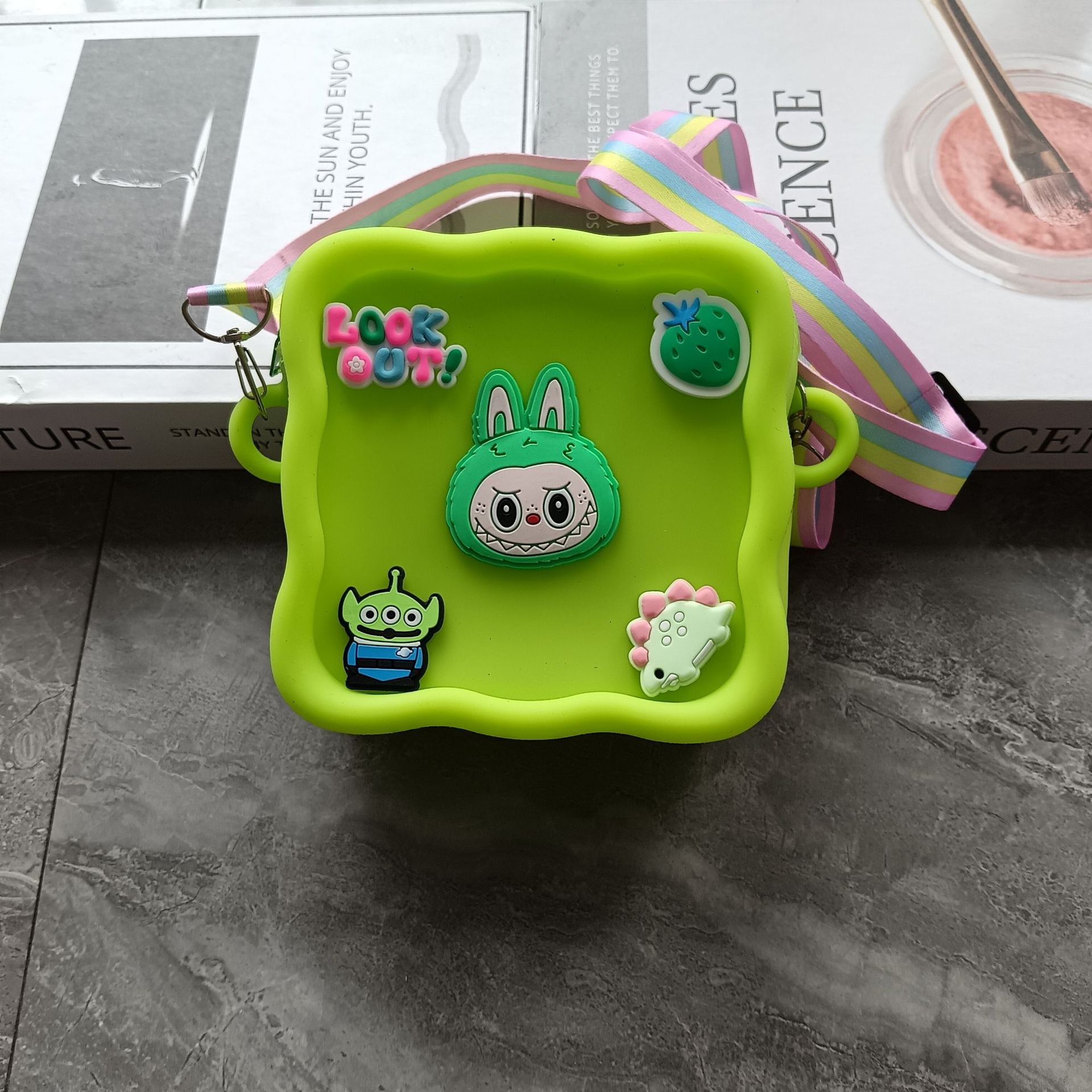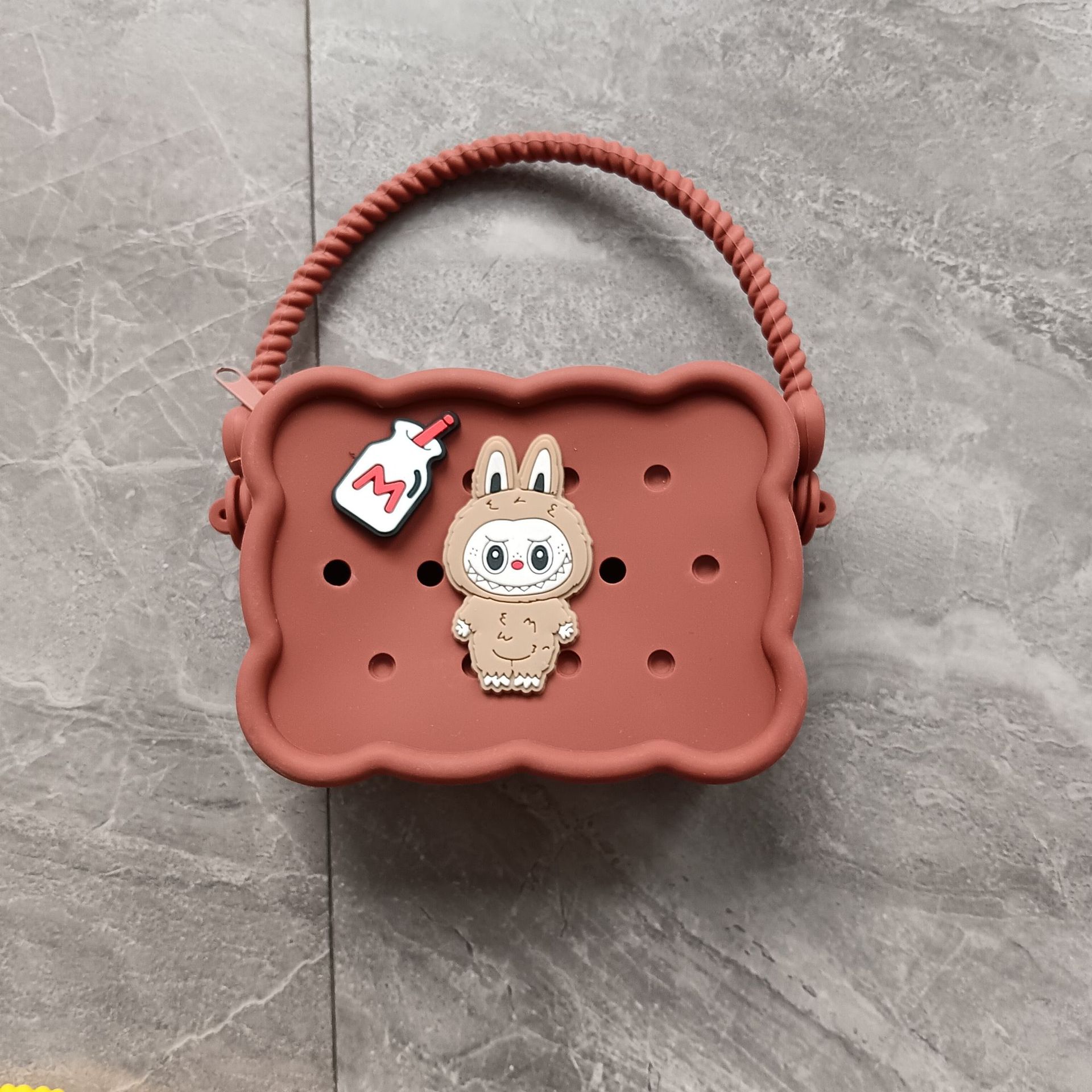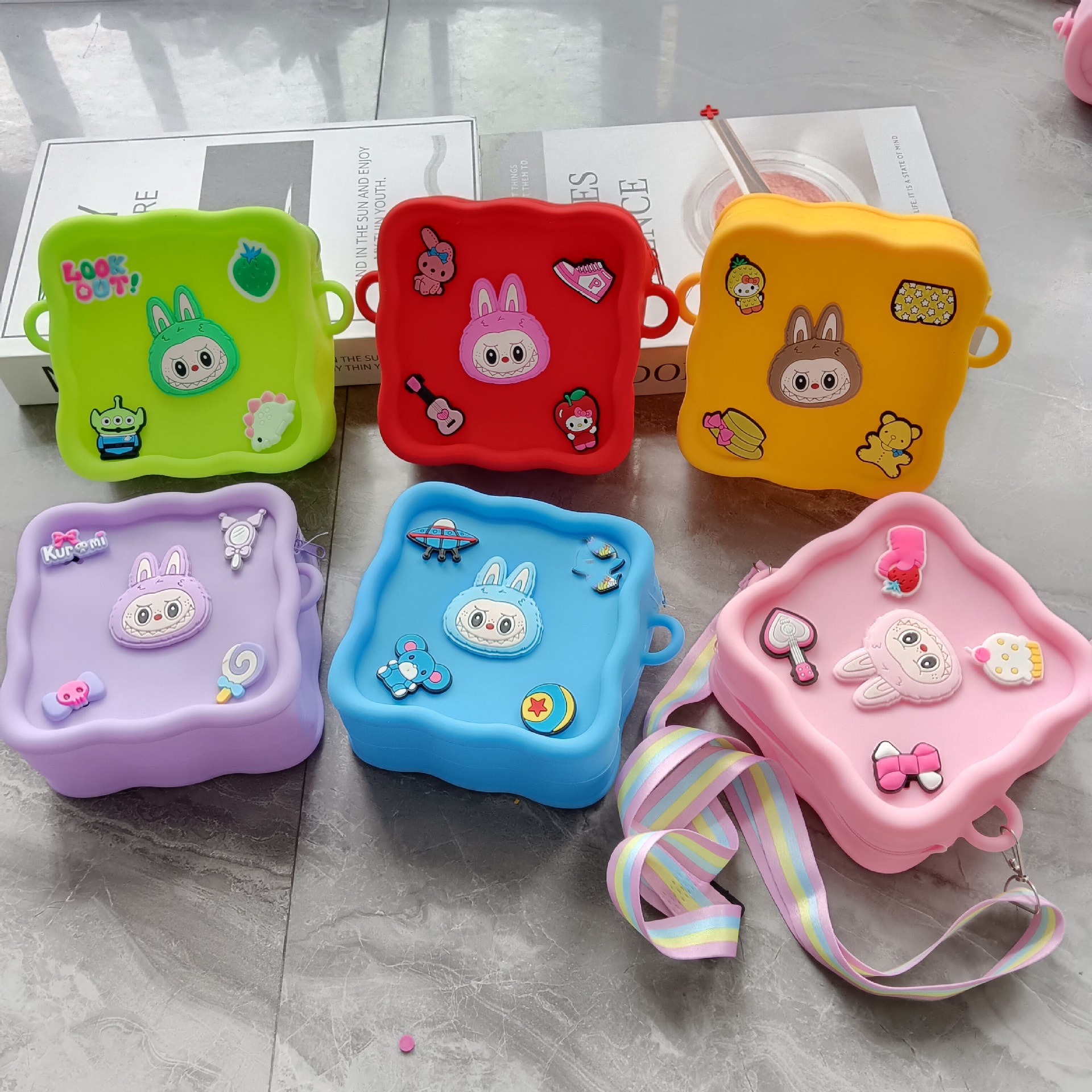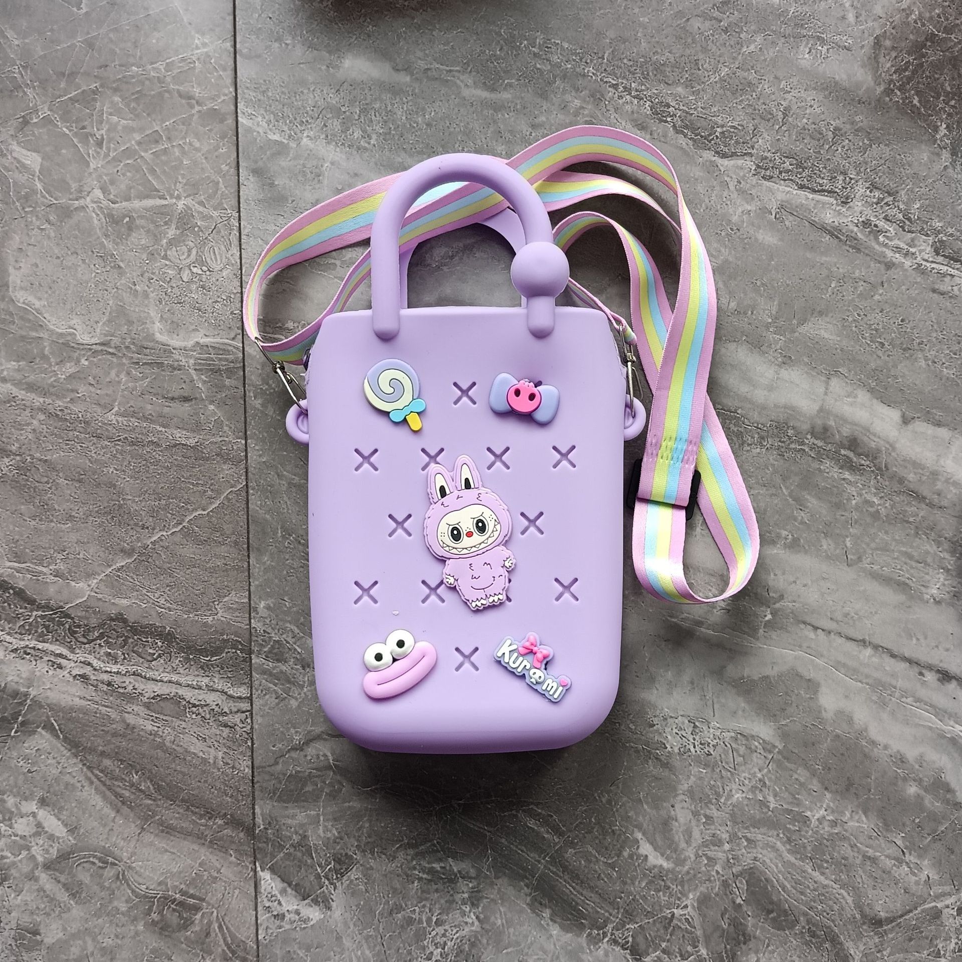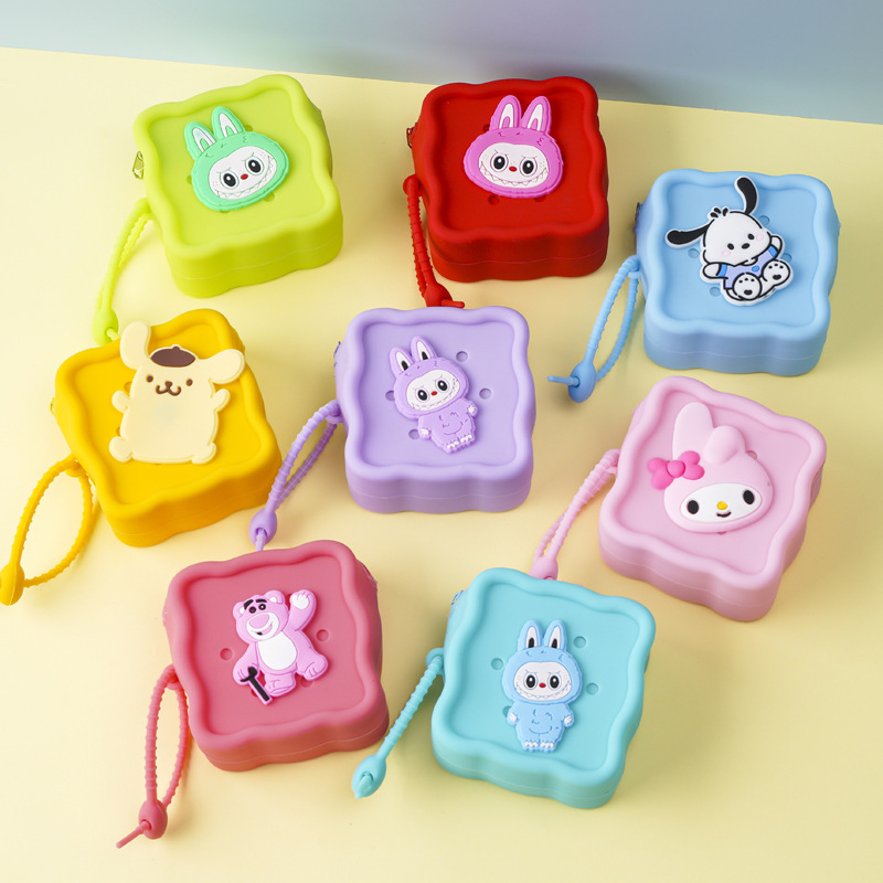 스퀘어 동굴 실리콘 동전 지갑 어린이 DIY 크로스 바디 휴대용 키 백 귀여운 헝겊 실리콘 가방