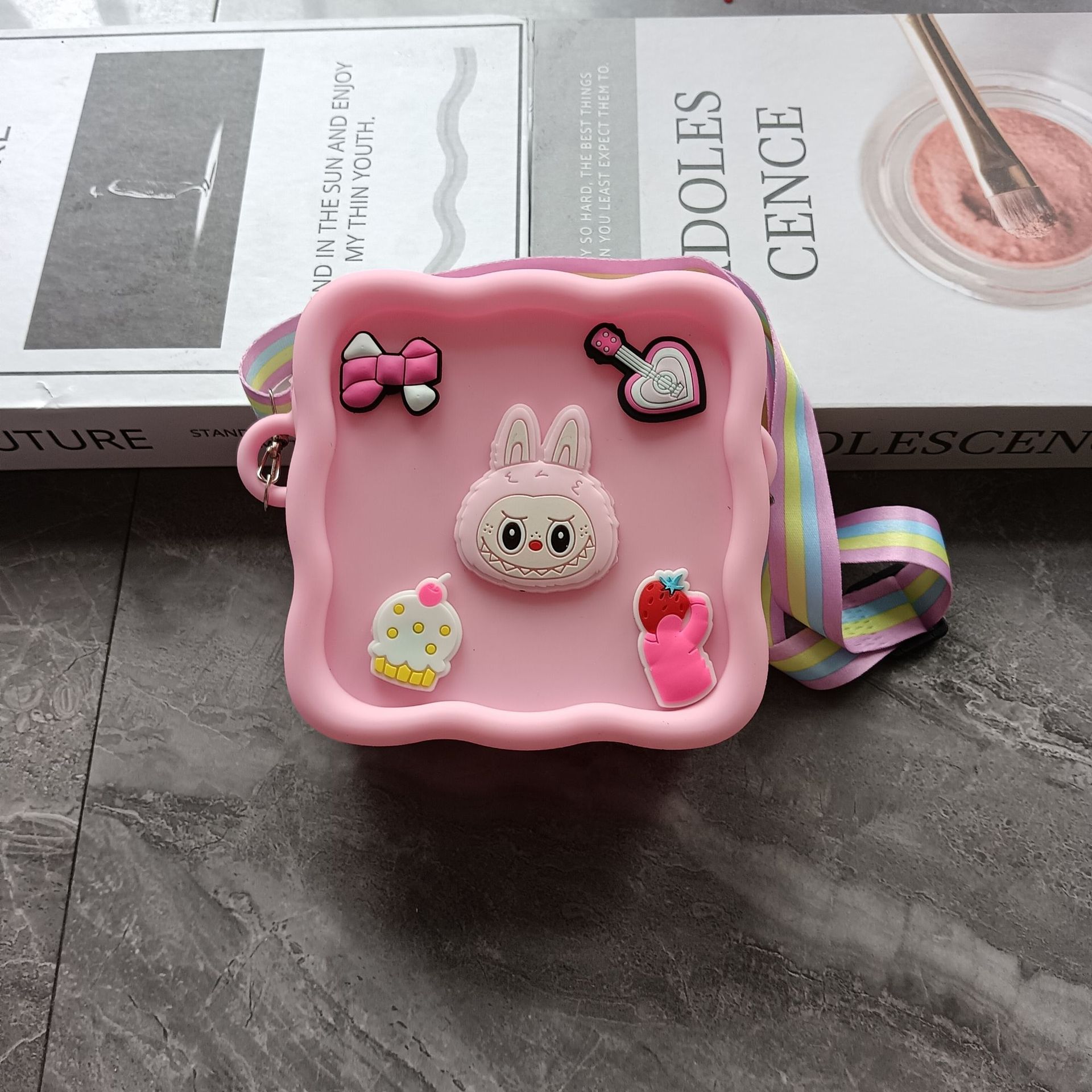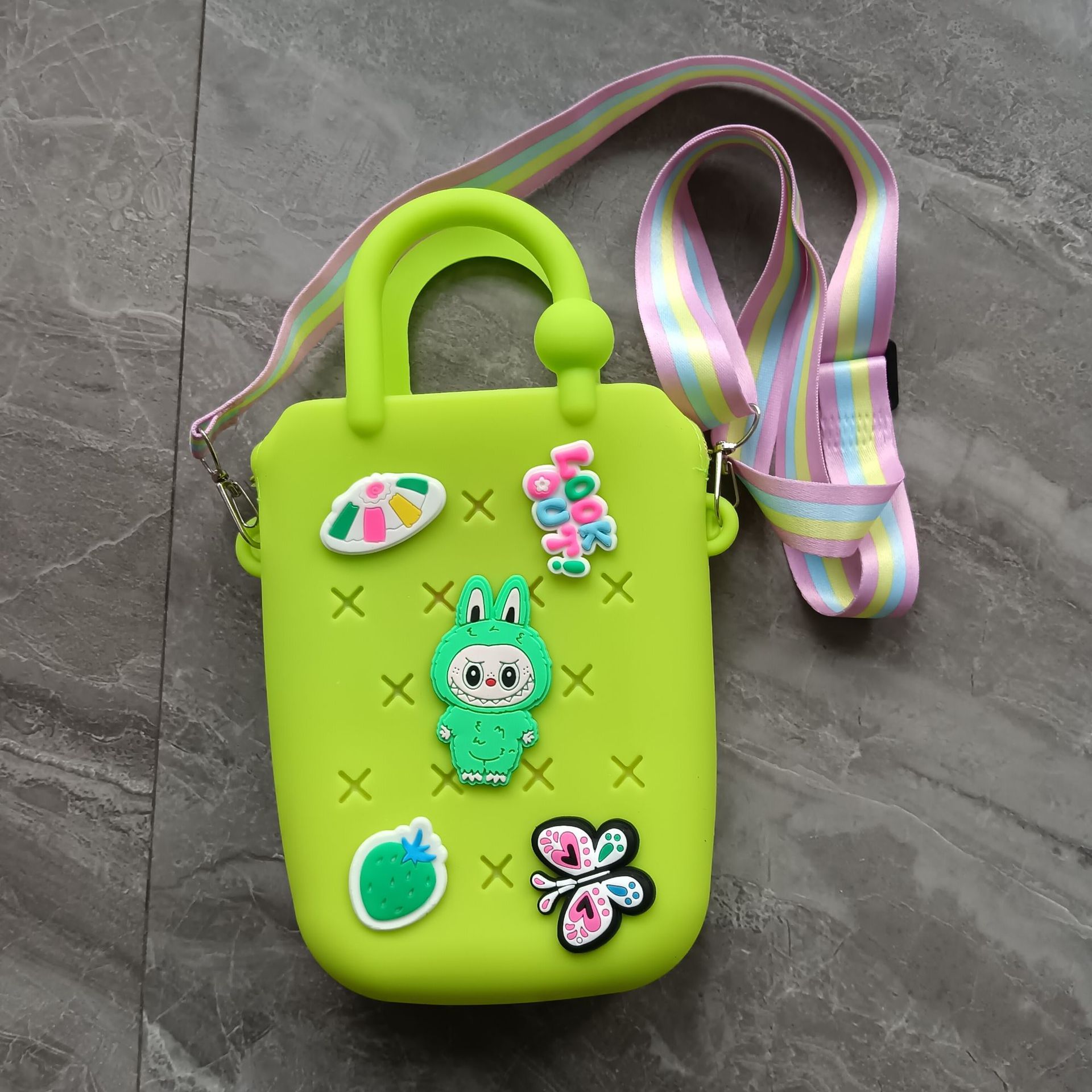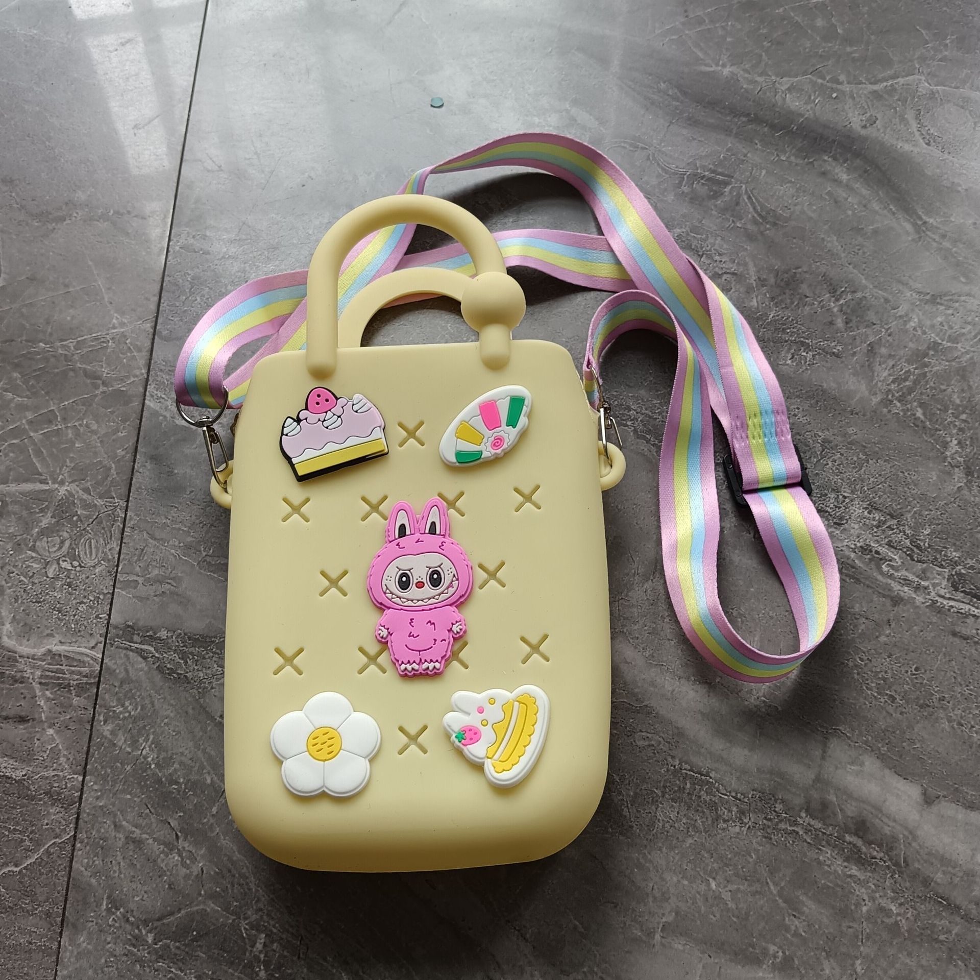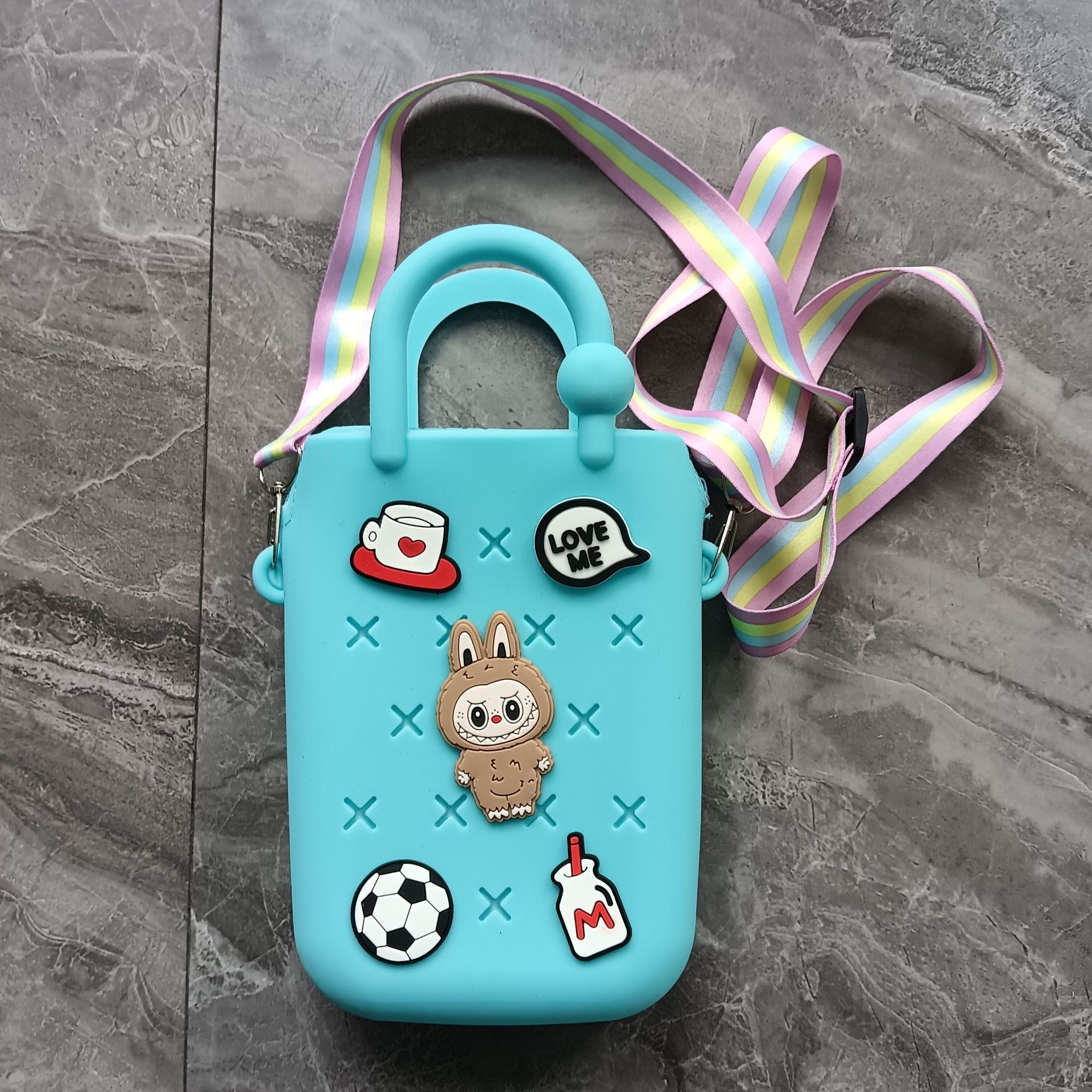 스퀘어 동굴 실리콘 동전 지갑 어린이 DIY 크로스 바디 휴대용 키 백 귀여운 헝겊 실리콘 가방
