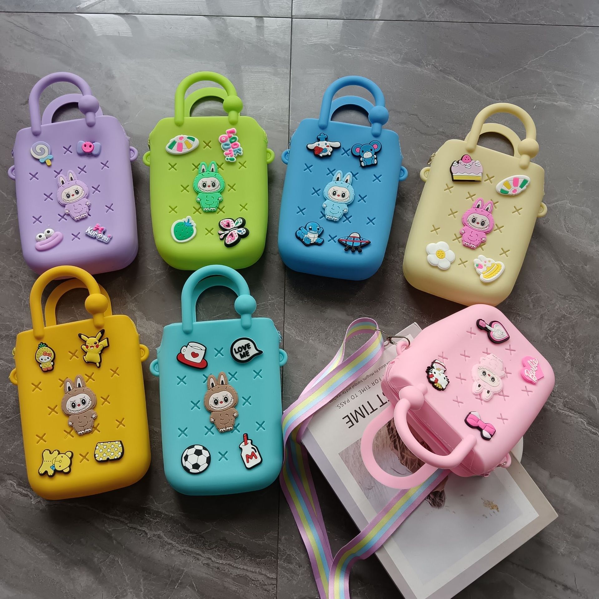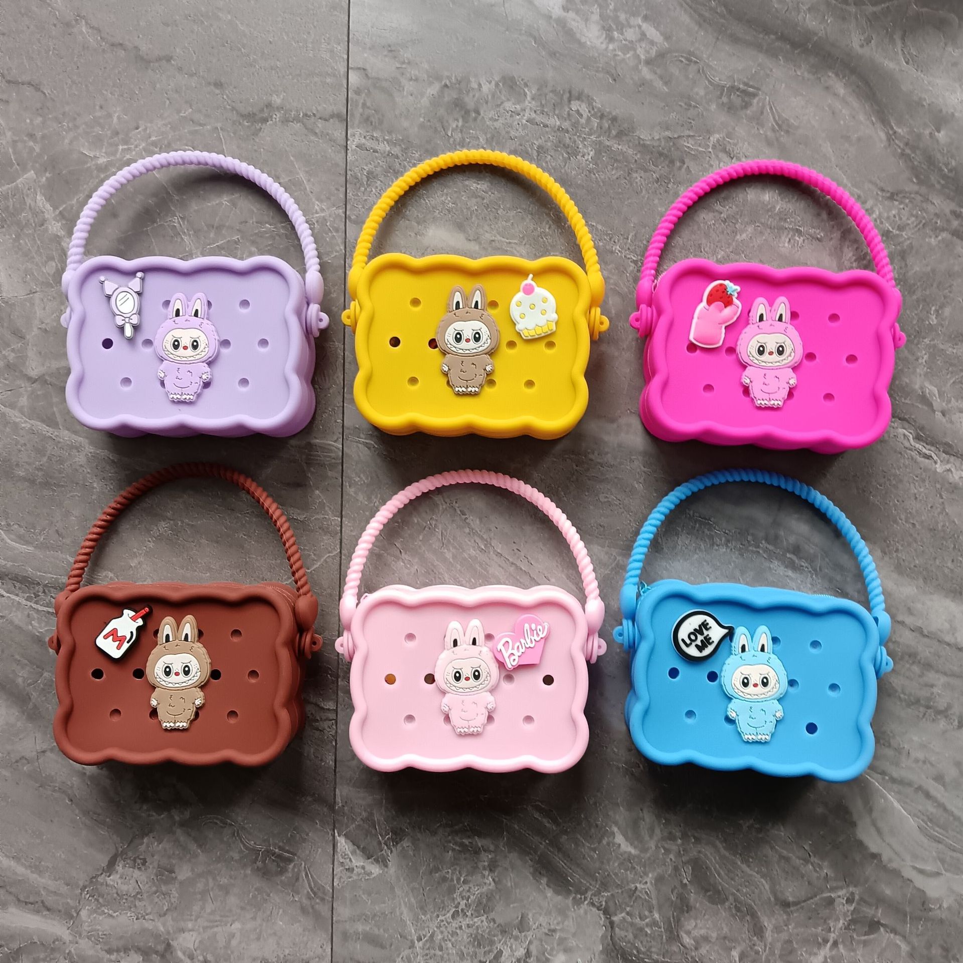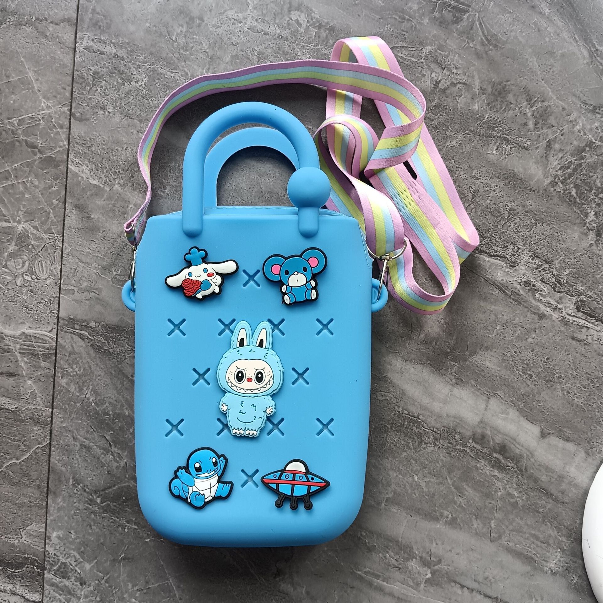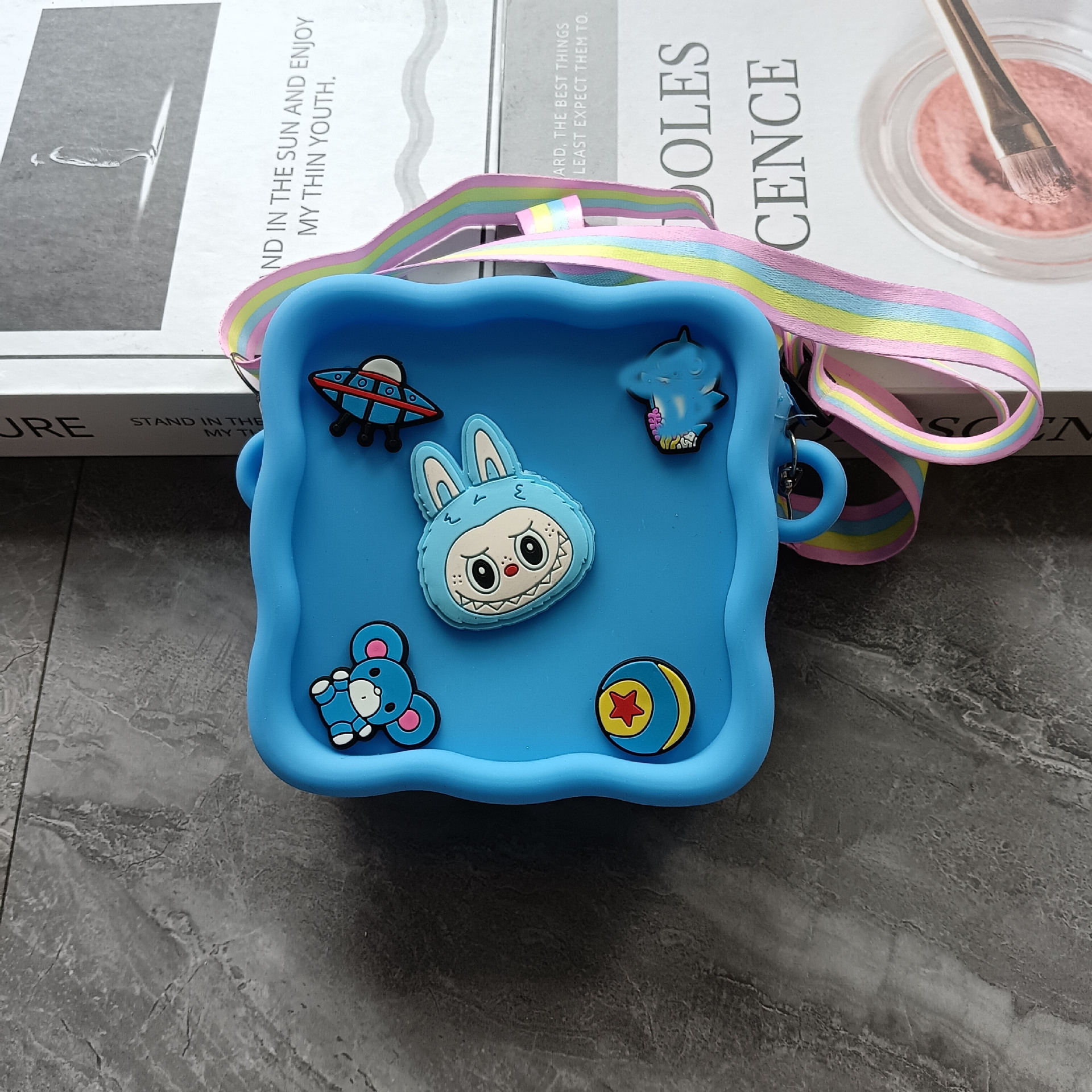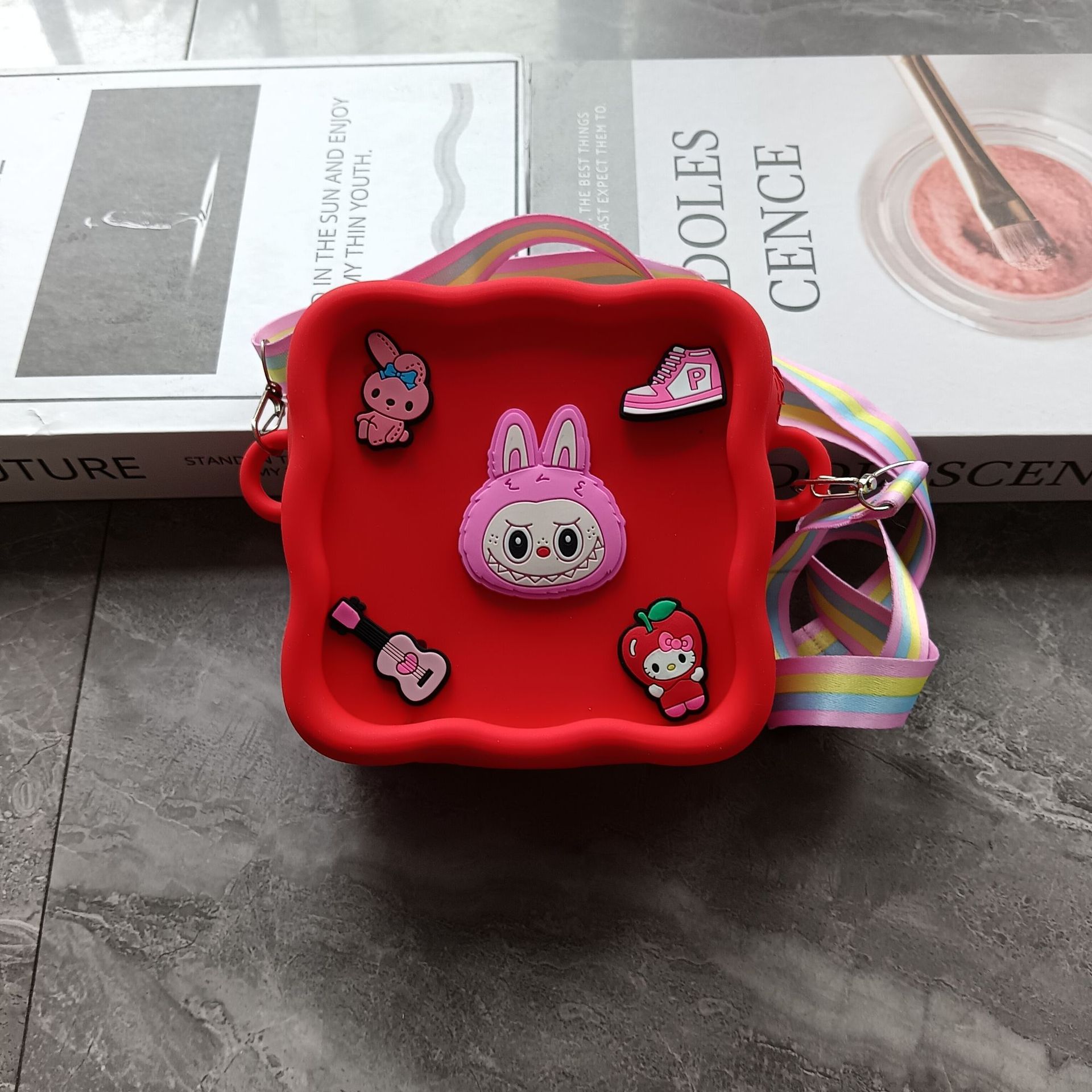 스퀘어 동굴 실리콘 동전 지갑 어린이 DIY 크로스 바디 휴대용 키 백 귀여운 헝겊 실리콘 가방
