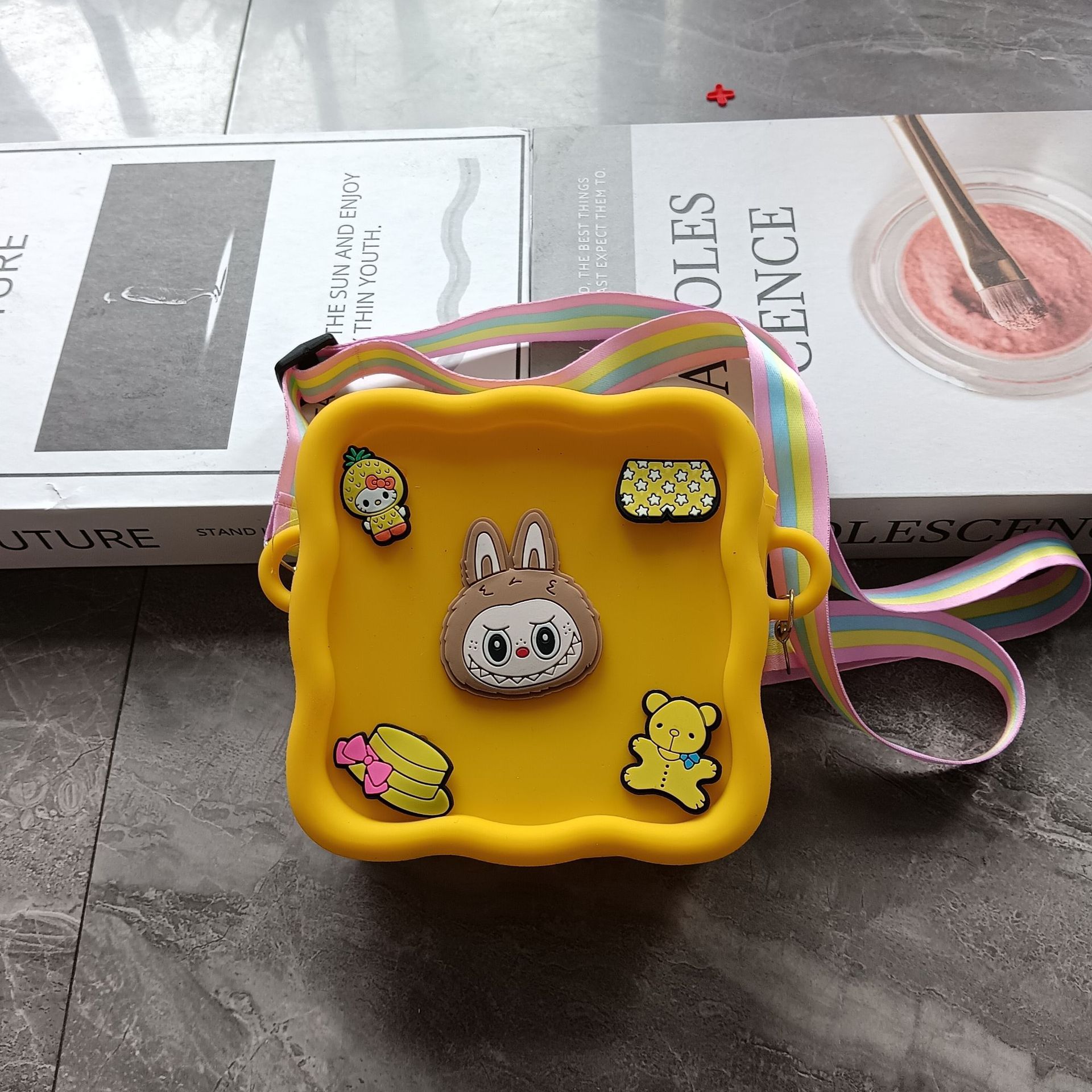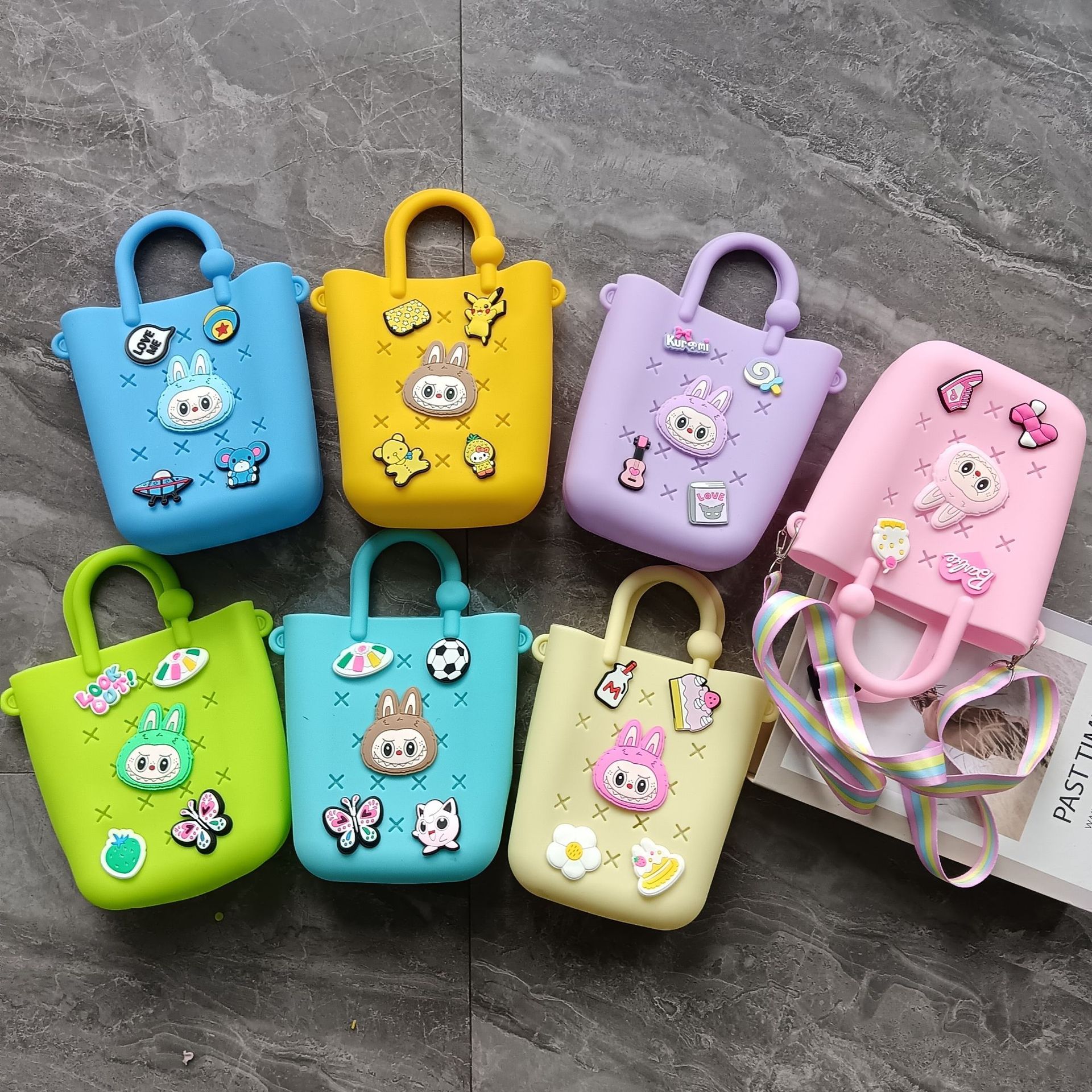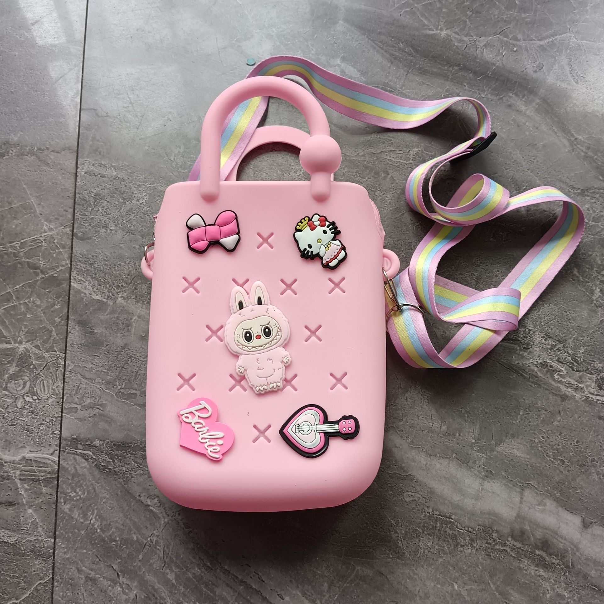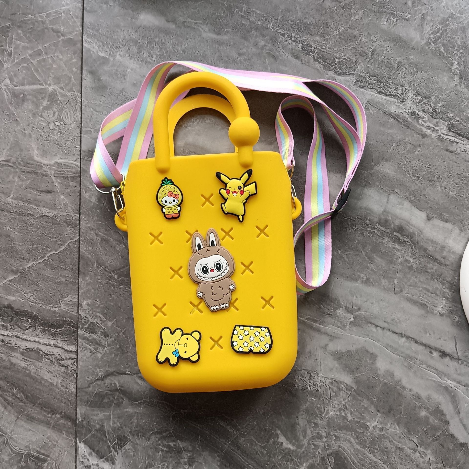 스퀘어 동굴 실리콘 동전 지갑 어린이 DIY 크로스 바디 휴대용 키 백 귀여운 헝겊 실리콘 가방