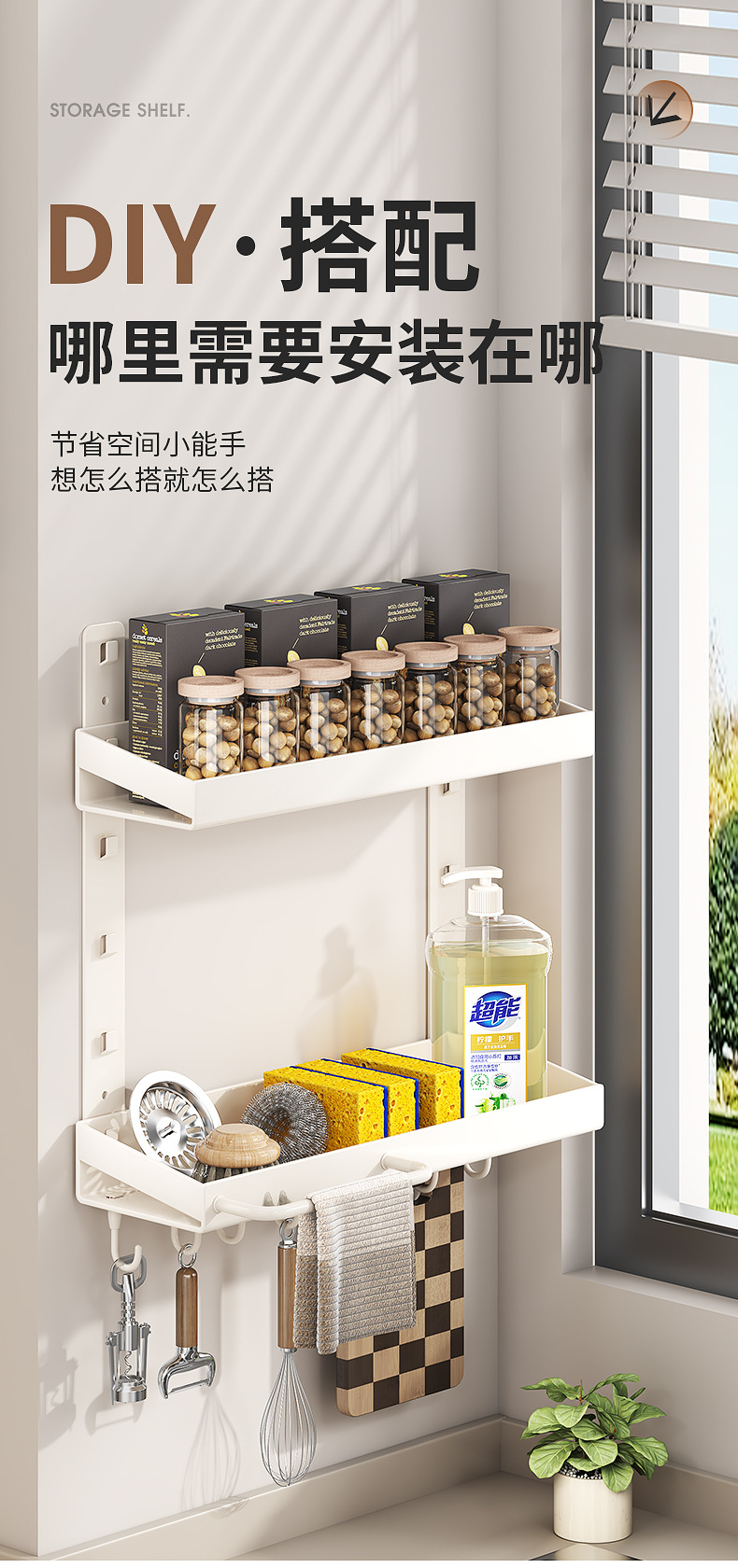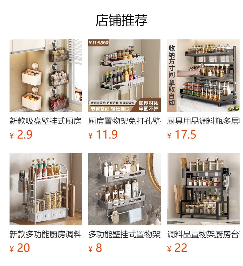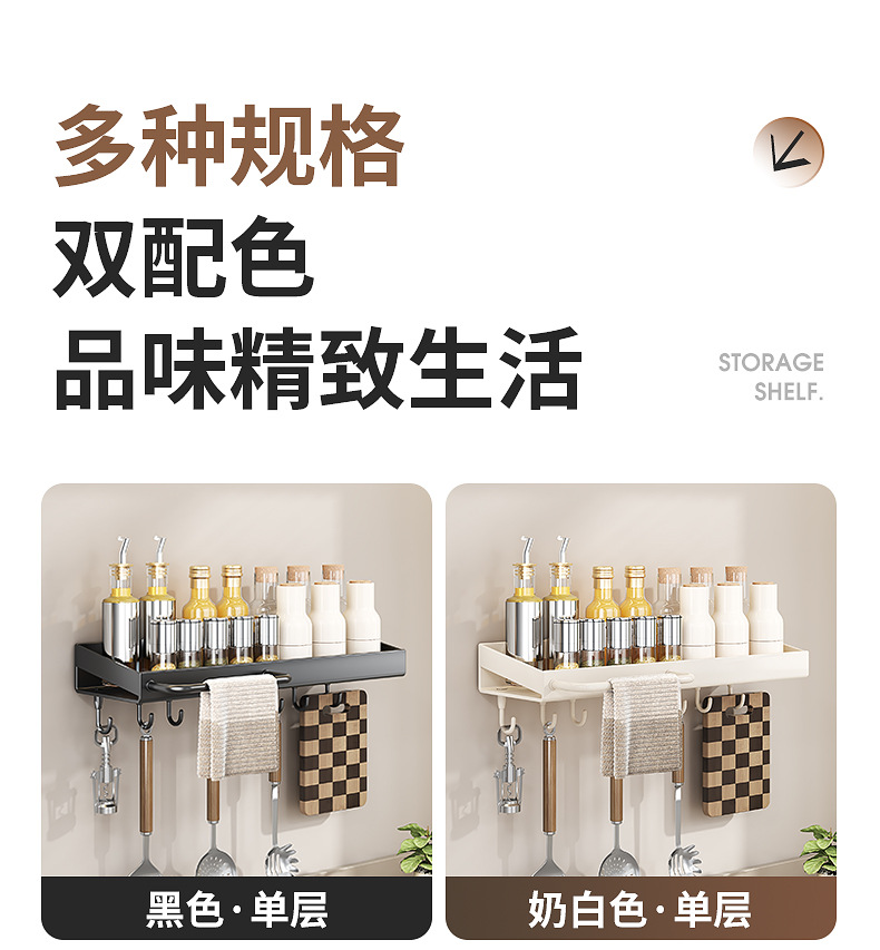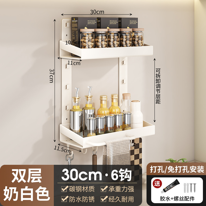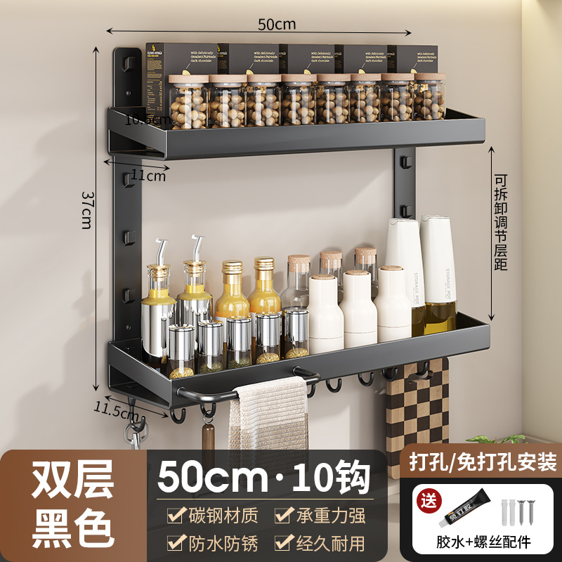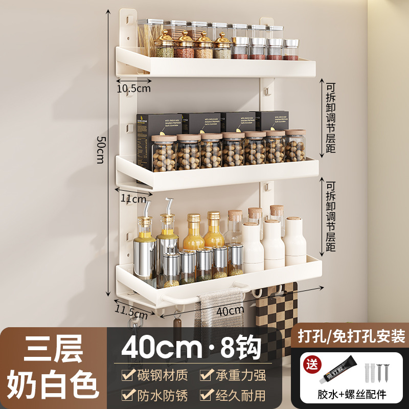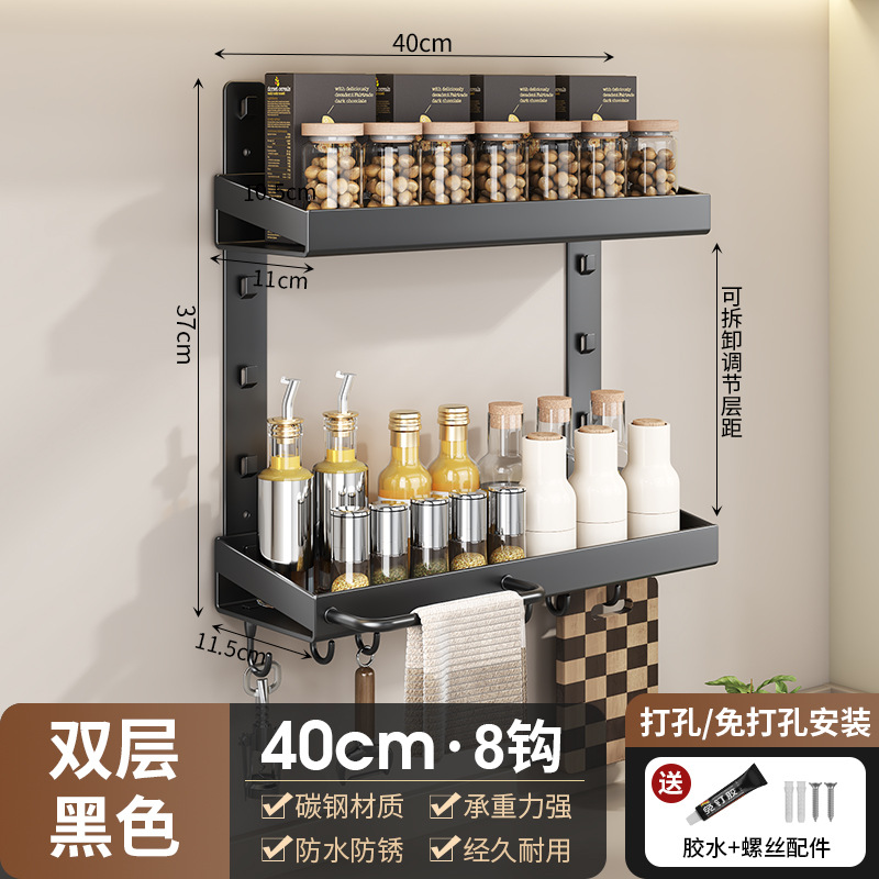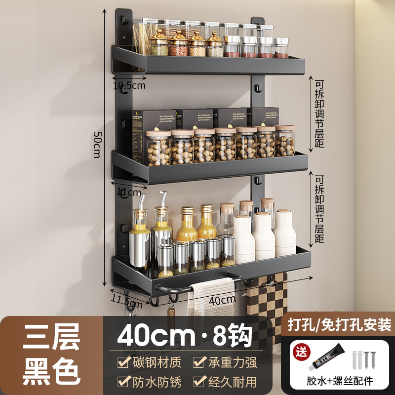 새로운 천공되지 않은 주방 벽 걸이 랙 다층 다기능 조미료 랙 가정용 용품 스토리지 랙 도매스토어 가기