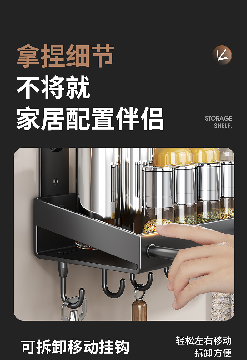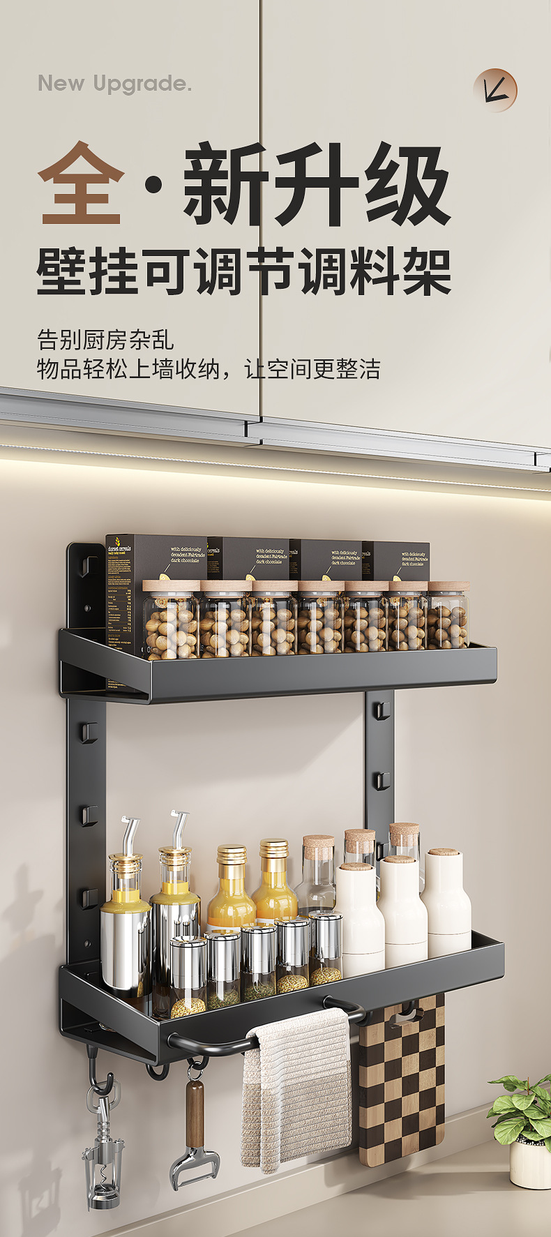 새로운 천공되지 않은 주방 벽 걸이 랙 다층 다기능 조미료 랙 가정용 용품 스토리지 랙 도매