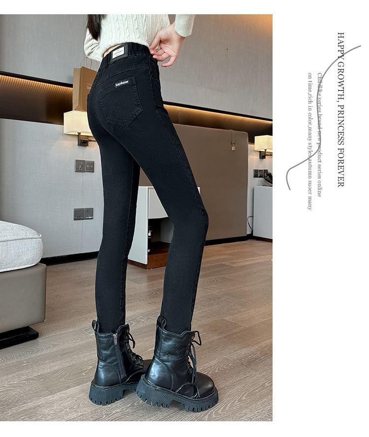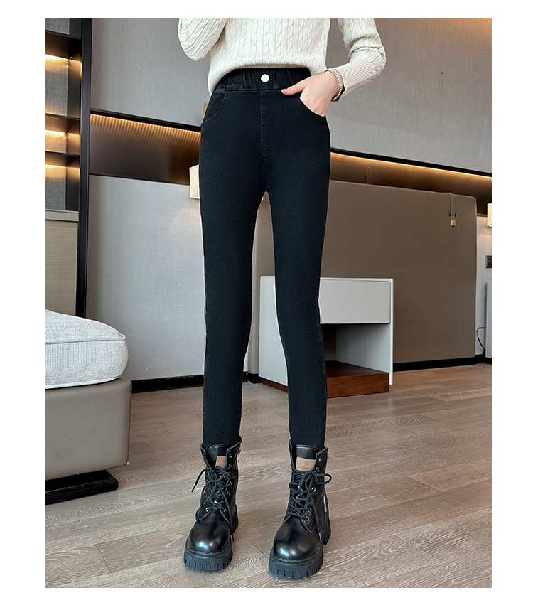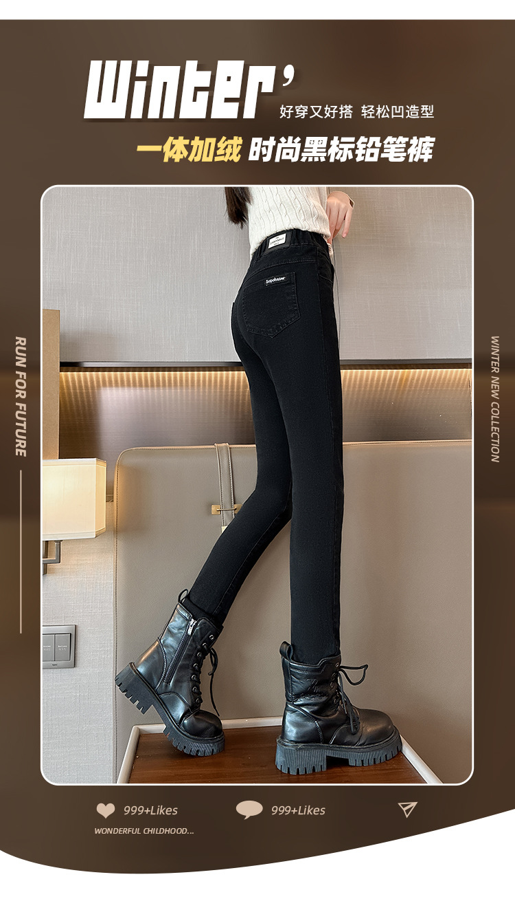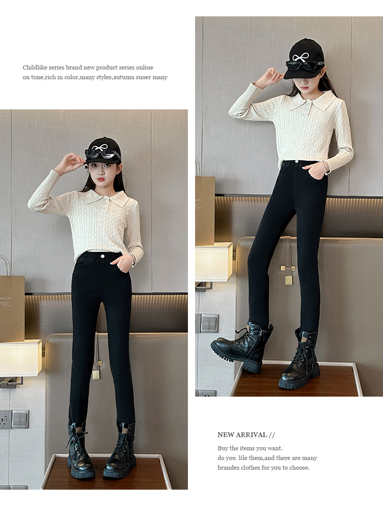 소녀의 가을과 겨울 슬림 핏 연필 바지 2024 새로운 겨울 중대형 어린이 서양식 양털 추가 바지 어린이 다리 청바지스토어 가기