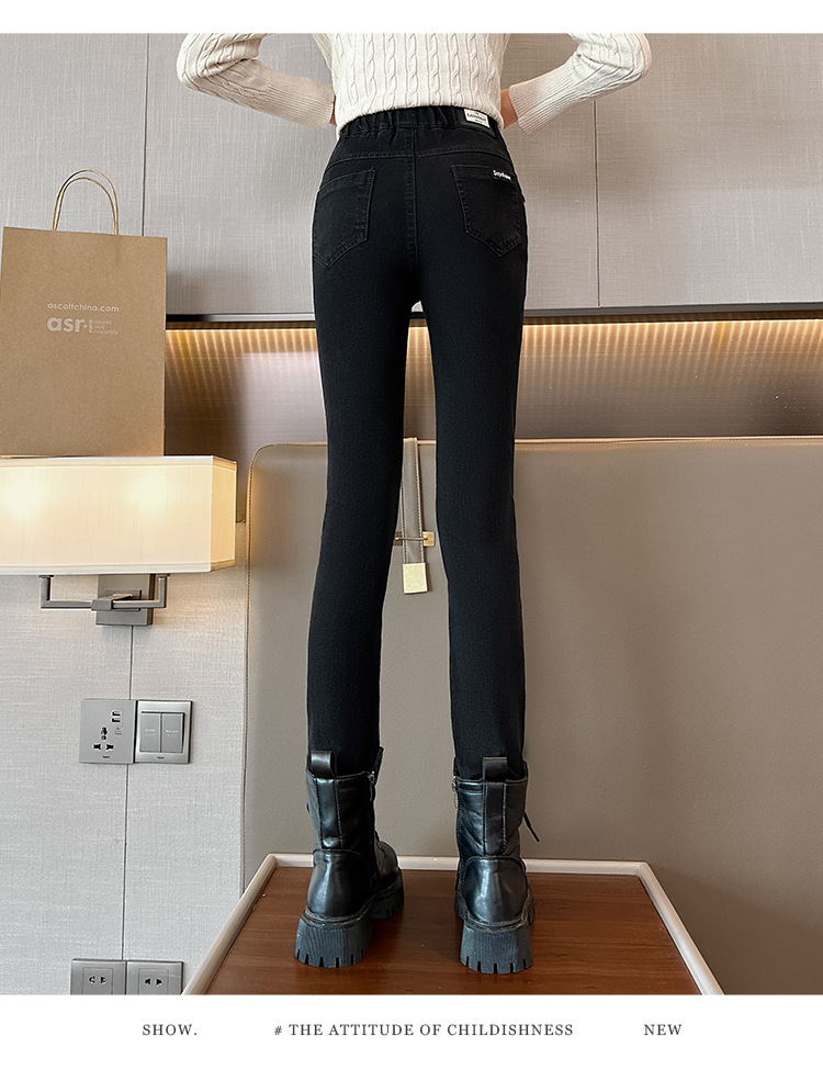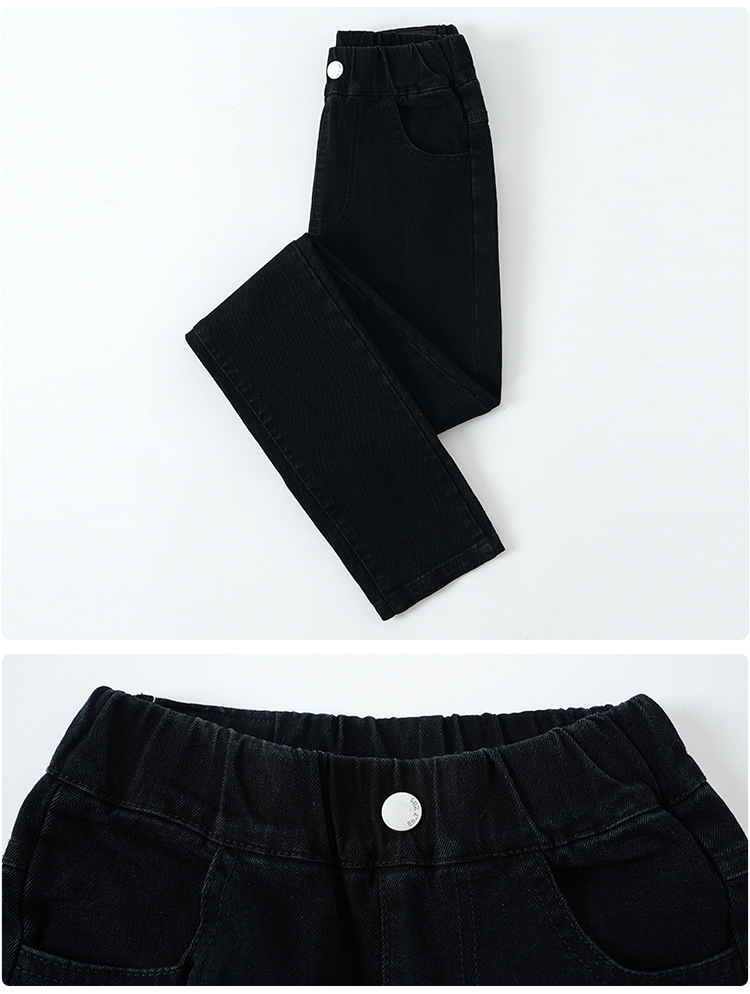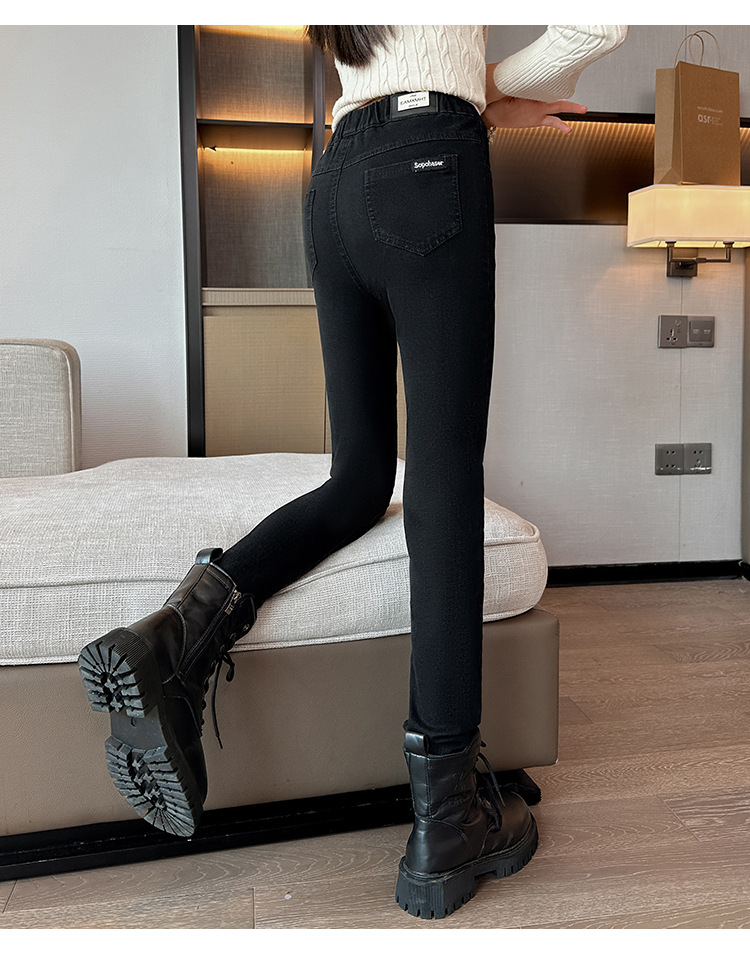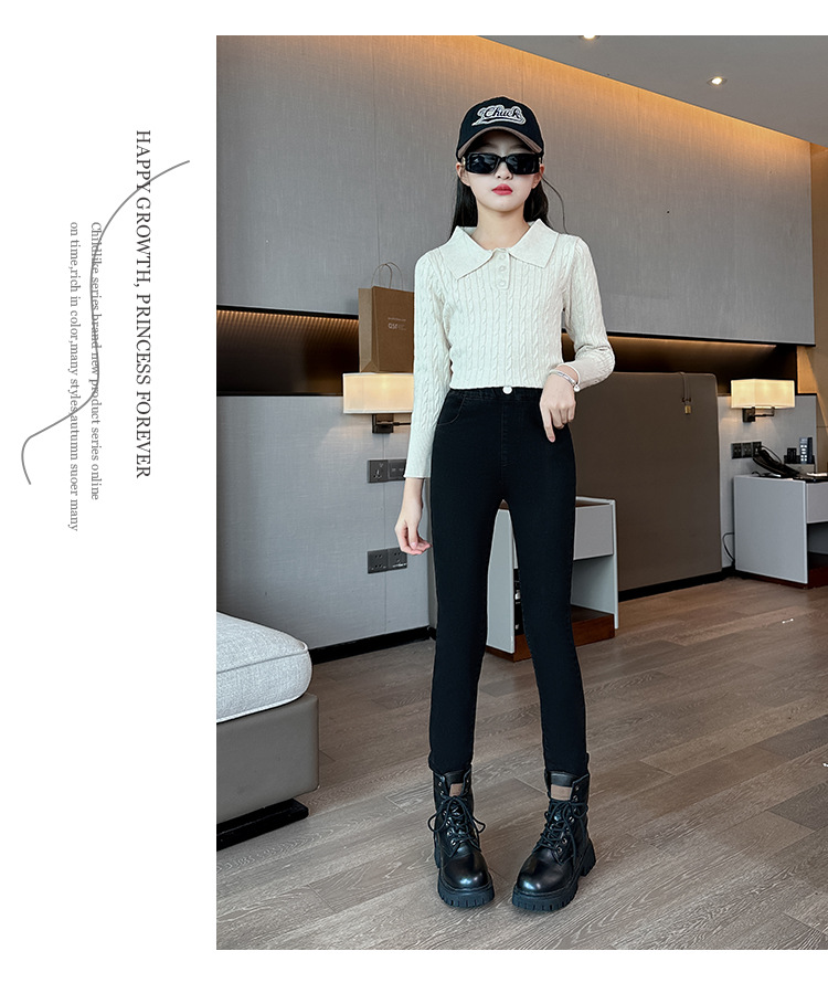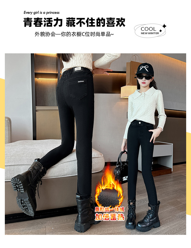 소녀의 가을과 겨울 슬림 핏 연필 바지 2024 새로운 겨울 중대형 어린이 서양식 양털 추가 바지 어린이 다리 청바지