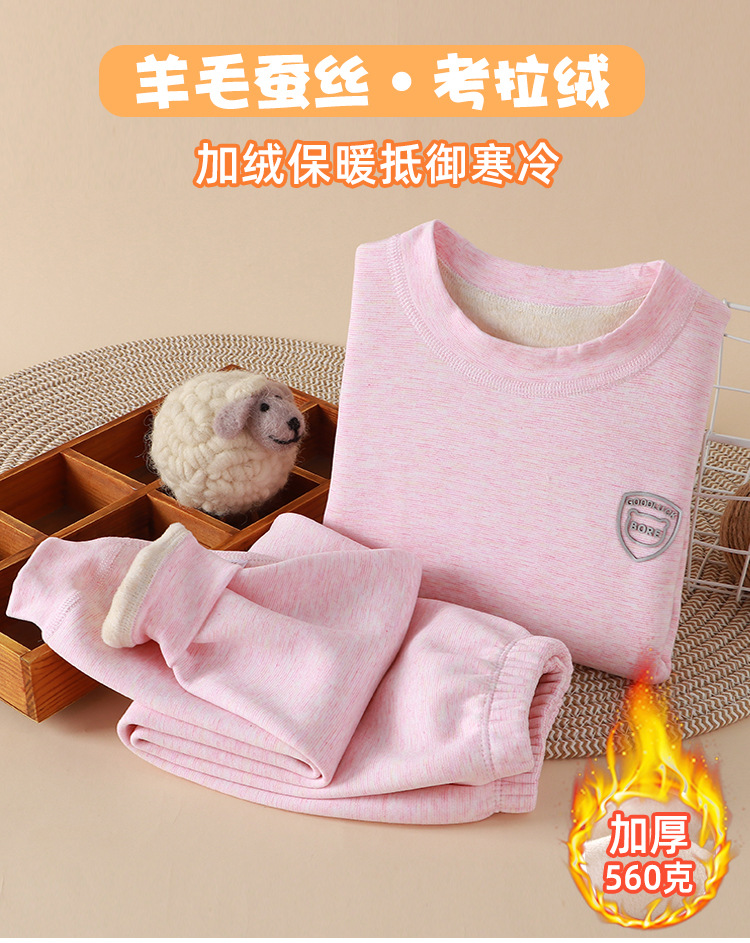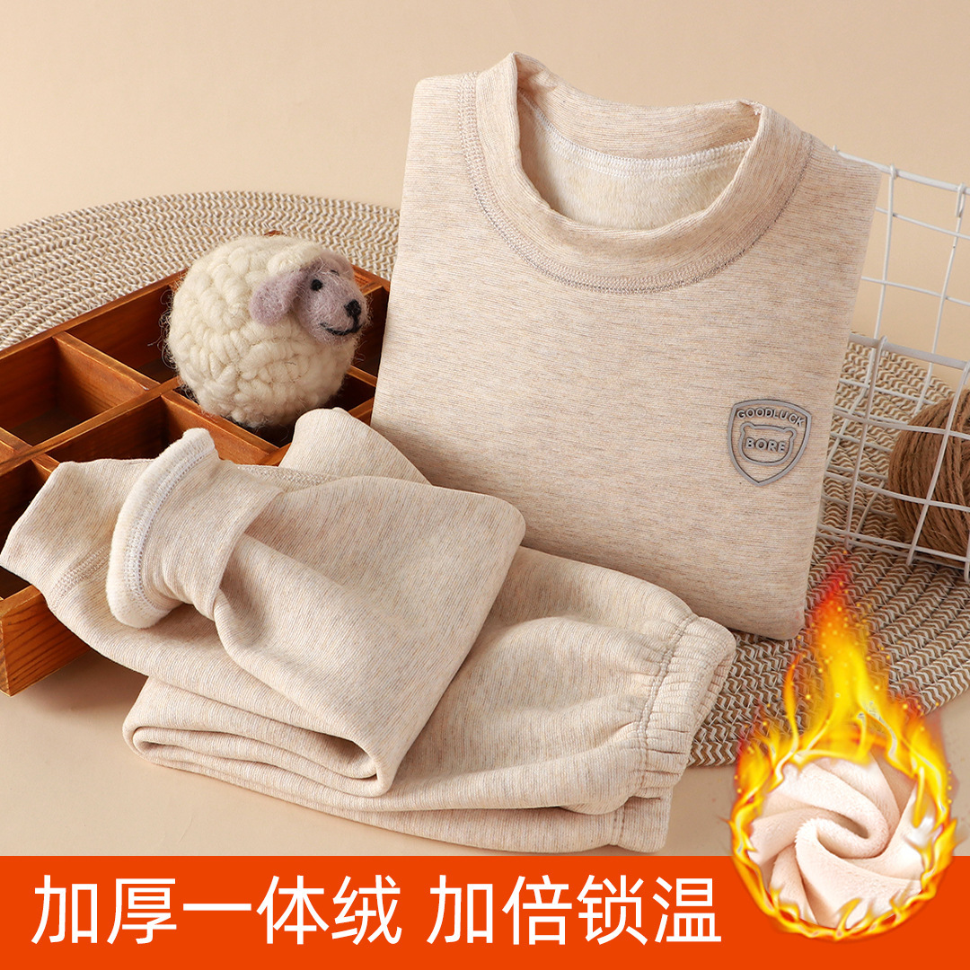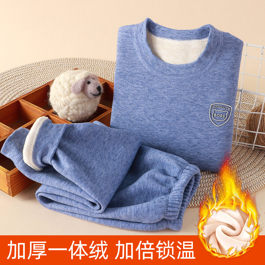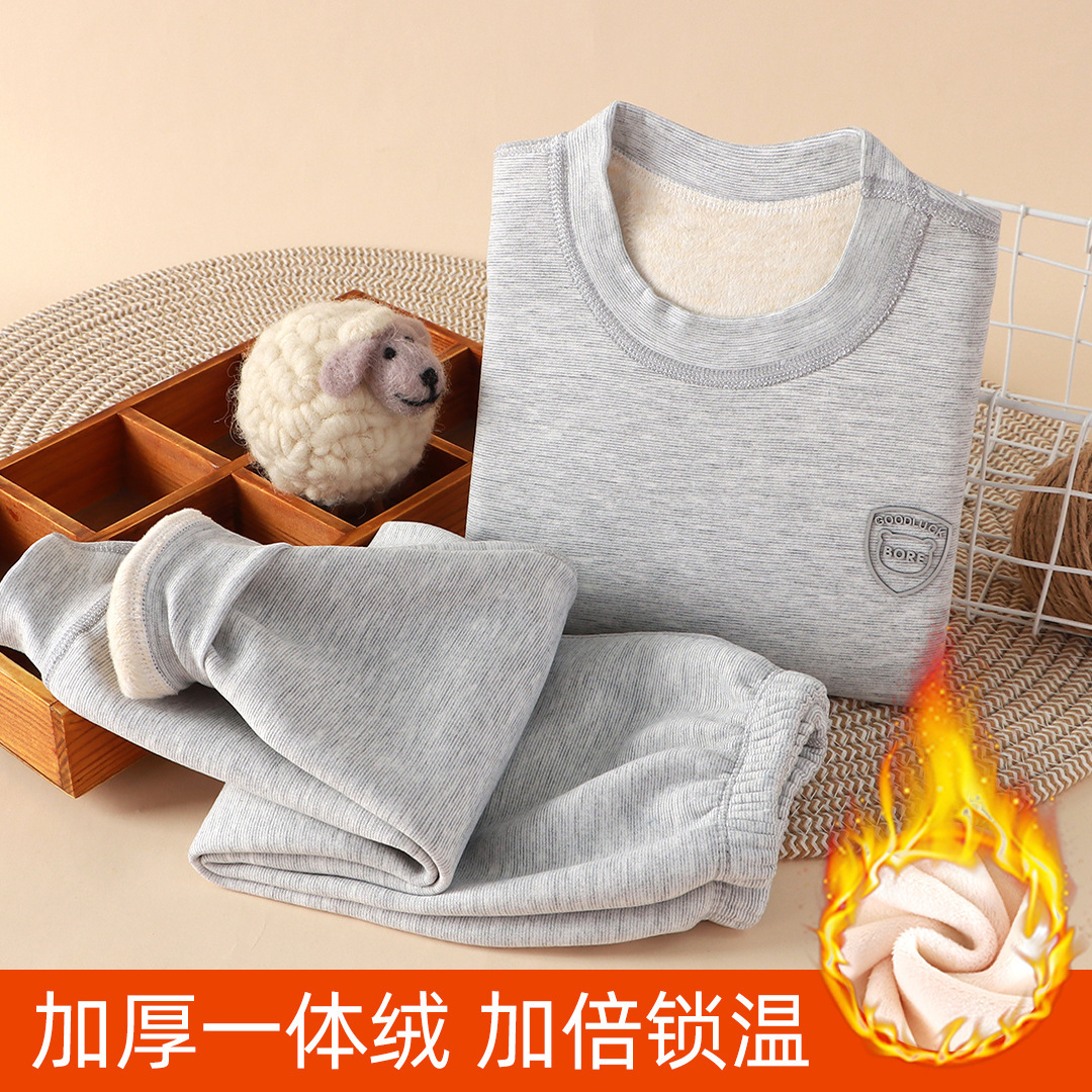 신형 보온 세트 남성용 무봉제 속옷 세트 플러스 벨벳 두꺼운 7A 항균 중대형 어린이용 양모 실크 코알라 벨벳스토어 가기