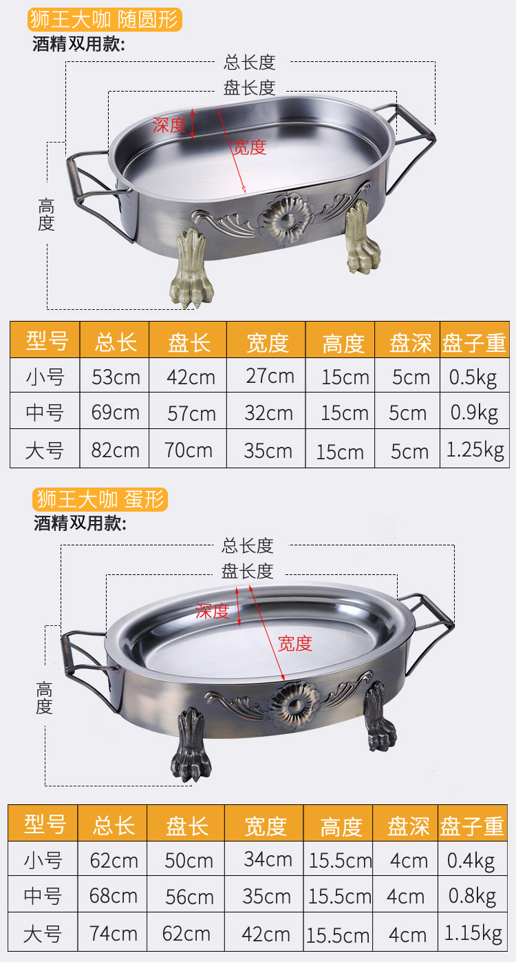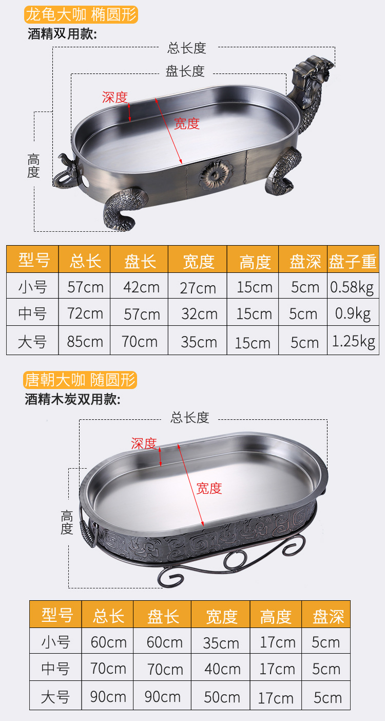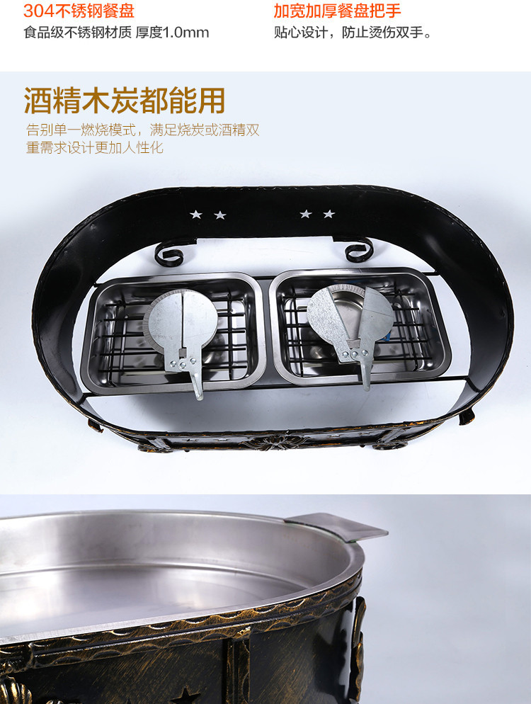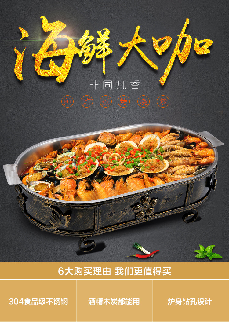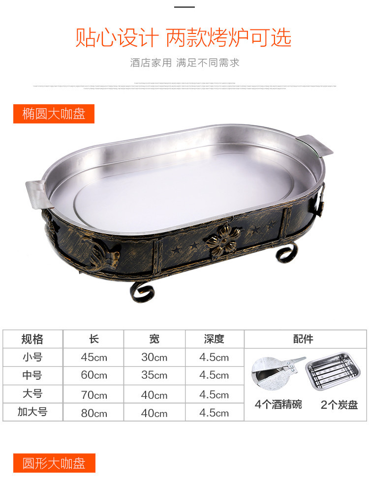 스테인레스 스틸 해산물 대형 카페 플레이트 알코올 숯 탄소 오븐 직사각형 상업용 어류 오븐 가정용 해산물 대형 카페 냄비스토어 가기
