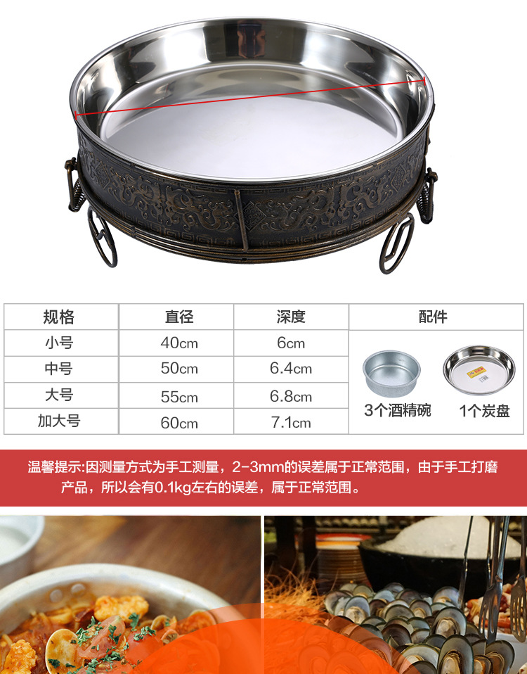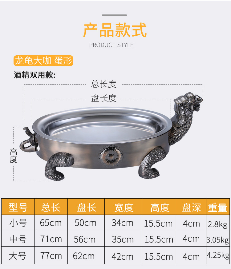스테인레스 스틸 해산물 대형 카페 플레이트 알코올 숯 탄소 오븐 직사각형 상업용 어류 오븐 가정용 해산물 대형 카페 냄비