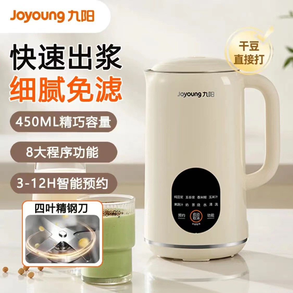 Jiuyang 작은 대두유 기계 가정용 필터없는 쌀 페이스트 깨진 벽 과즙 자동 1-2 인 미니 DJ04X-D125스토어 가기