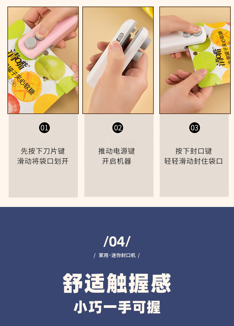 새로운 작은 휴대용 스낵 유물 다기능 usb 가정용 자기 흡입 손 압력 유형을 밀봉하는 국경 밀봉 기계스토어 가기