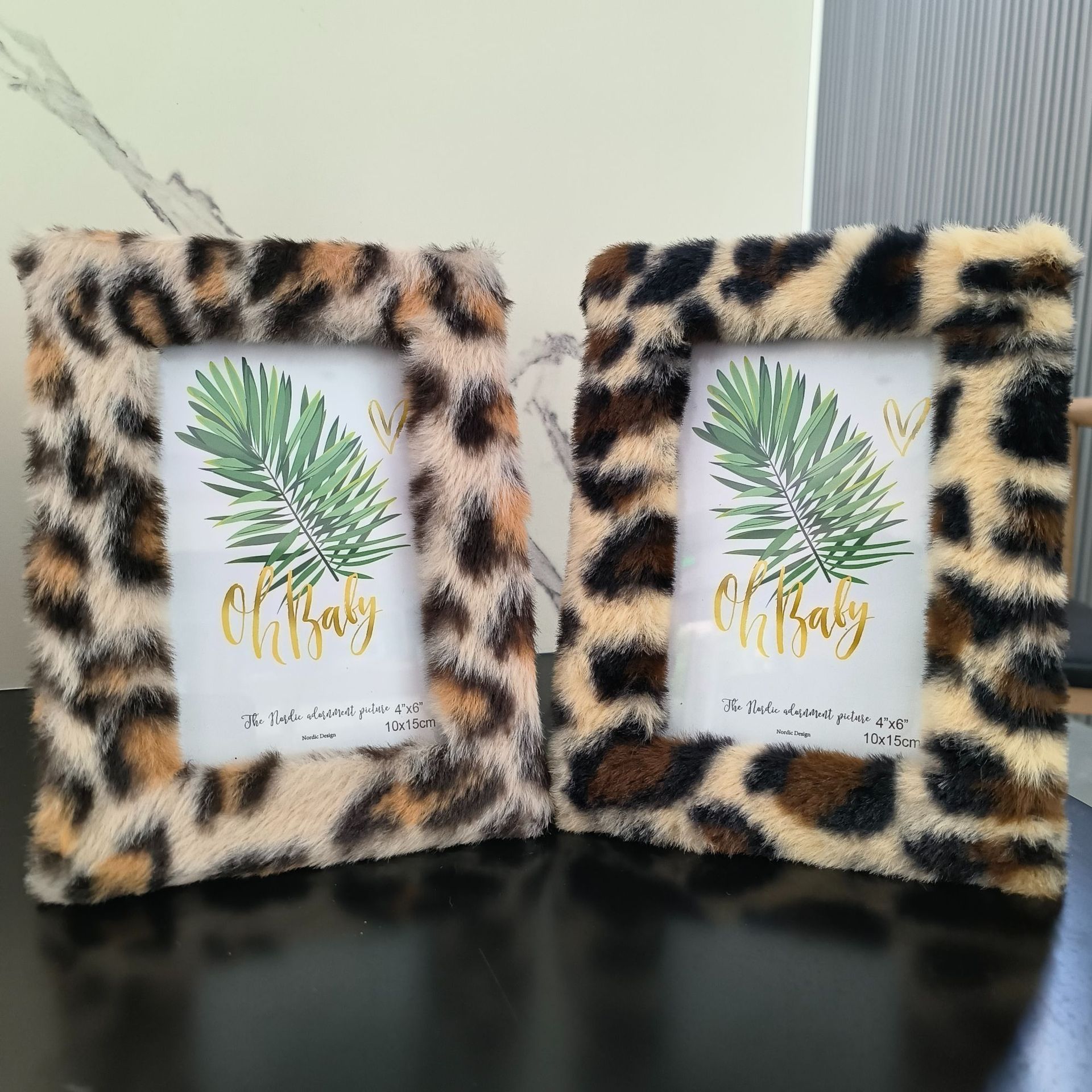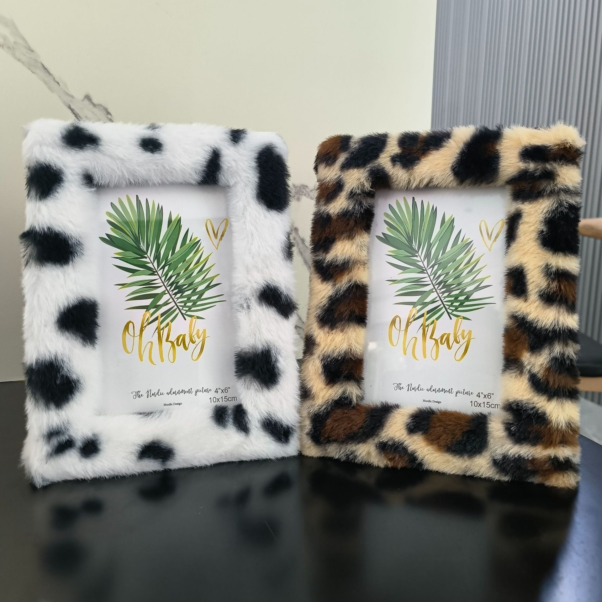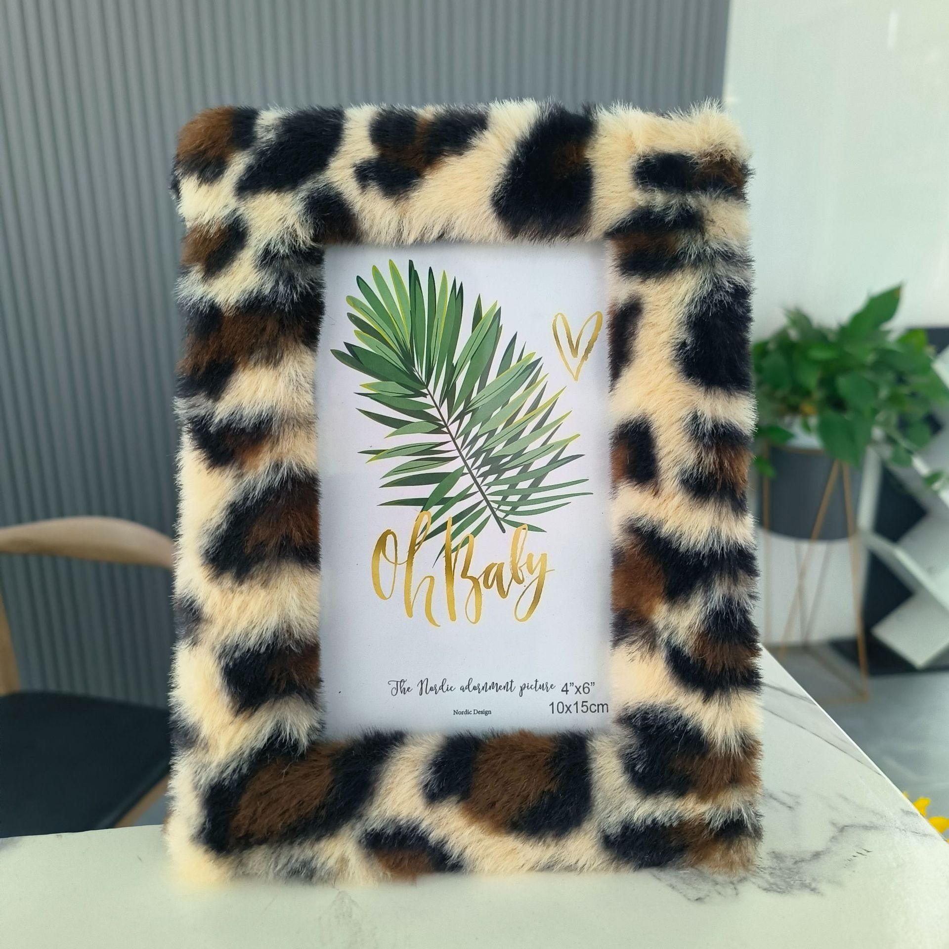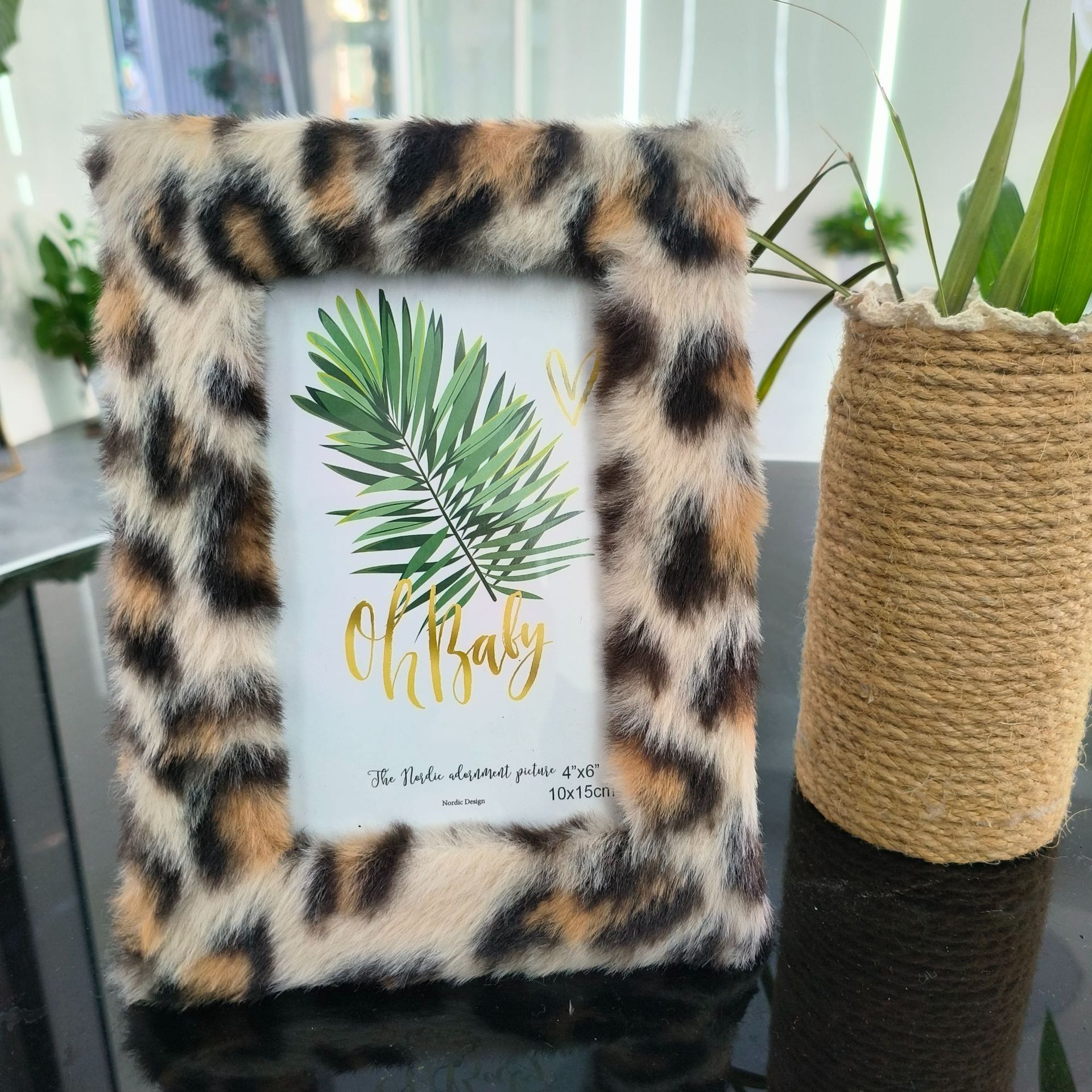 봉제 사진 프레임 MDF 가방 플란넬 모조 울 사각형 중공 사진 프레임 유럽과 미국의 mdf 천 테이블 67 인치 레오파드 무늬스토어 가기