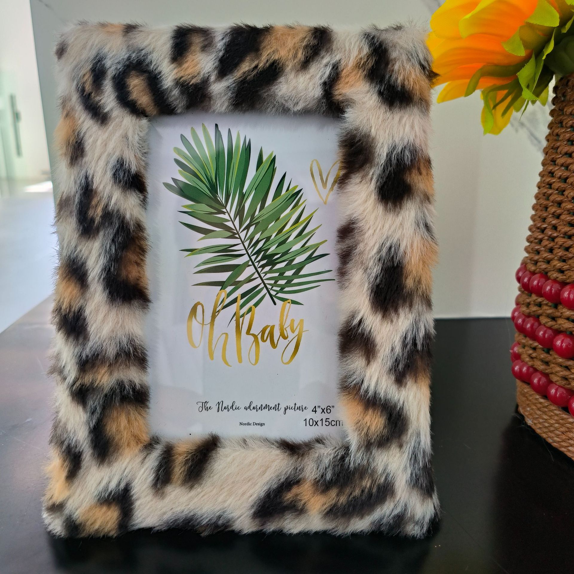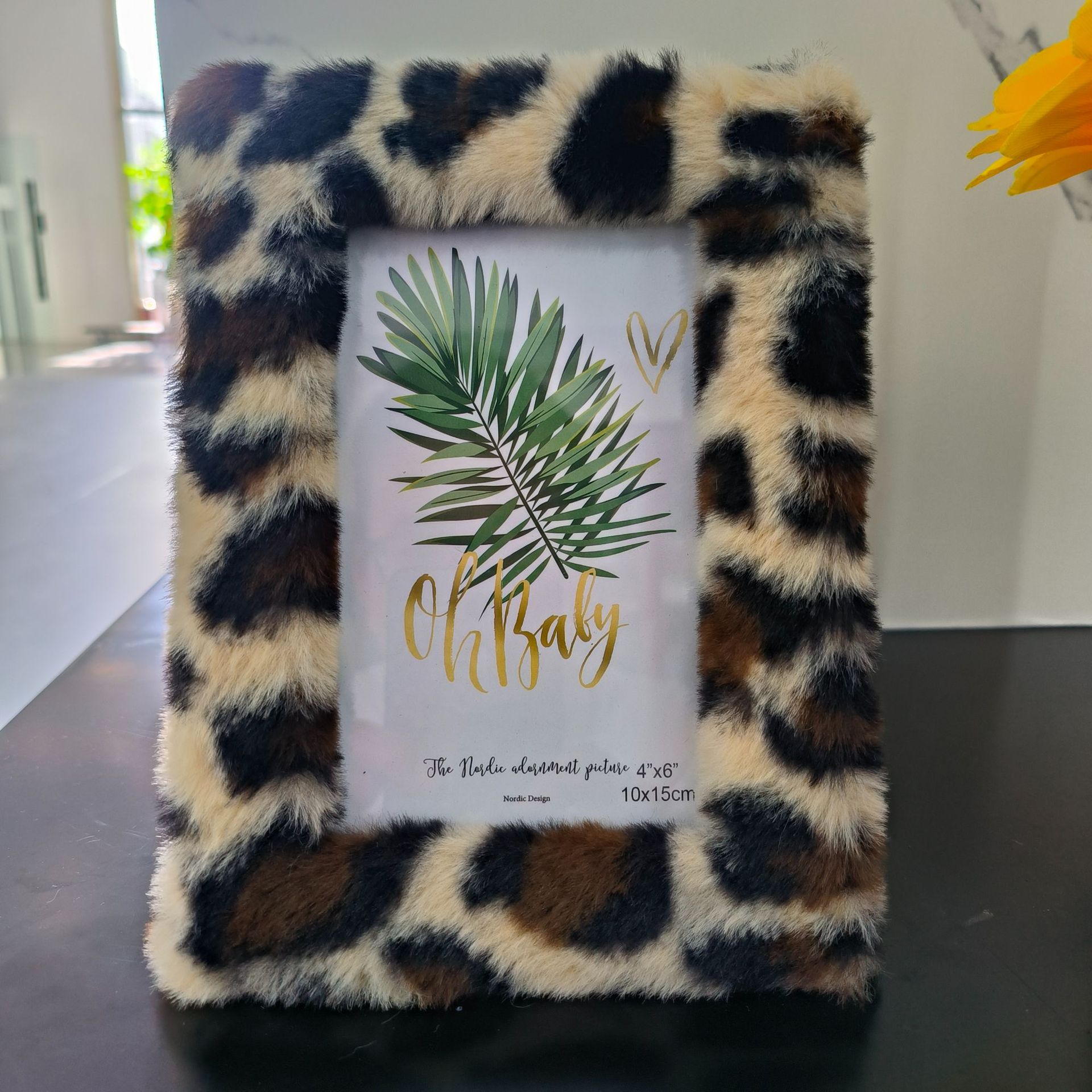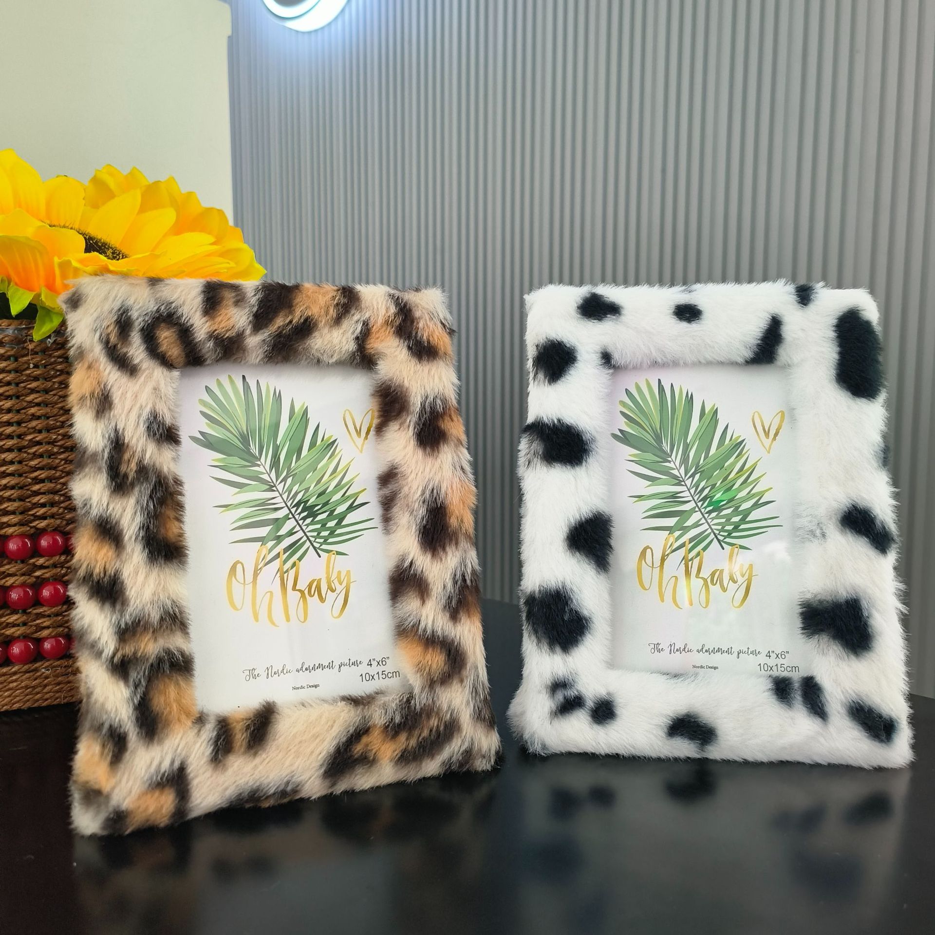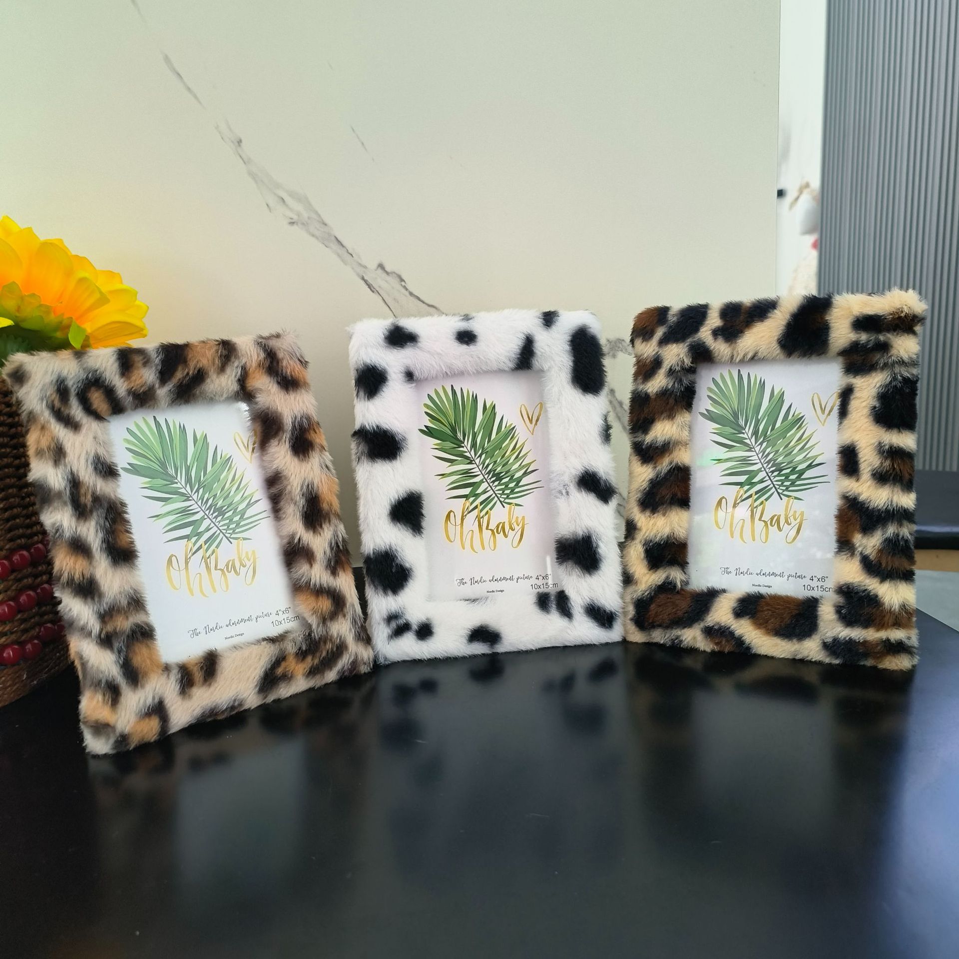 봉제 사진 프레임 MDF 가방 플란넬 모조 울 사각형 중공 사진 프레임 유럽과 미국의 mdf 천 테이블 67 인치 레오파드 무늬스토어 가기