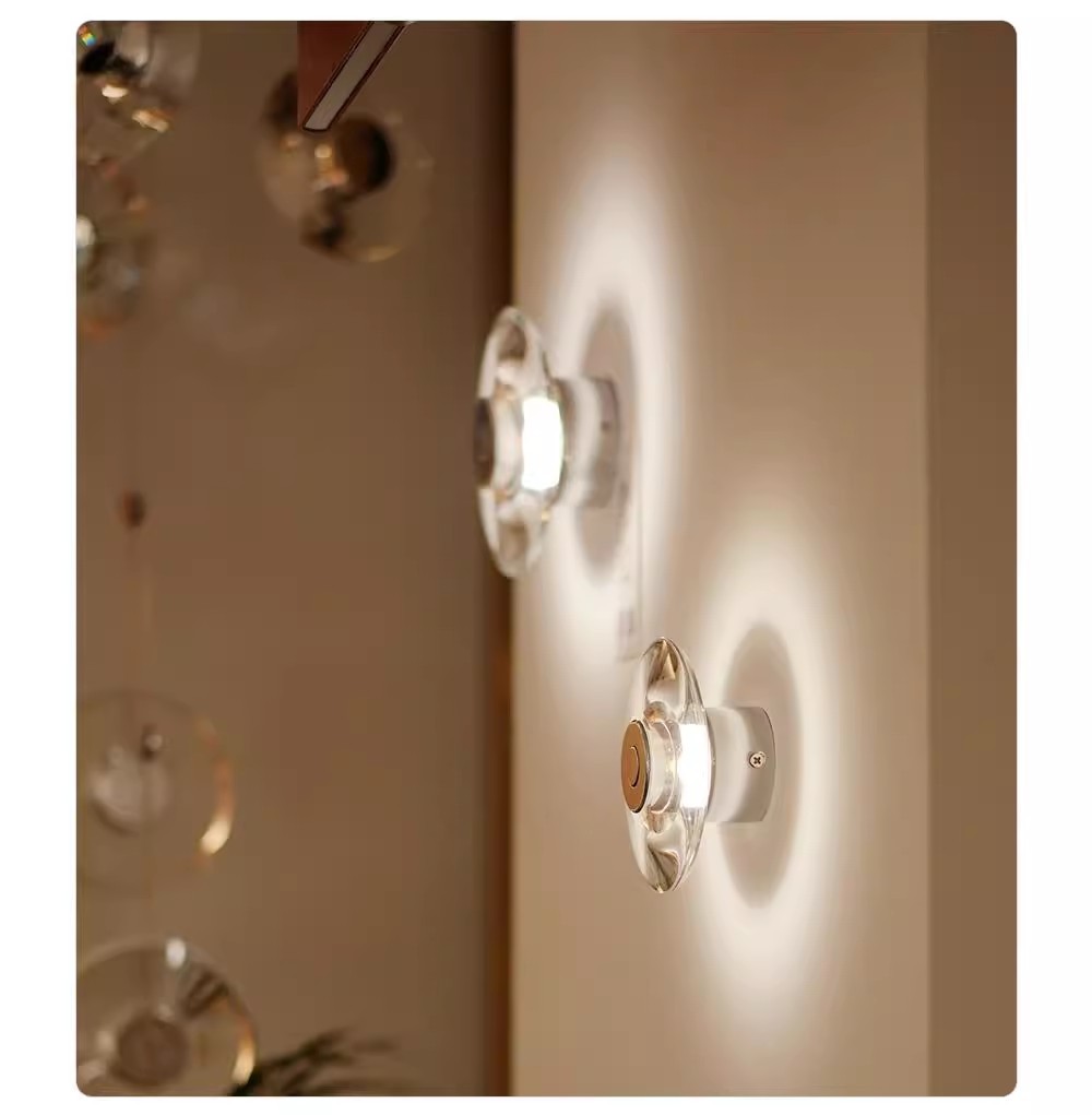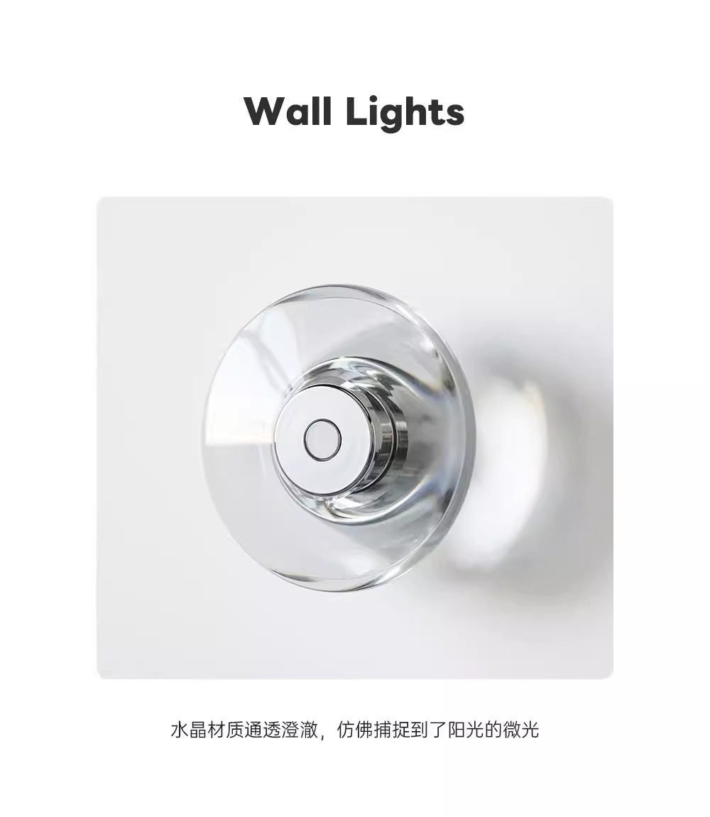 이탈리아 미니멀리스트 벽 램프 라운드 침실 크리스탈 침실 램프 현대 미니멀리스트 복도 통로 배경 벽 장식 램프