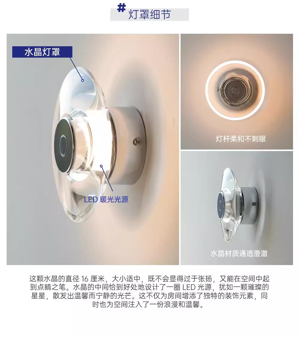 이탈리아 미니멀리스트 벽 램프 라운드 침실 크리스탈 침실 램프 현대 미니멀리스트 복도 통로 배경 벽 장식 램프스토어 가기