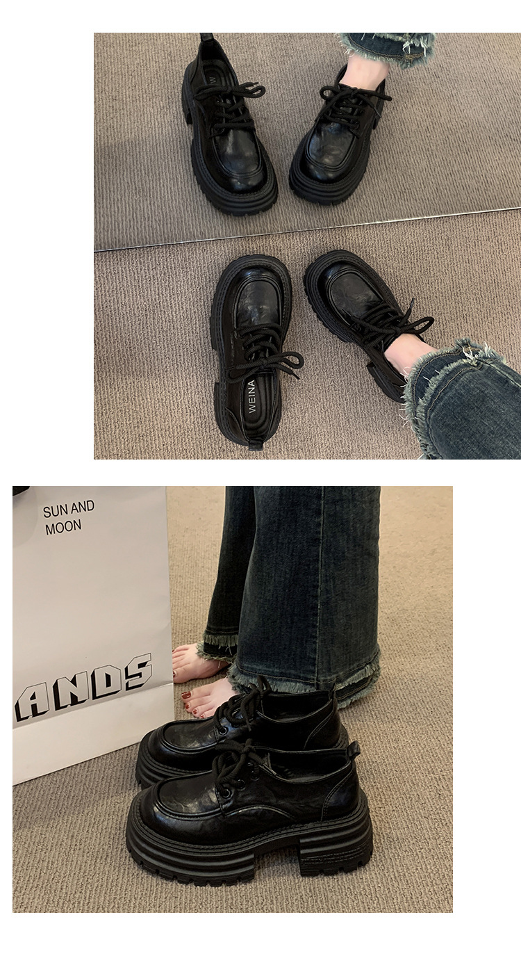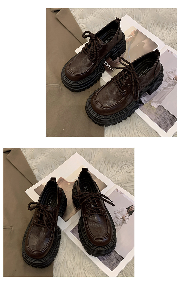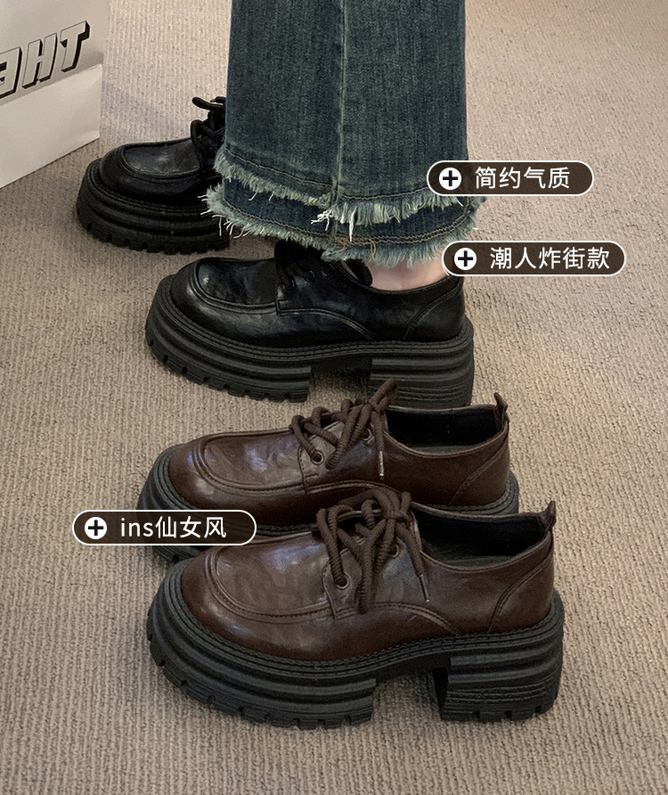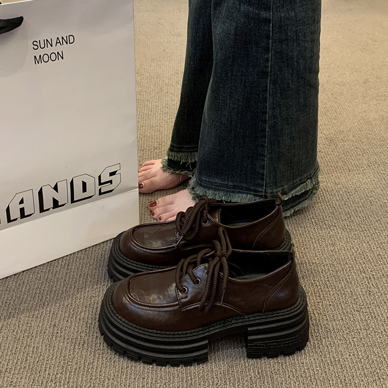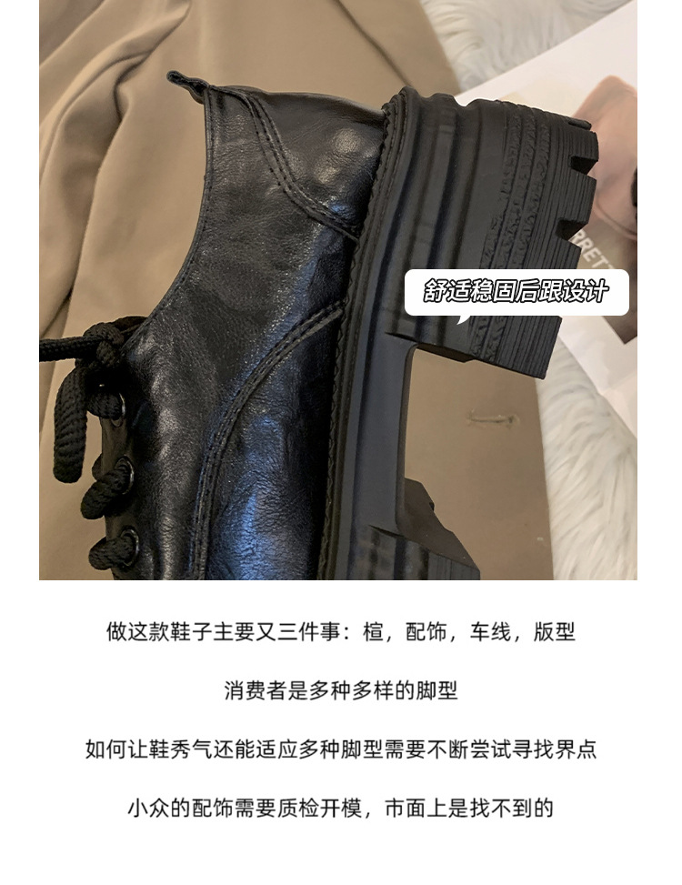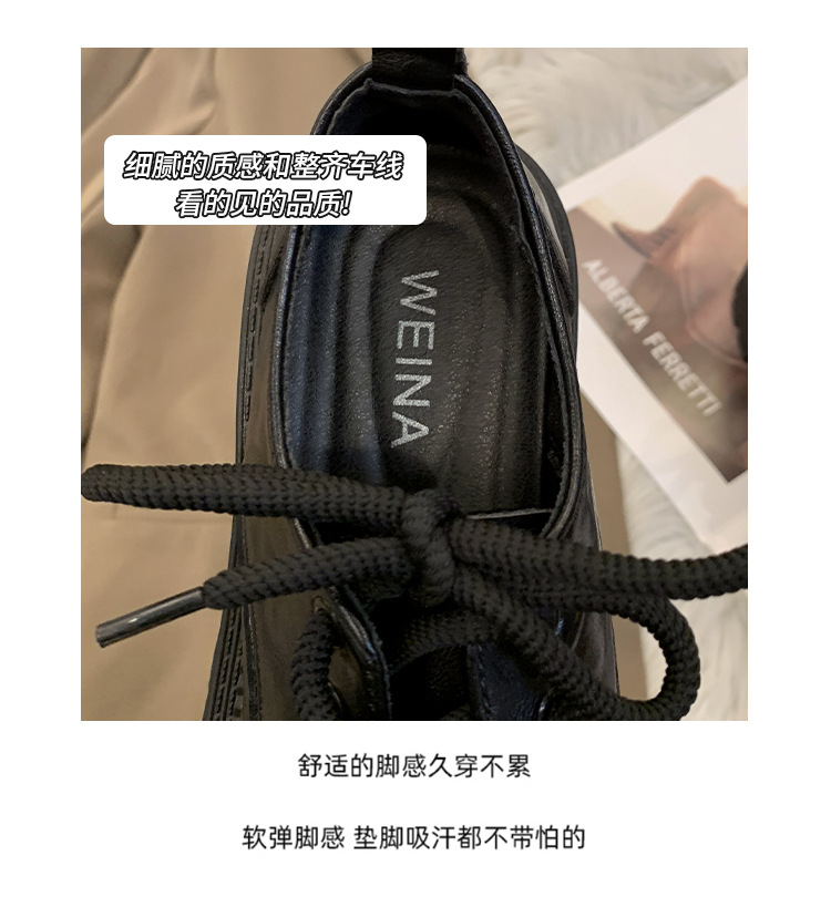 영국 스타일의 작은 가죽 신발 여성의 2024 가을 새로운 두꺼운 밑창 신발 끈 부드러운 밑창 머핀 레트로 올 매치 해피 슈즈스토어 가기