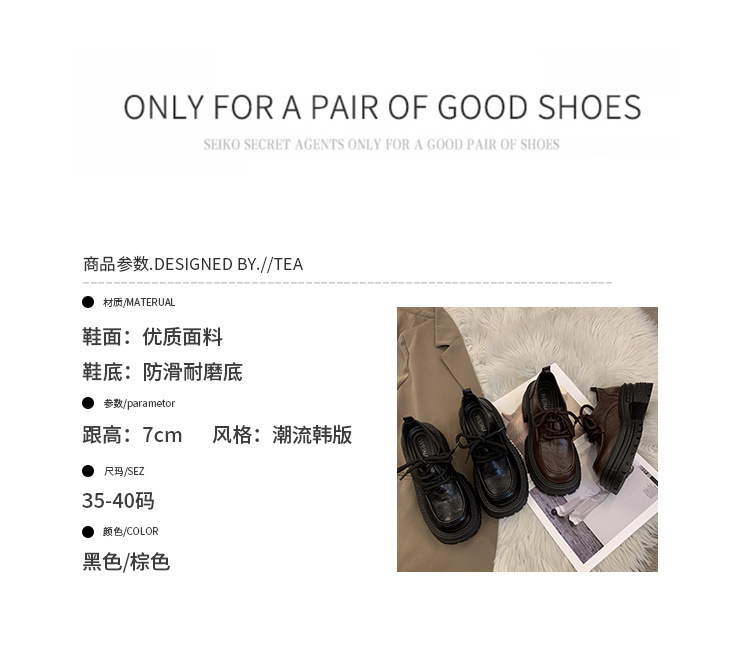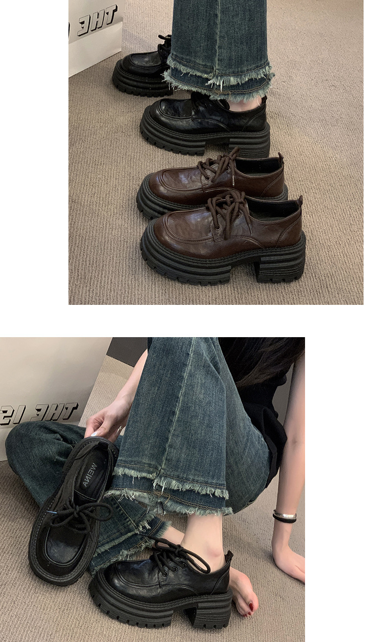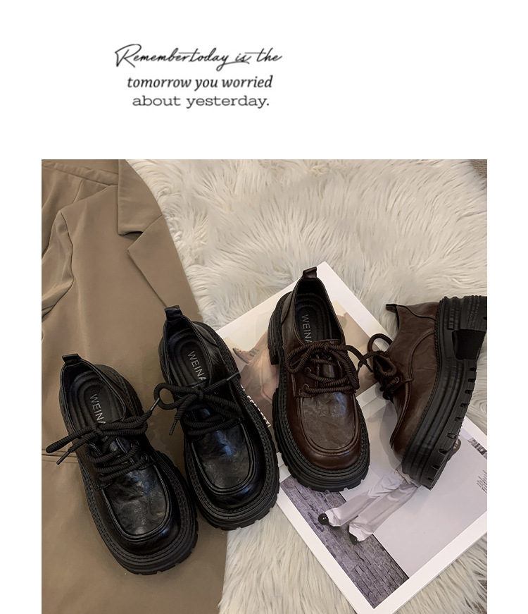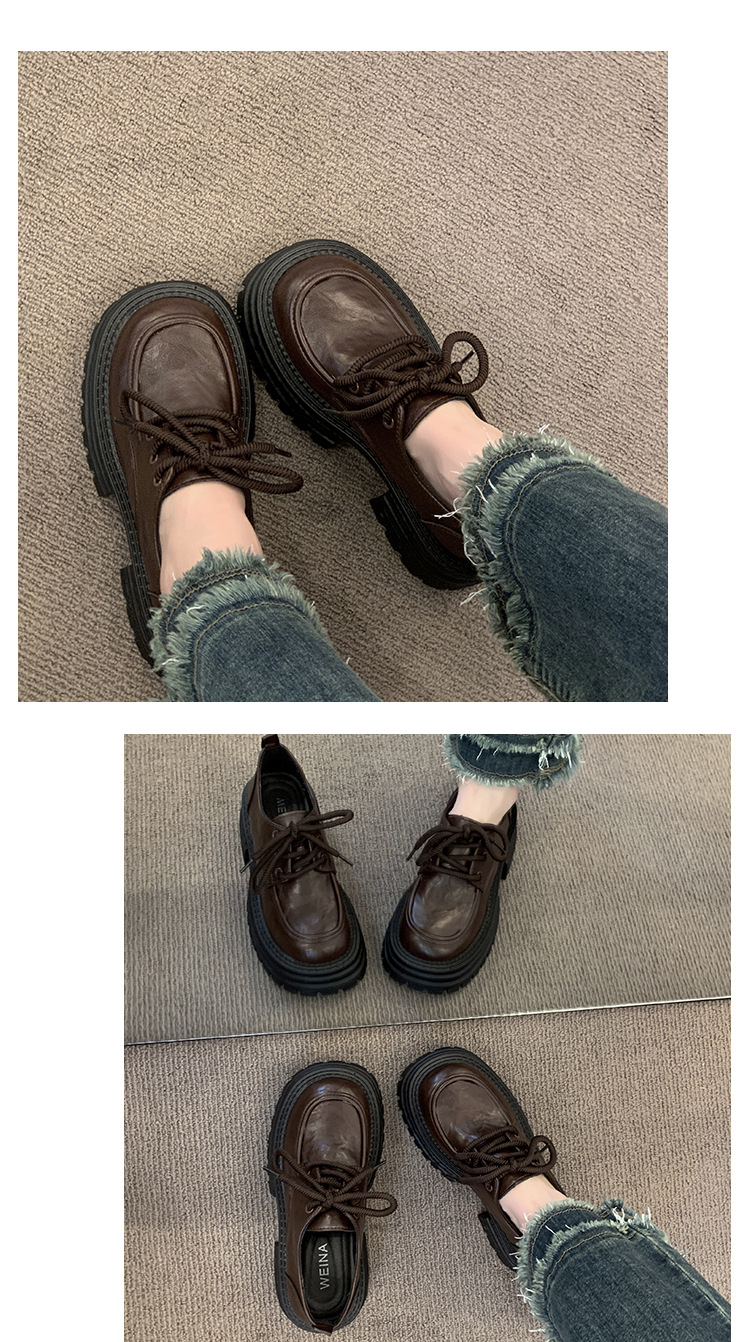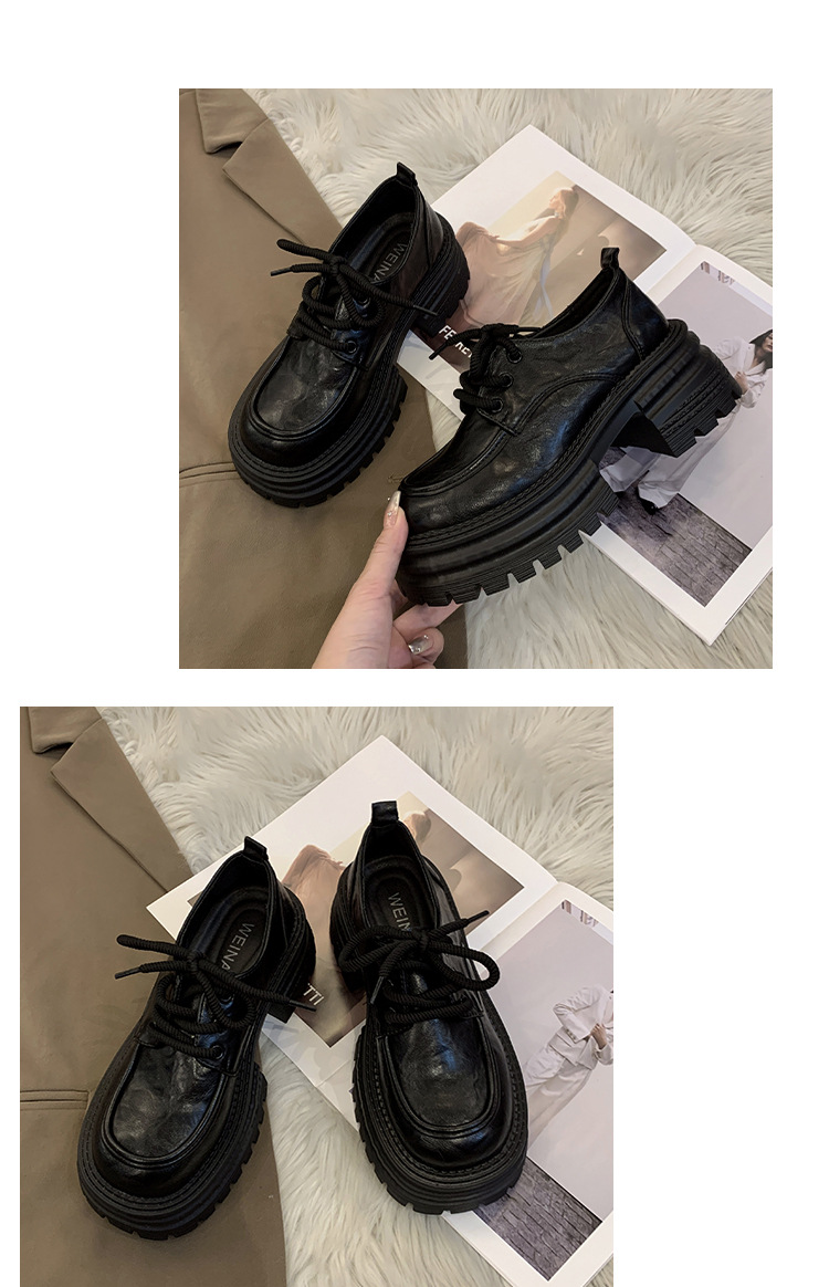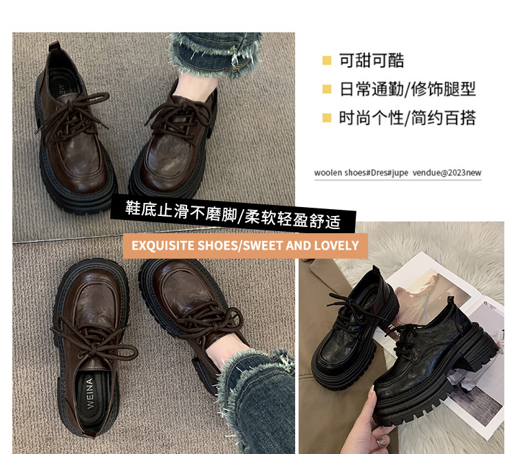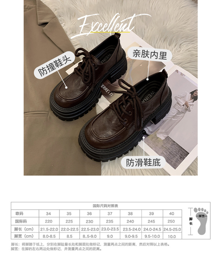 영국 스타일의 작은 가죽 신발 여성의 2024 가을 새로운 두꺼운 밑창 신발 끈 부드러운 밑창 머핀 레트로 올 매치 해피 슈즈스토어 가기