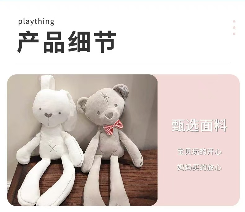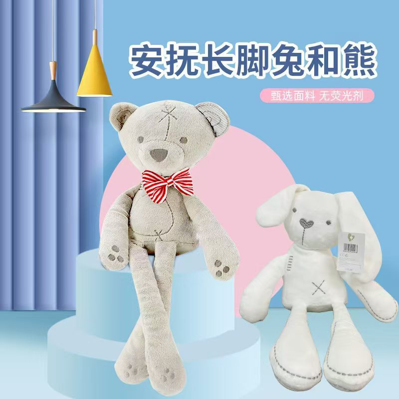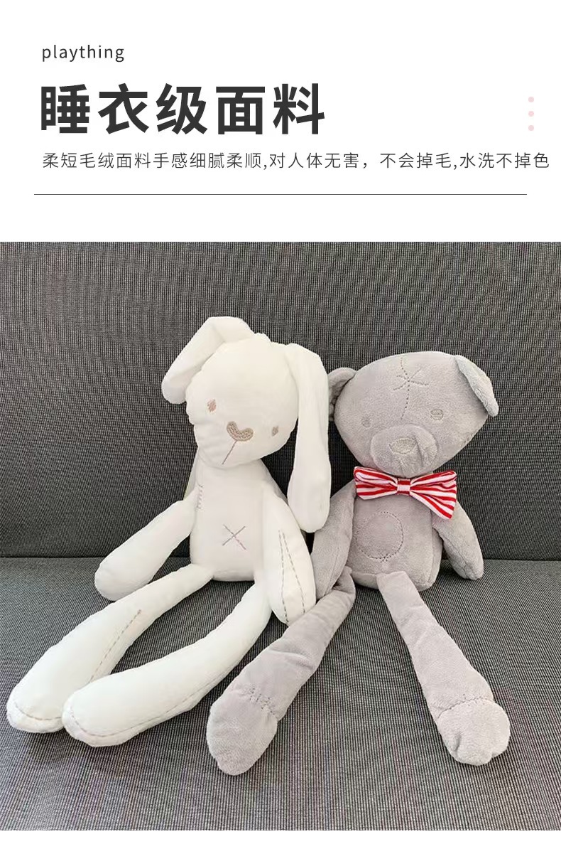 흰색 봉제 토끼곰 인형, 아기 진정 및 수면용, 0~3세 아기용 포옹 인형, 도매 인형스토어 가기