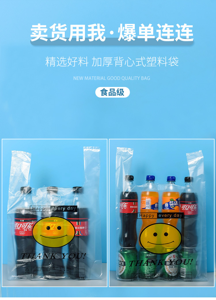 조끼형 휴대용 쇼핑백 플라스틱 편리한 가방 매장 슈퍼마켓 쇼핑 편리한 비닐봉투 조끼형 휴대용 가방 두꺼운