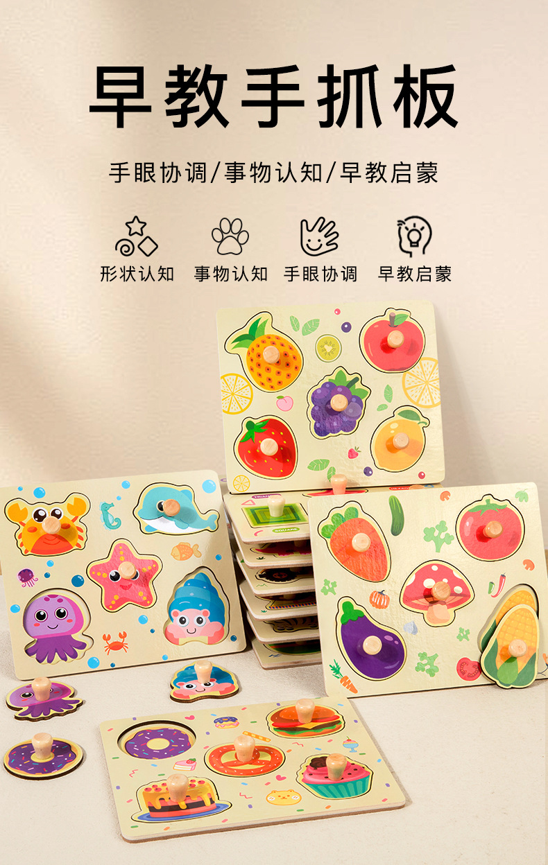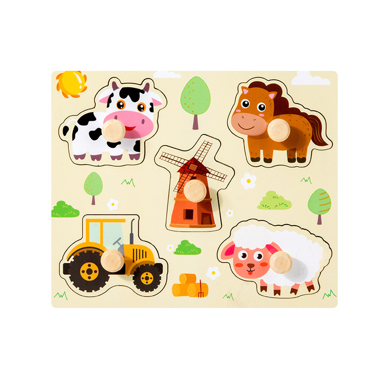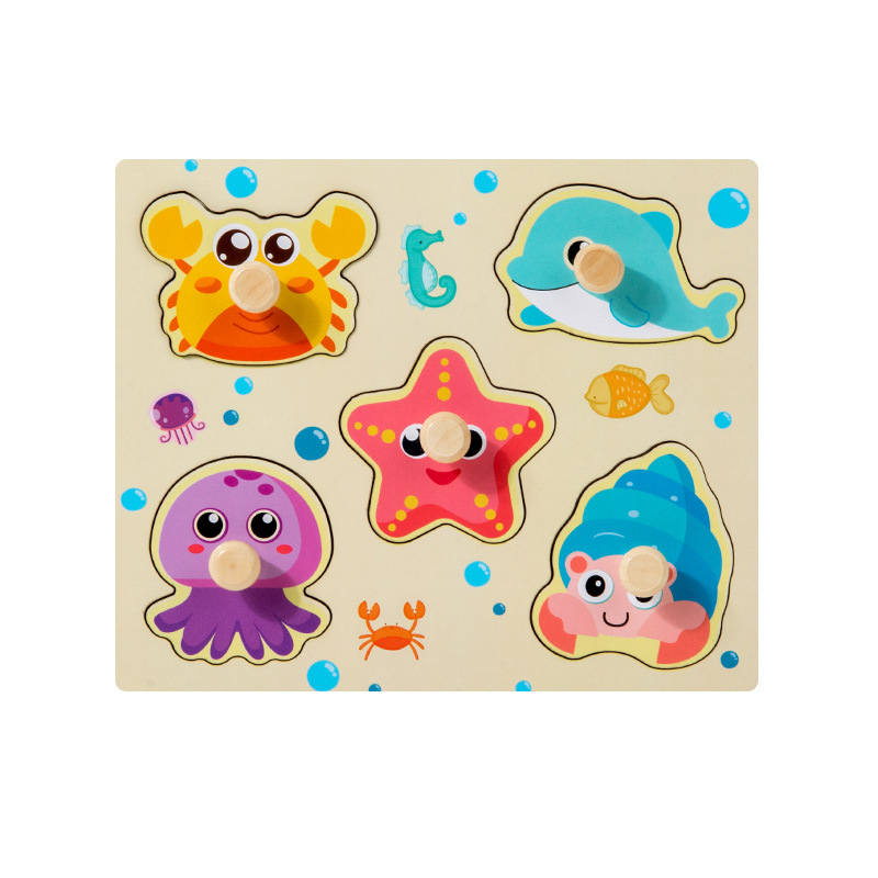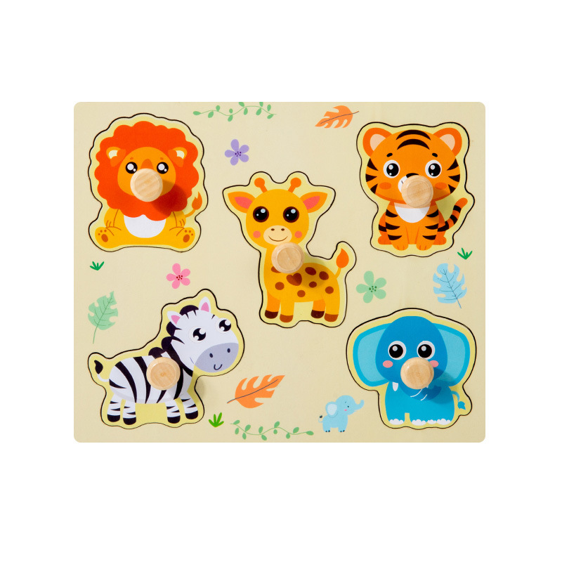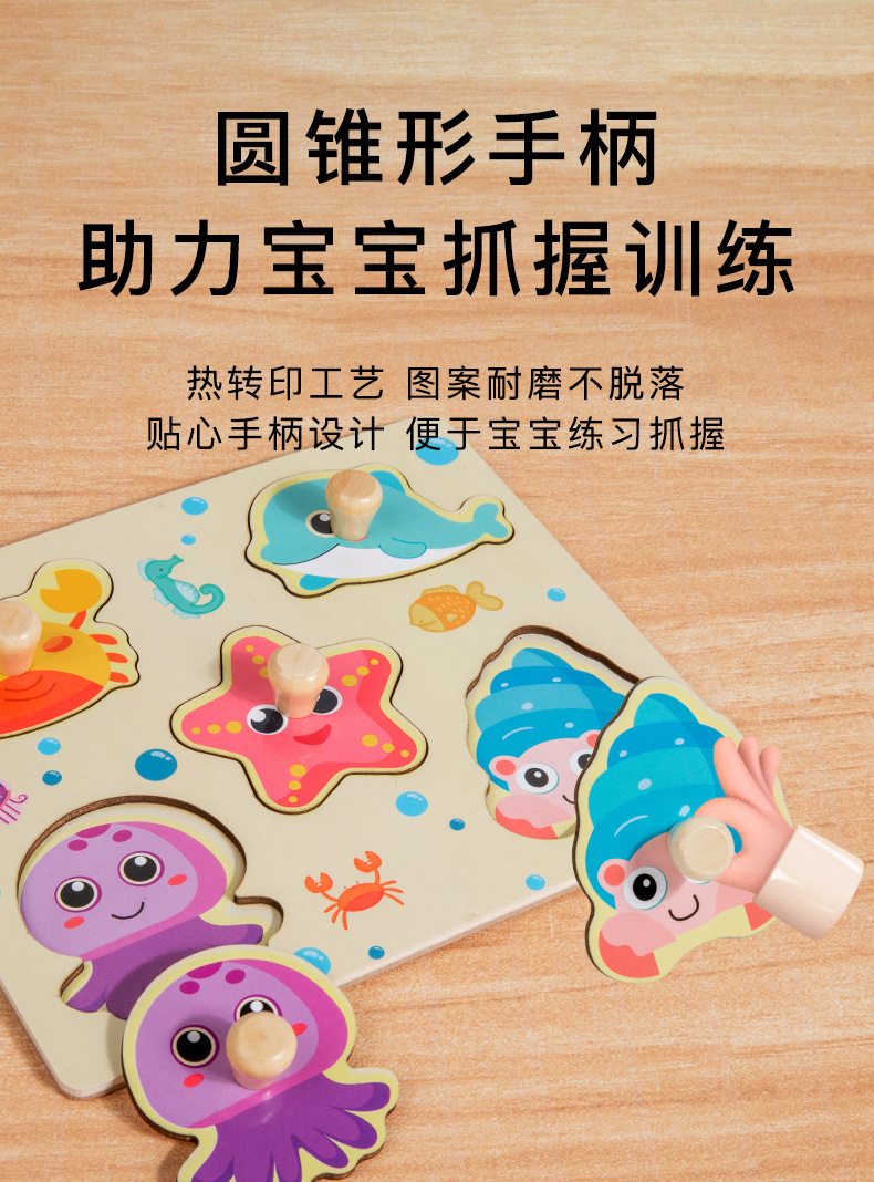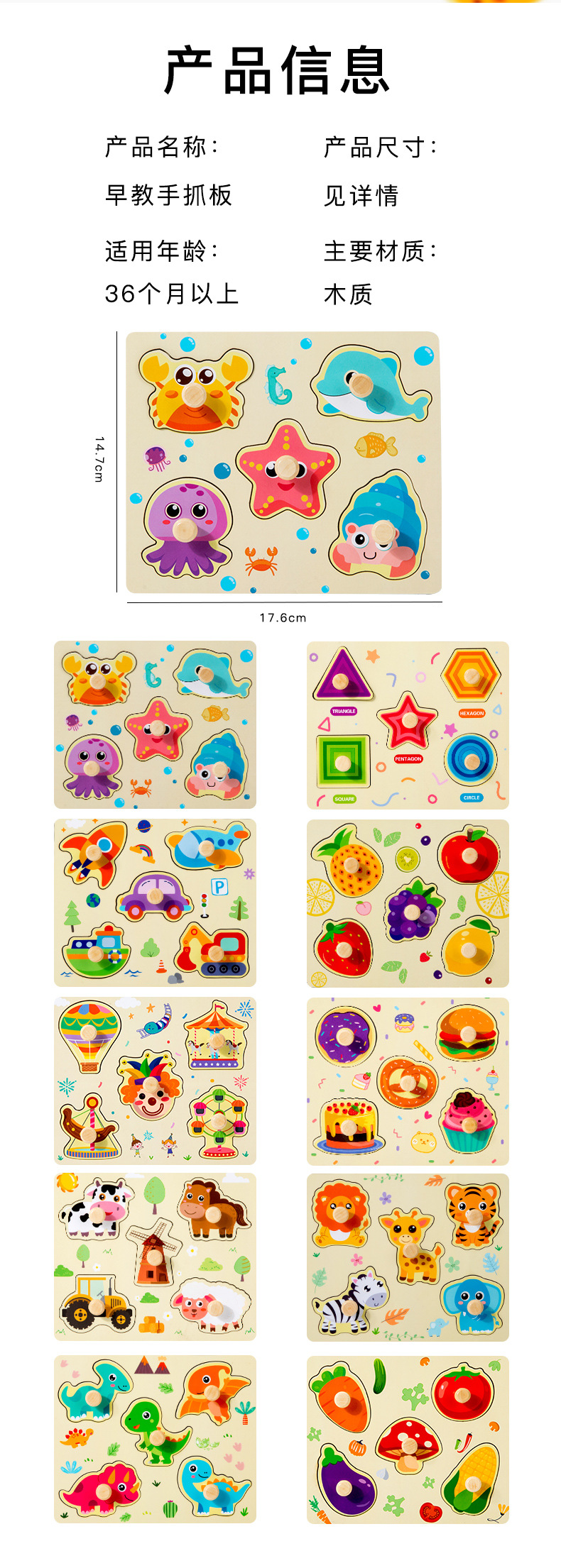 국경을 넘는 인기 상품 나무 장난감 어린이 조기 교육용 교육용 만화 동물 해양 교통 그립보드 나무 퍼즐