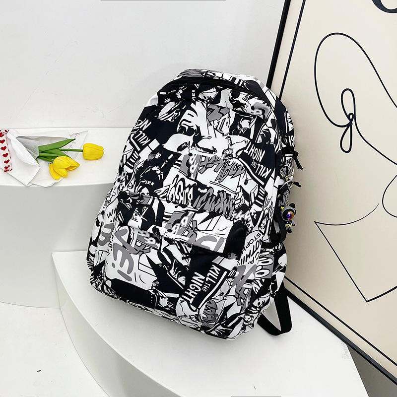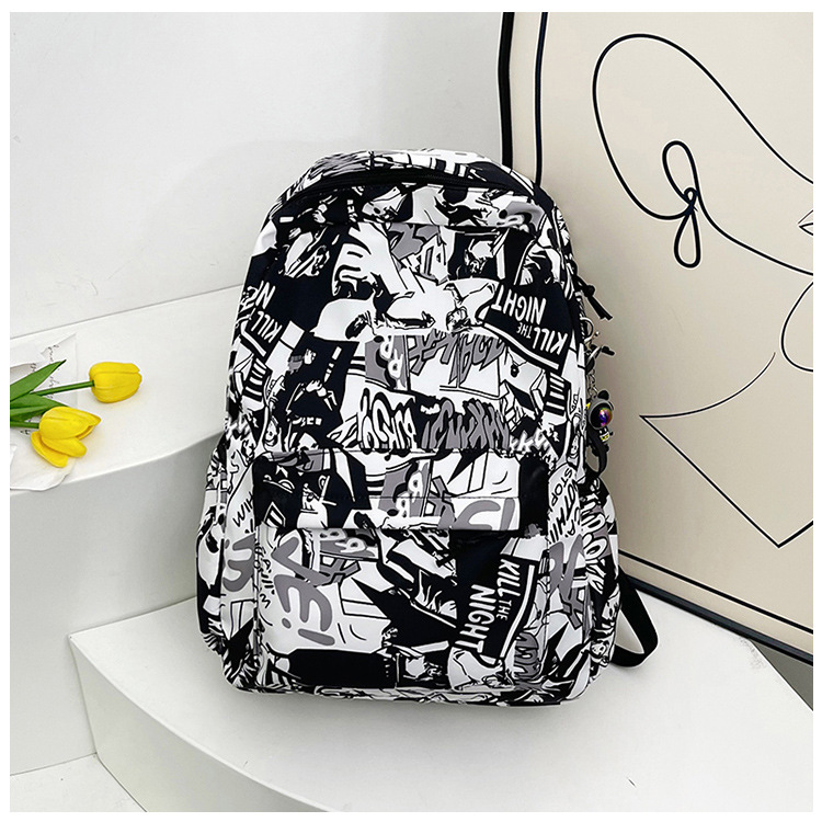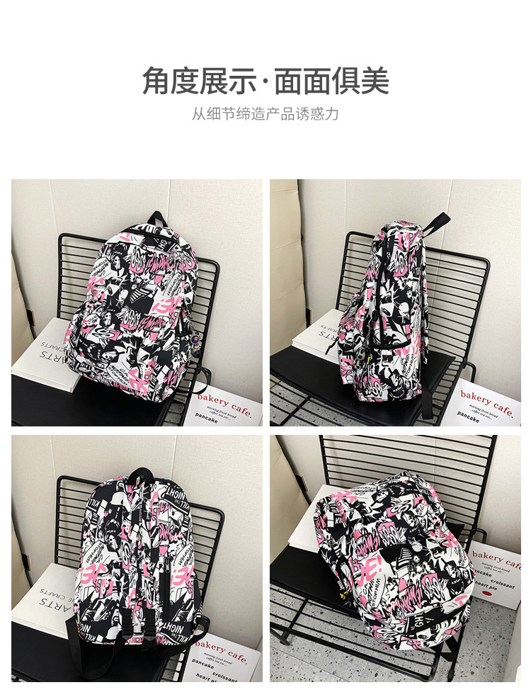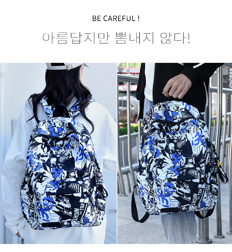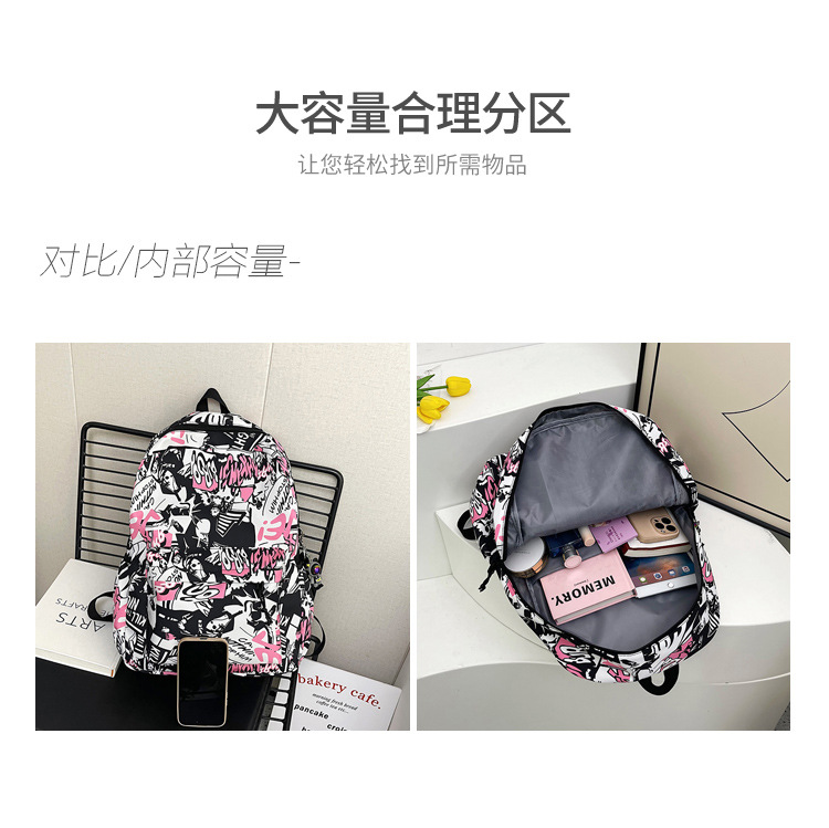 배낭 학생 대용량 2024 새로운 Schoolbag 한국 스타일 간단한 인쇄 배낭 클러치 가방 국경 간 대외 무역스토어 가기