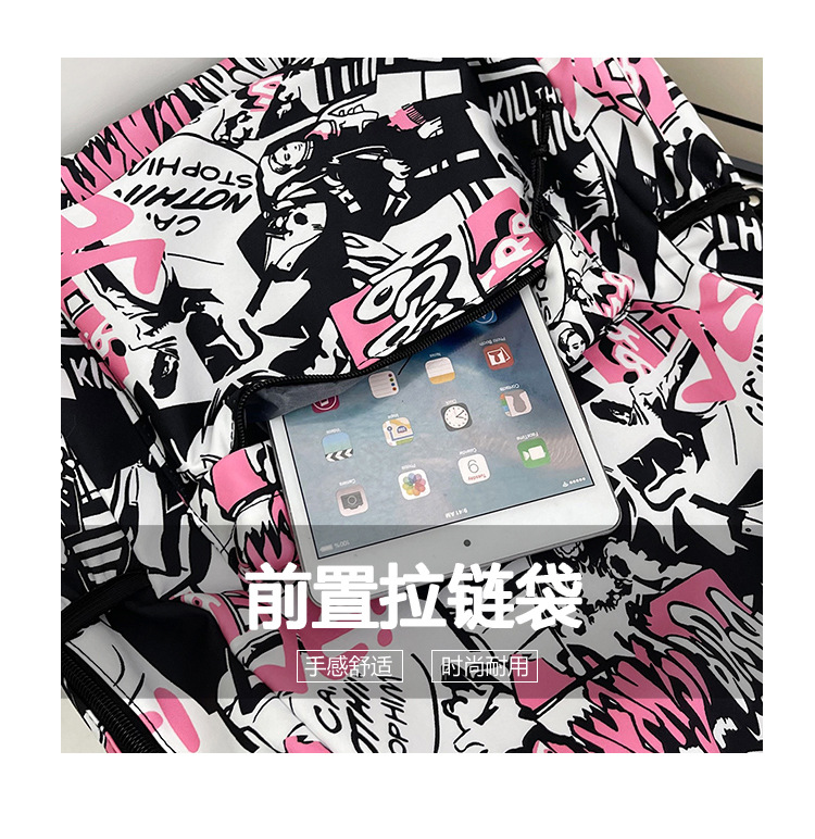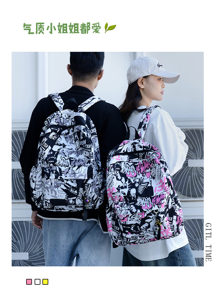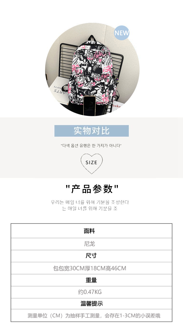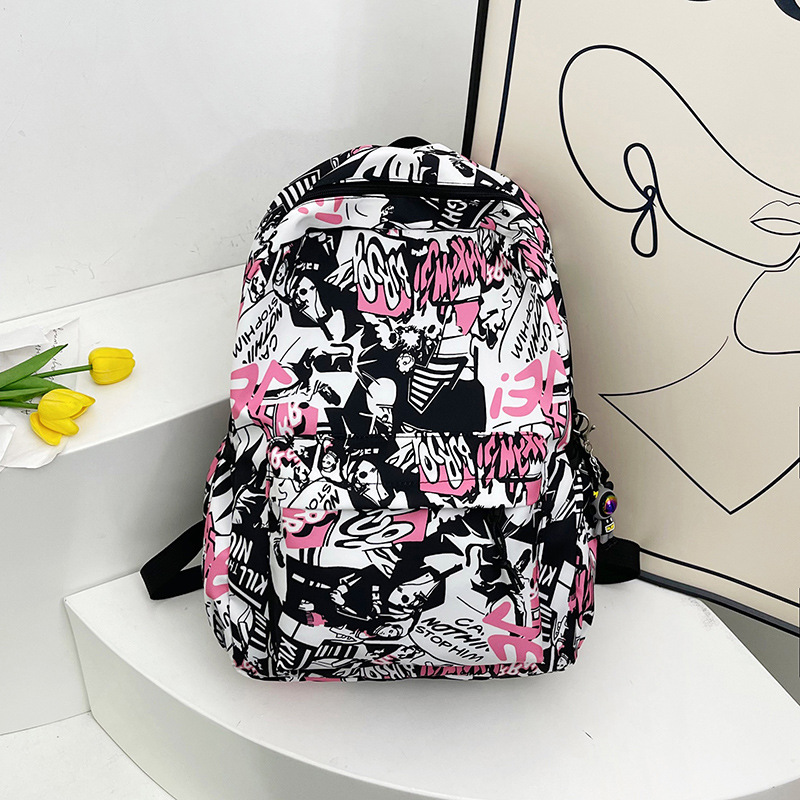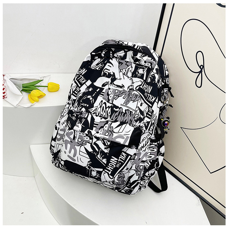 배낭 학생 대용량 2024 새로운 Schoolbag 한국 스타일 간단한 인쇄 배낭 클러치 가방 국경 간 대외 무역스토어 가기