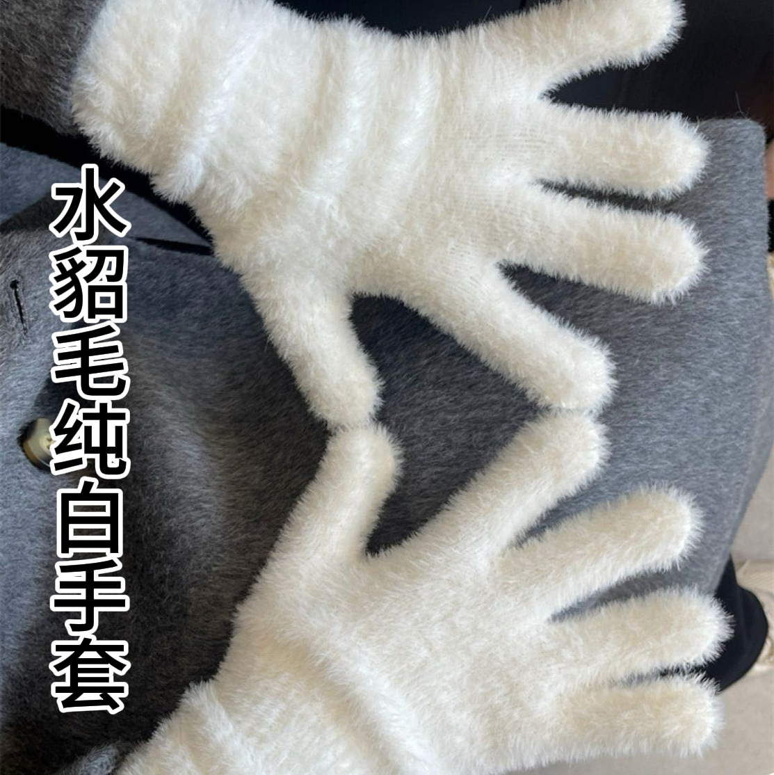 한국식 겨울 장갑 모방 밍크 헤어 순수 화이트 장갑 새로운 솔리드 컬러 스위트 인 플러시 따뜻한 장갑 사이클링 보호스토어 가기