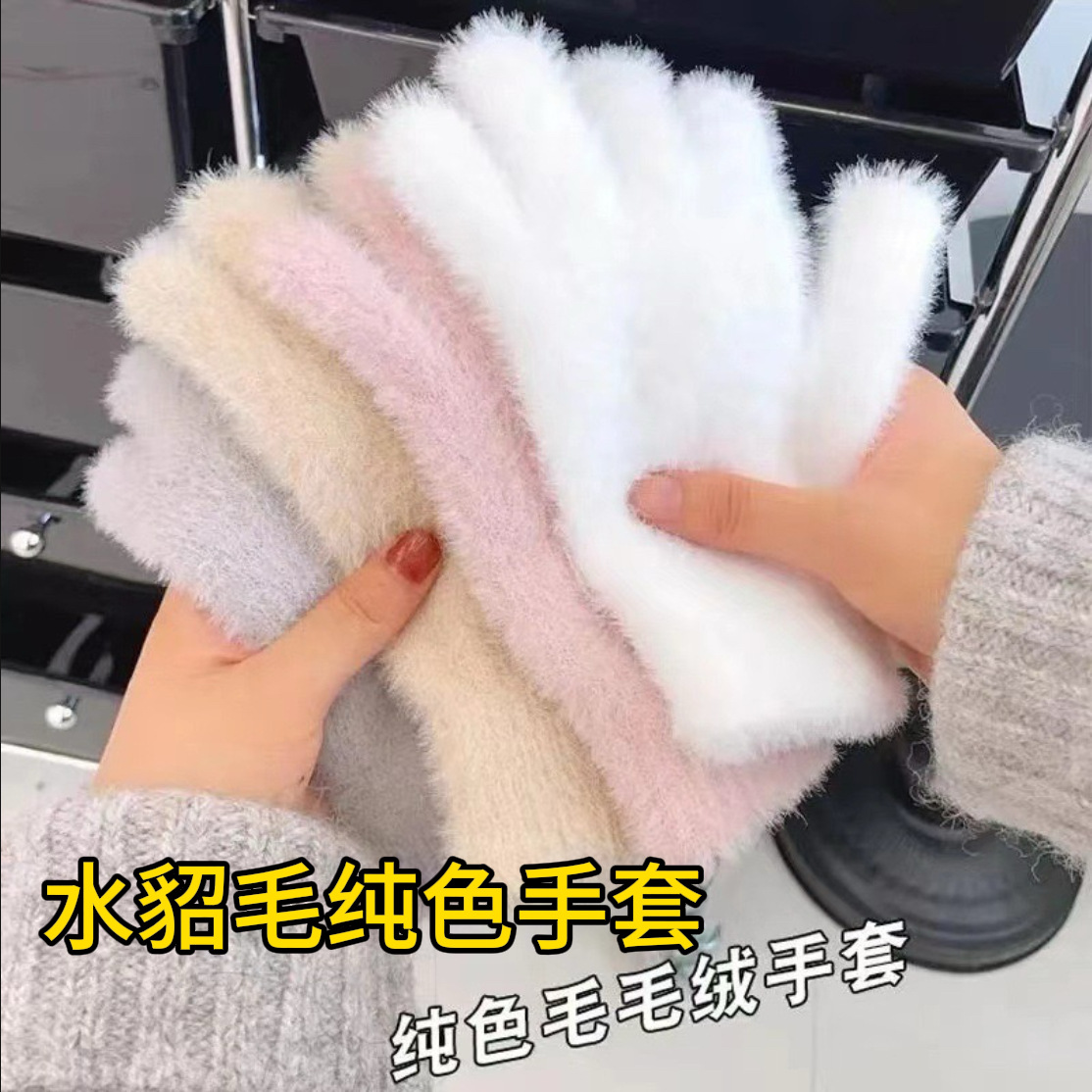 한국식 겨울 장갑 모방 밍크 헤어 순수 화이트 장갑 새로운 솔리드 컬러 스위트 인 플러시 따뜻한 장갑 사이클링 보호