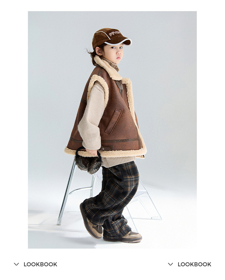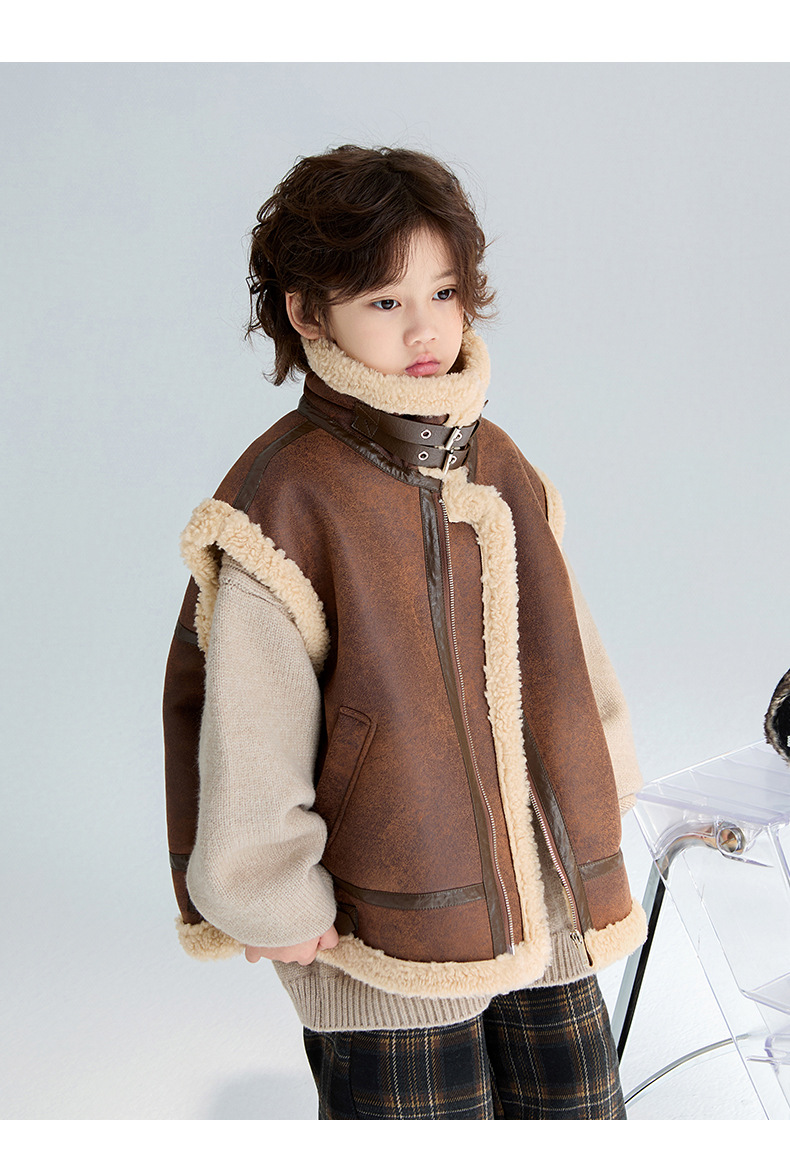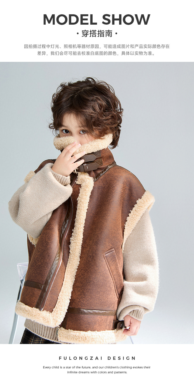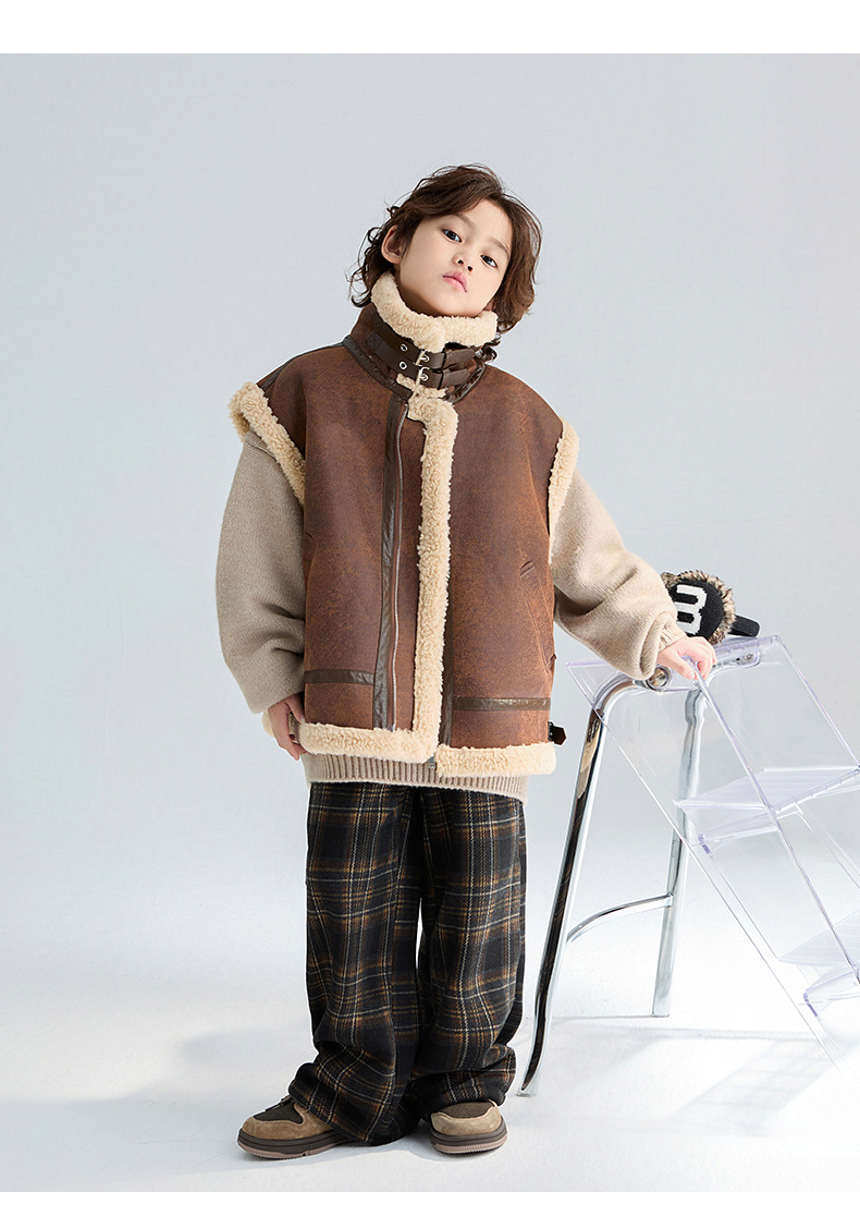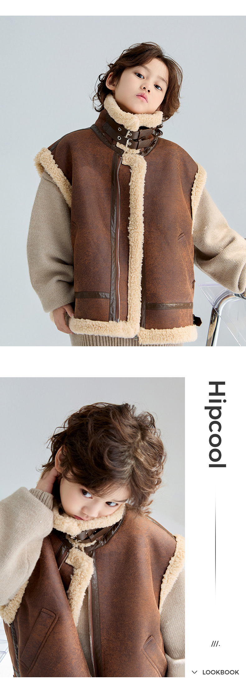 부모와 자녀를 위한 겨울 신상품, 모피 일체형 민소매 남녀 아동복, 중대형 아동용 플러스 벨벳 두꺼운 조끼 상의