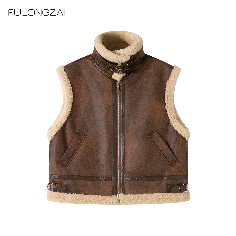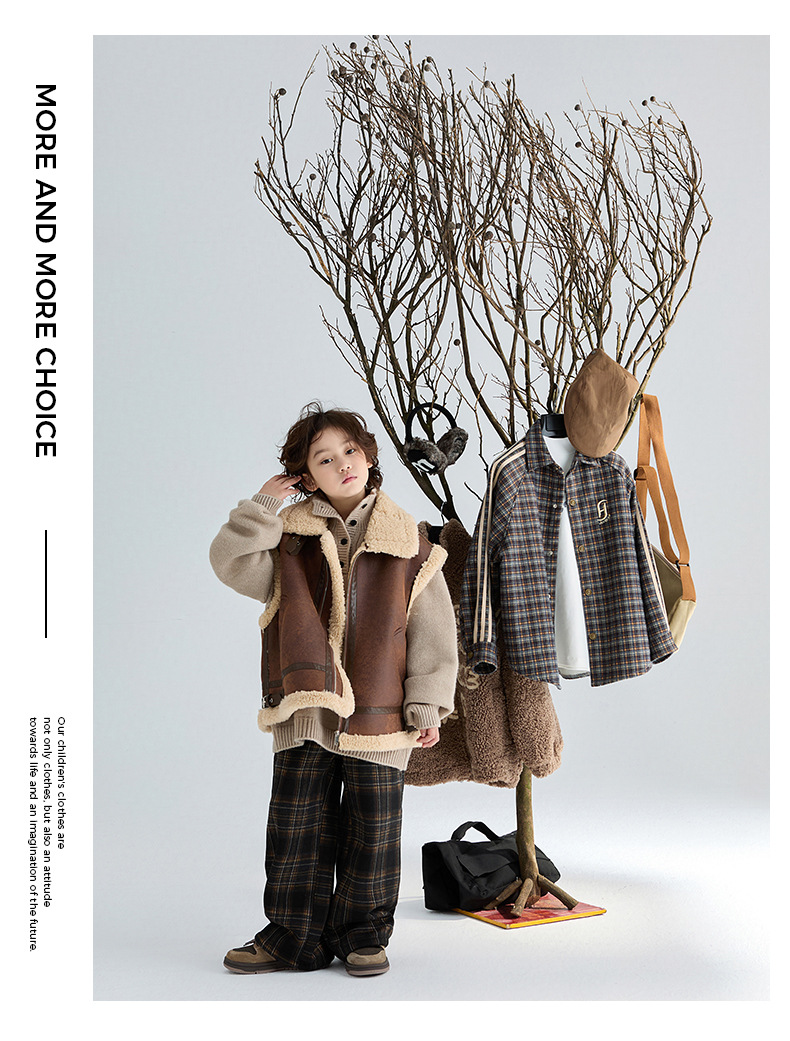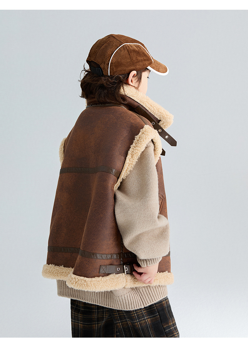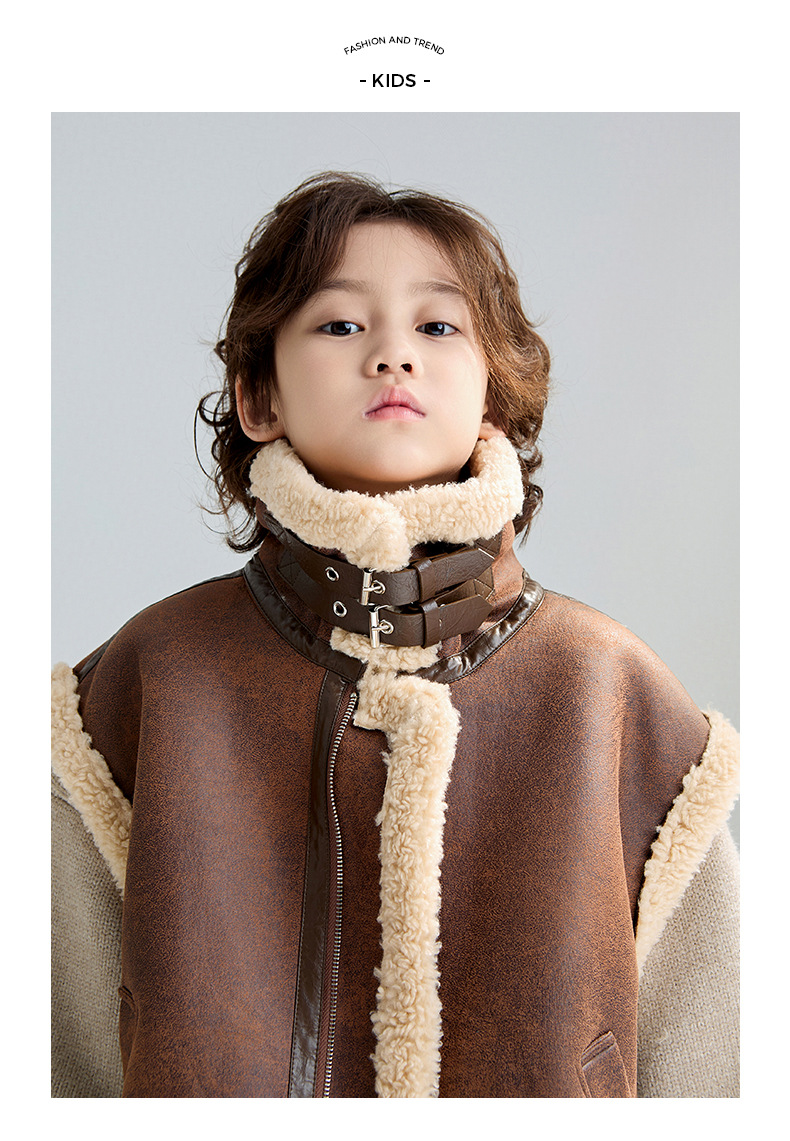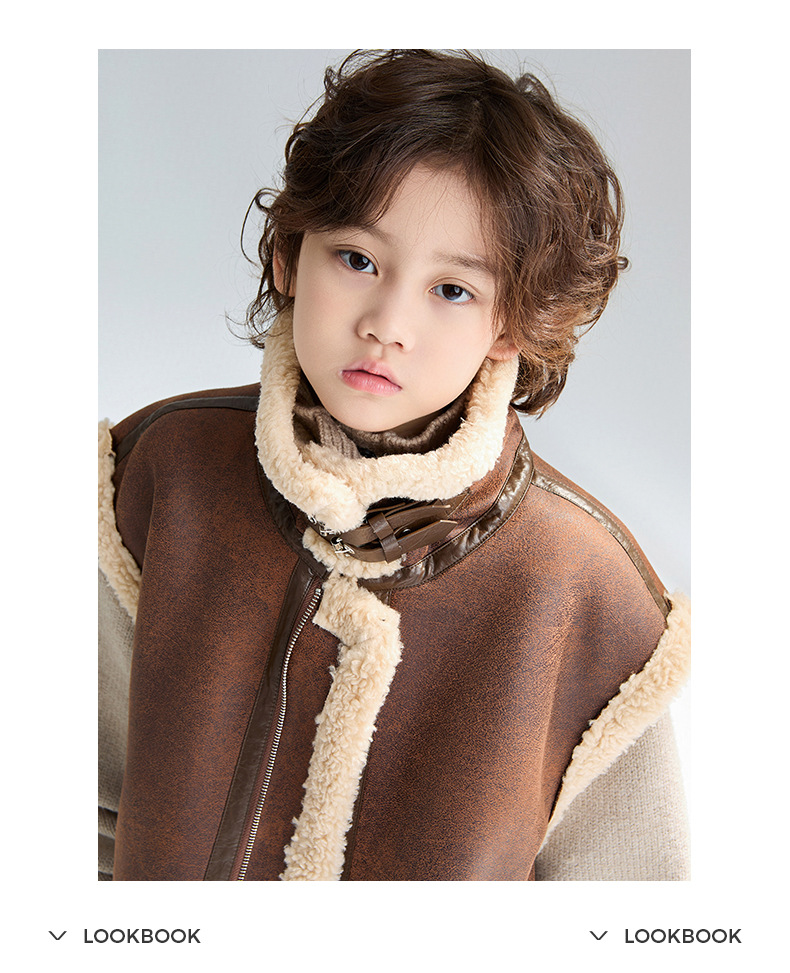 부모와 자녀를 위한 겨울 신상품, 모피 일체형 민소매 남녀 아동복, 중대형 아동용 플러스 벨벳 두꺼운 조끼 상의