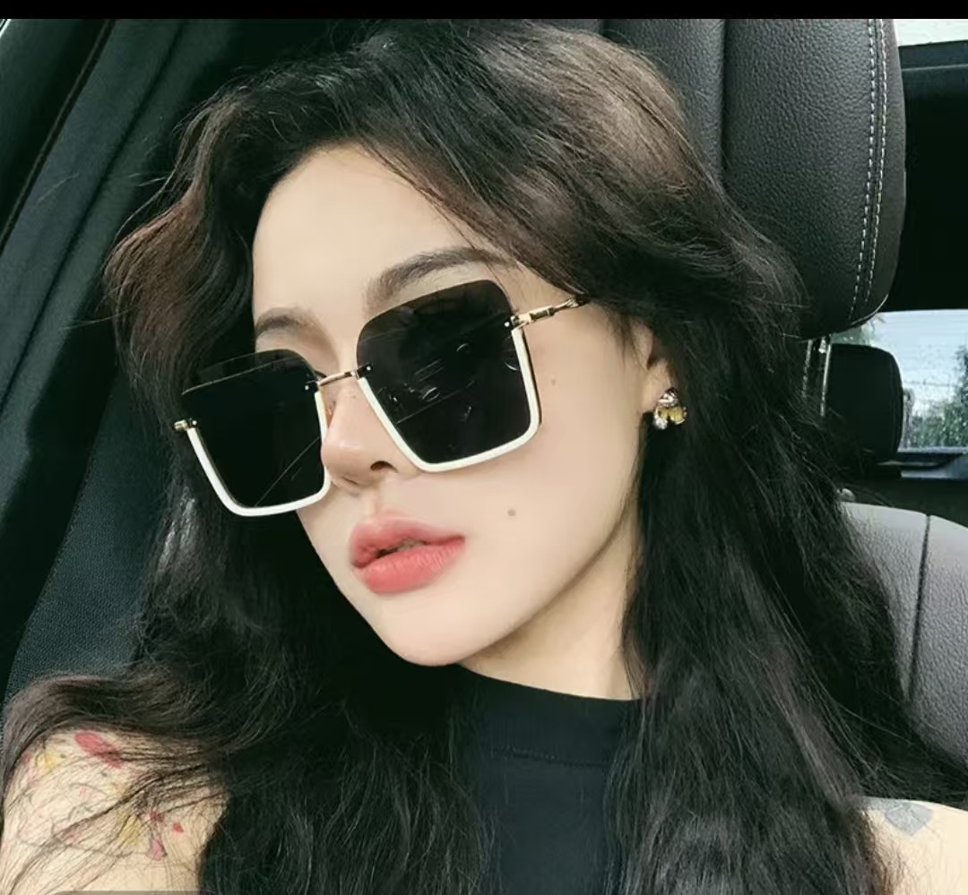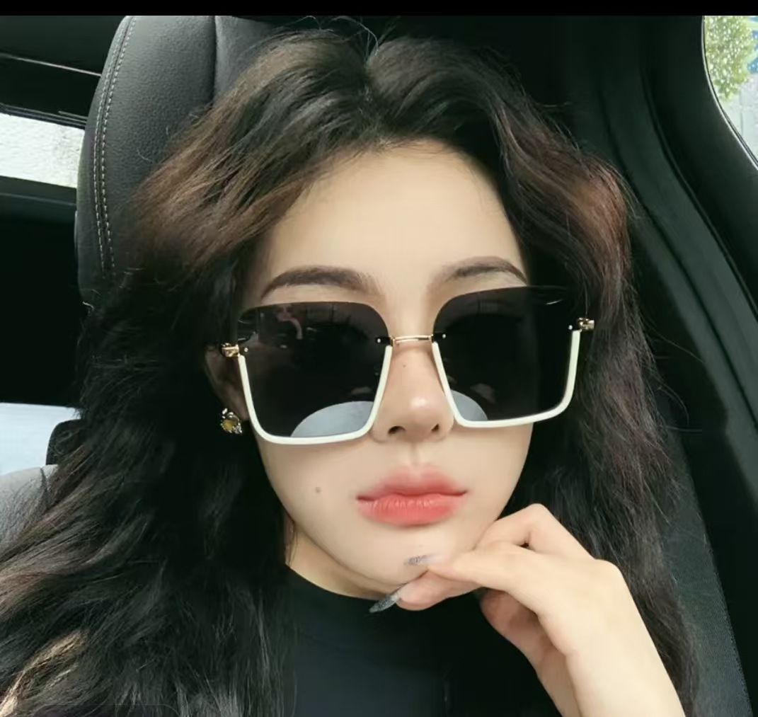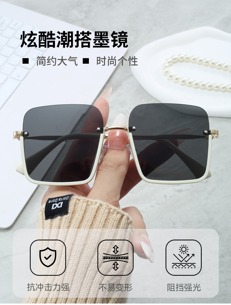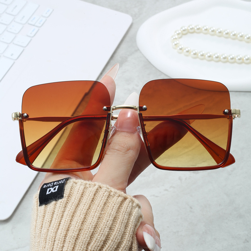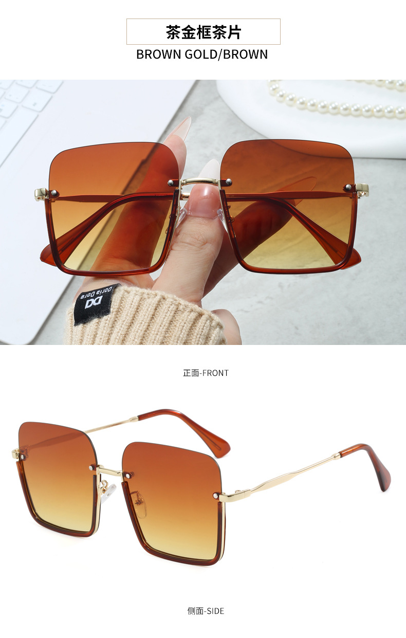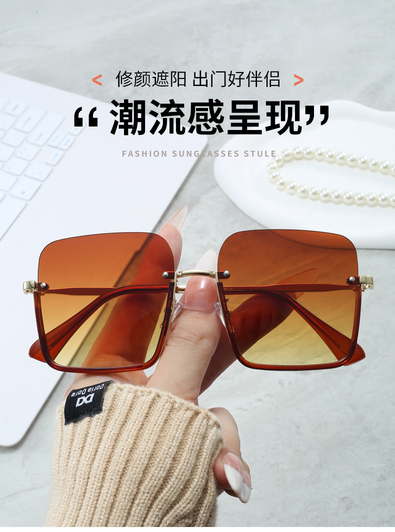 새로운 안티 자외선 하프 프레임 선글라스 남성용 컷 엣지 다크 브라운 박스가 장착 된 한국식 선글라스스토어 가기