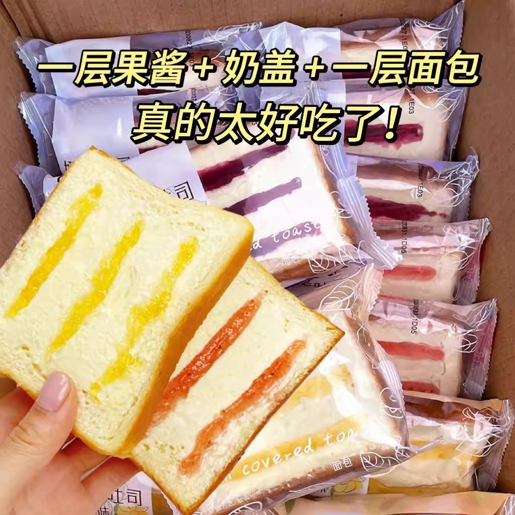 우유로 덮인 토스트 빵 블루 베리 노란색 복숭아 두꺼운 컷 토스트 케이크 전체 상자 아침 식사 스낵 식품 스낵 식사 교체스토어 가기
