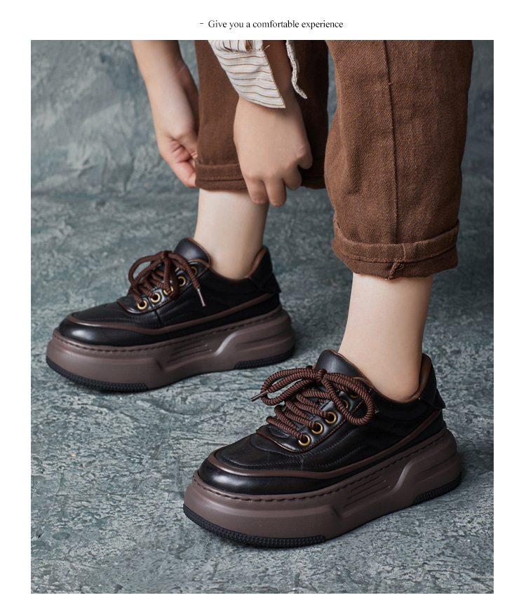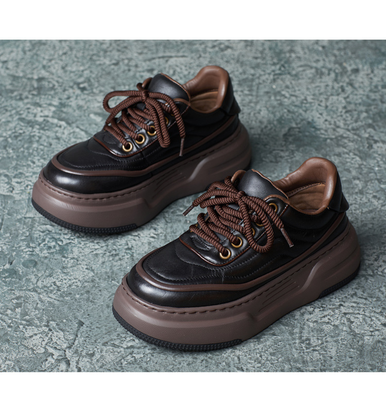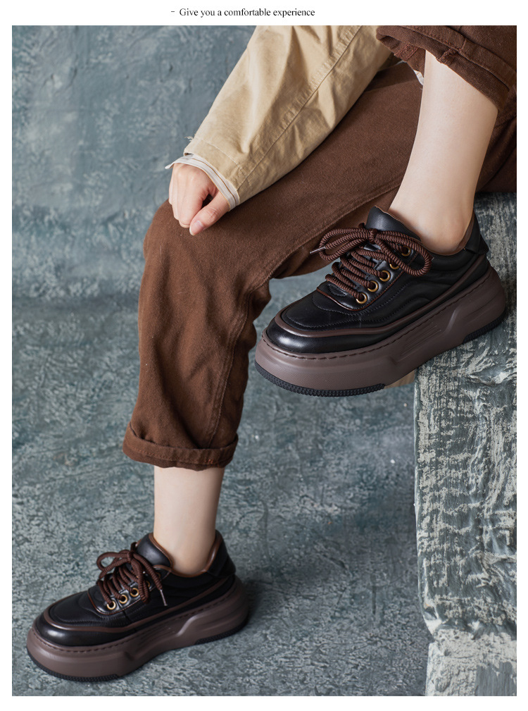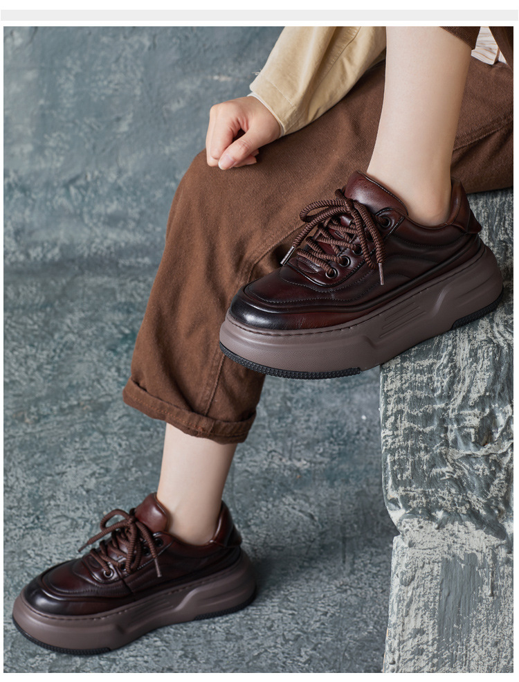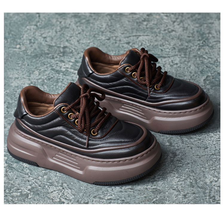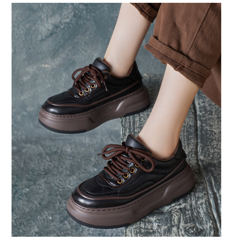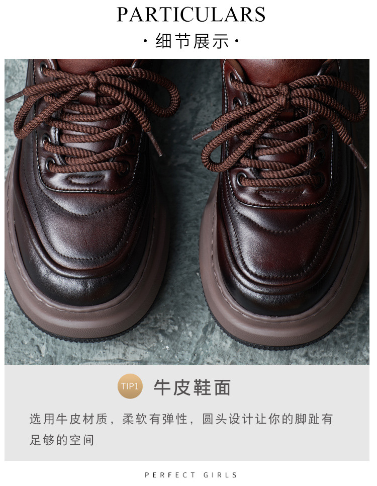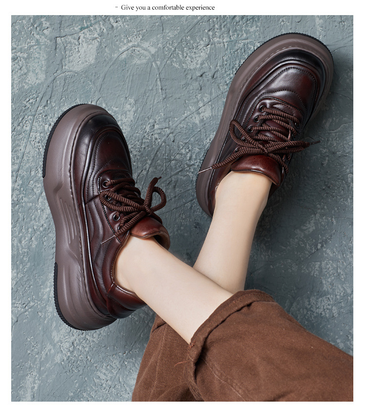 2025 가을 신상 소가죽 영국식 수제 끈 묶는 두꺼운 밑창 플랫 슈즈 여성용스토어 가기