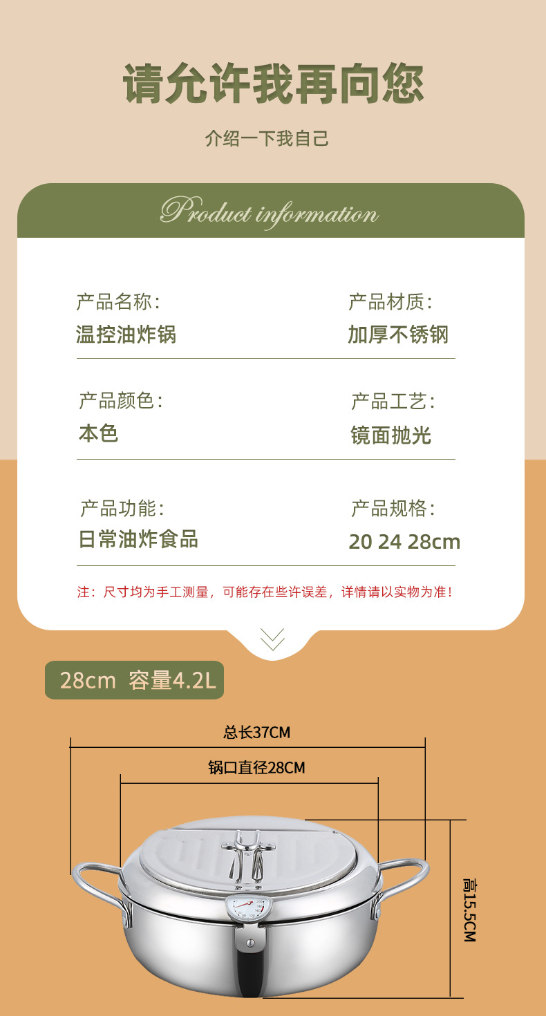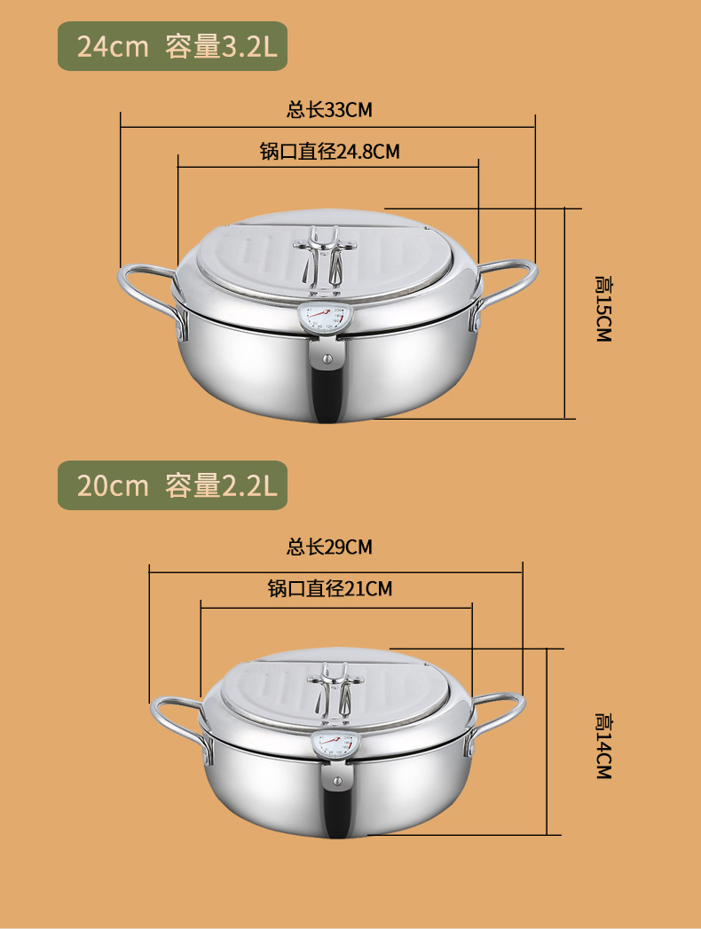 304 스테인레스 스틸 프라이어 온도계 온도 제어 일본 튀김 연료 절약 냄비 유도 쿠커 가스 포트스토어 가기