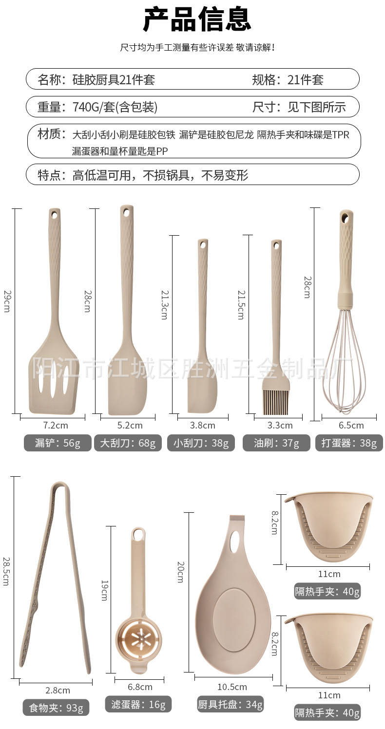 새로운 실리콘 주걱 비 스틱 특수 주걱 실리콘 주걱 세트 가정용 수프 스푼 주방 요리 도구 21 조각 세트