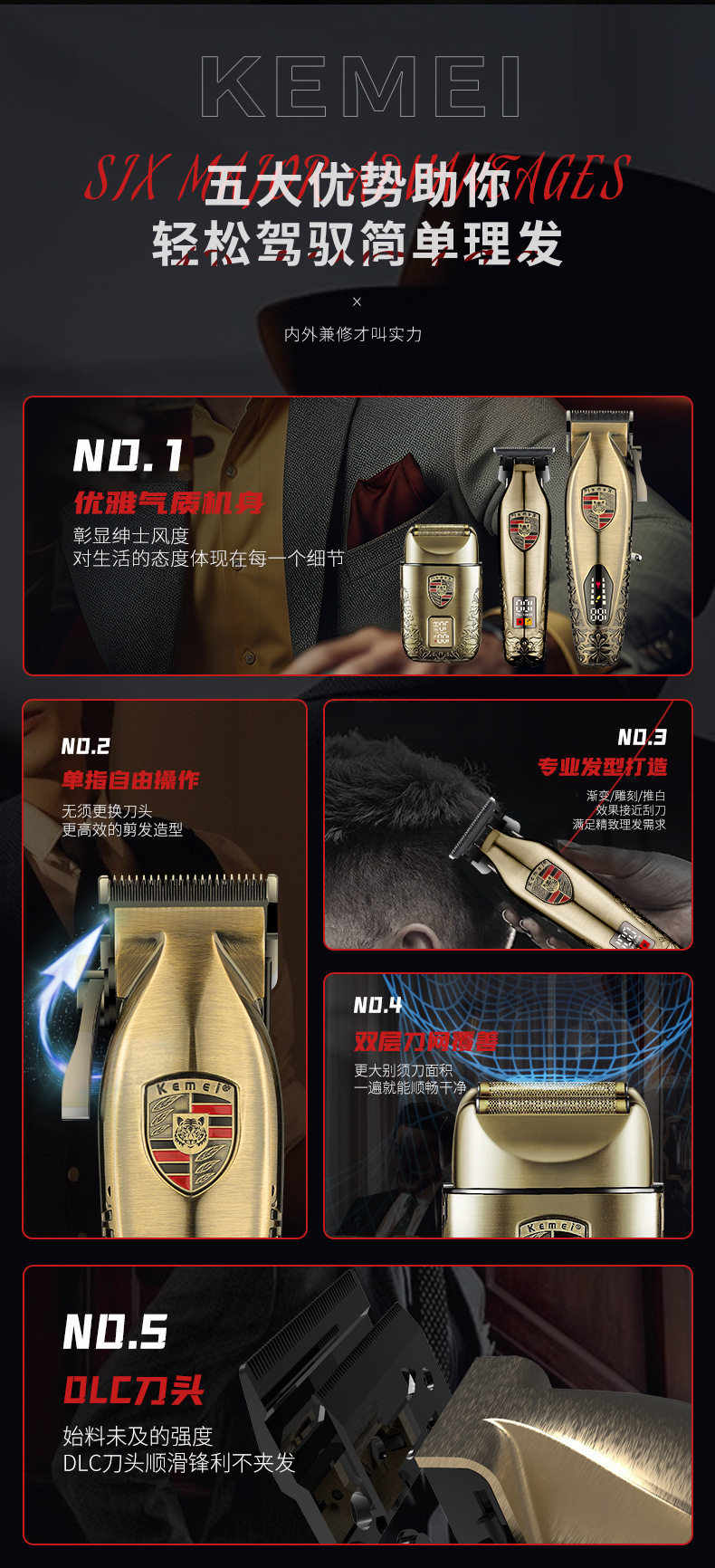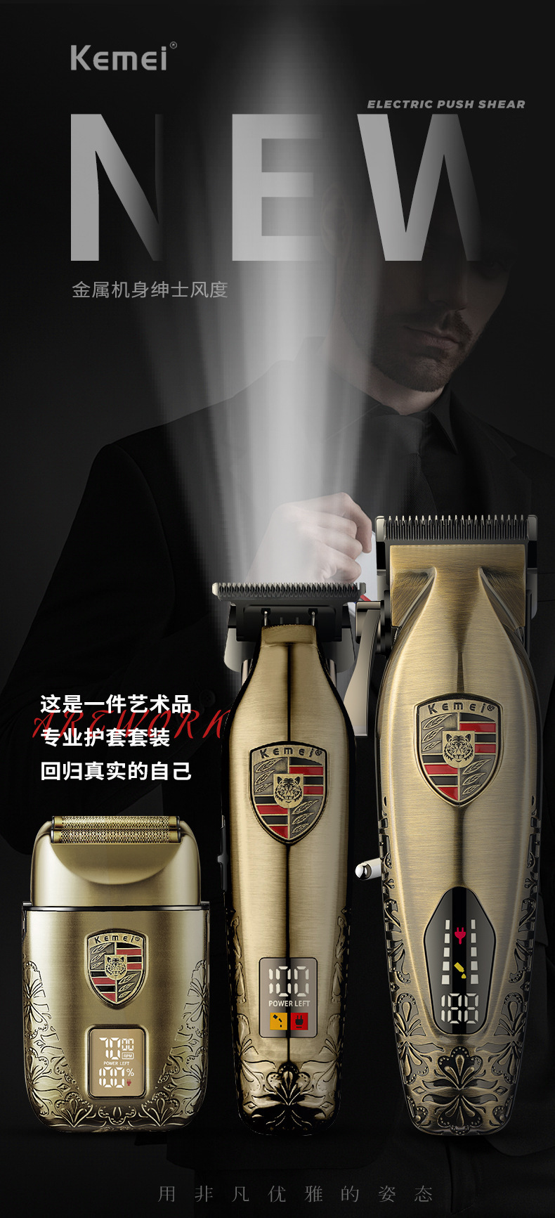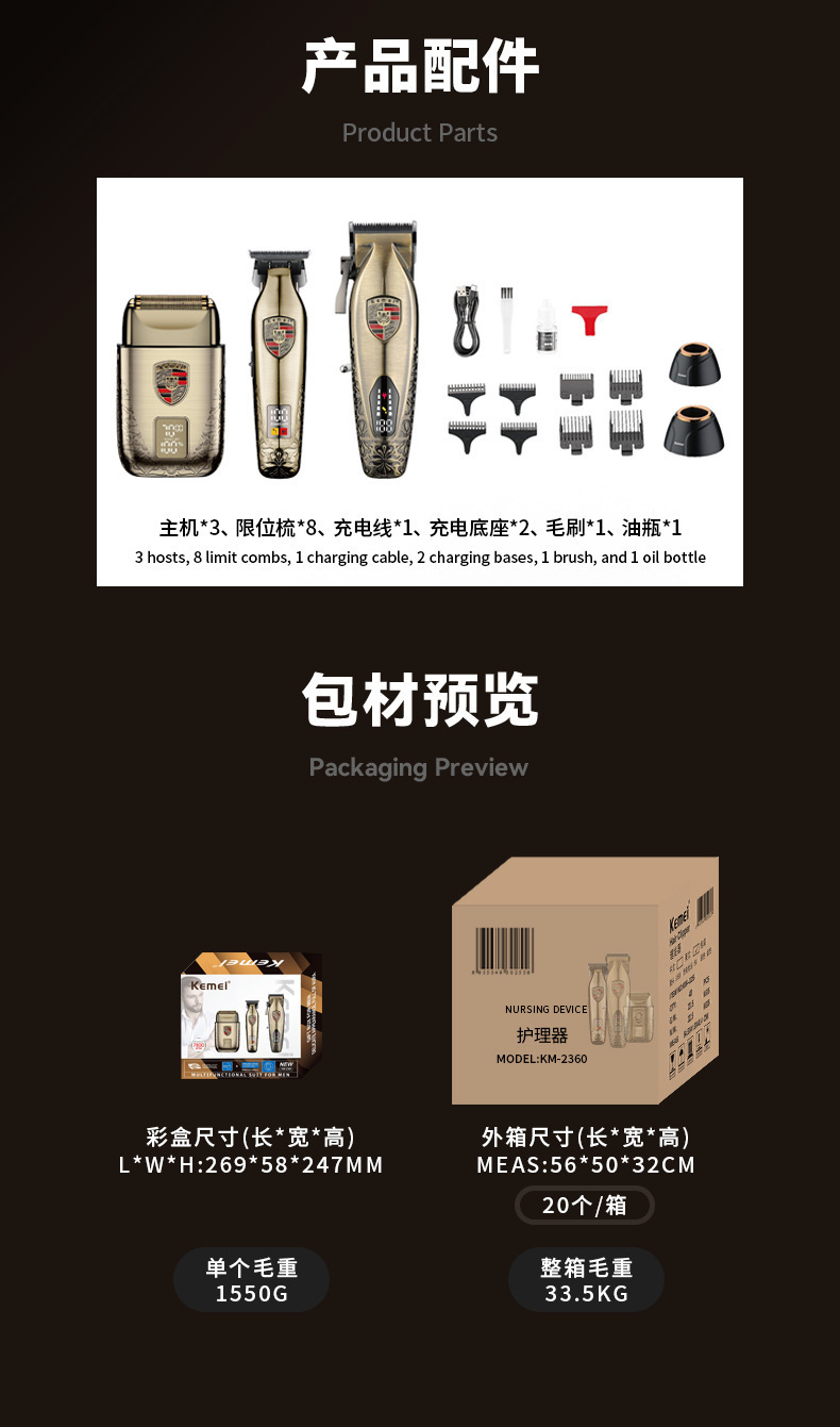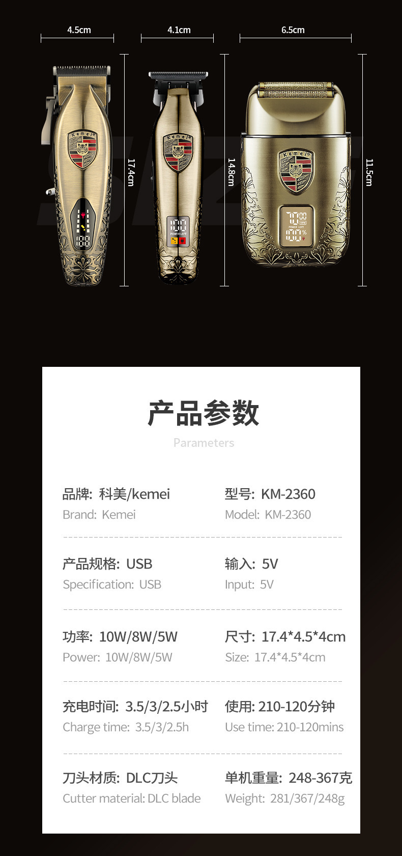 科美km-2360理发器套装新款跨境往复式浮动刮胡刀数显金属剃须刀