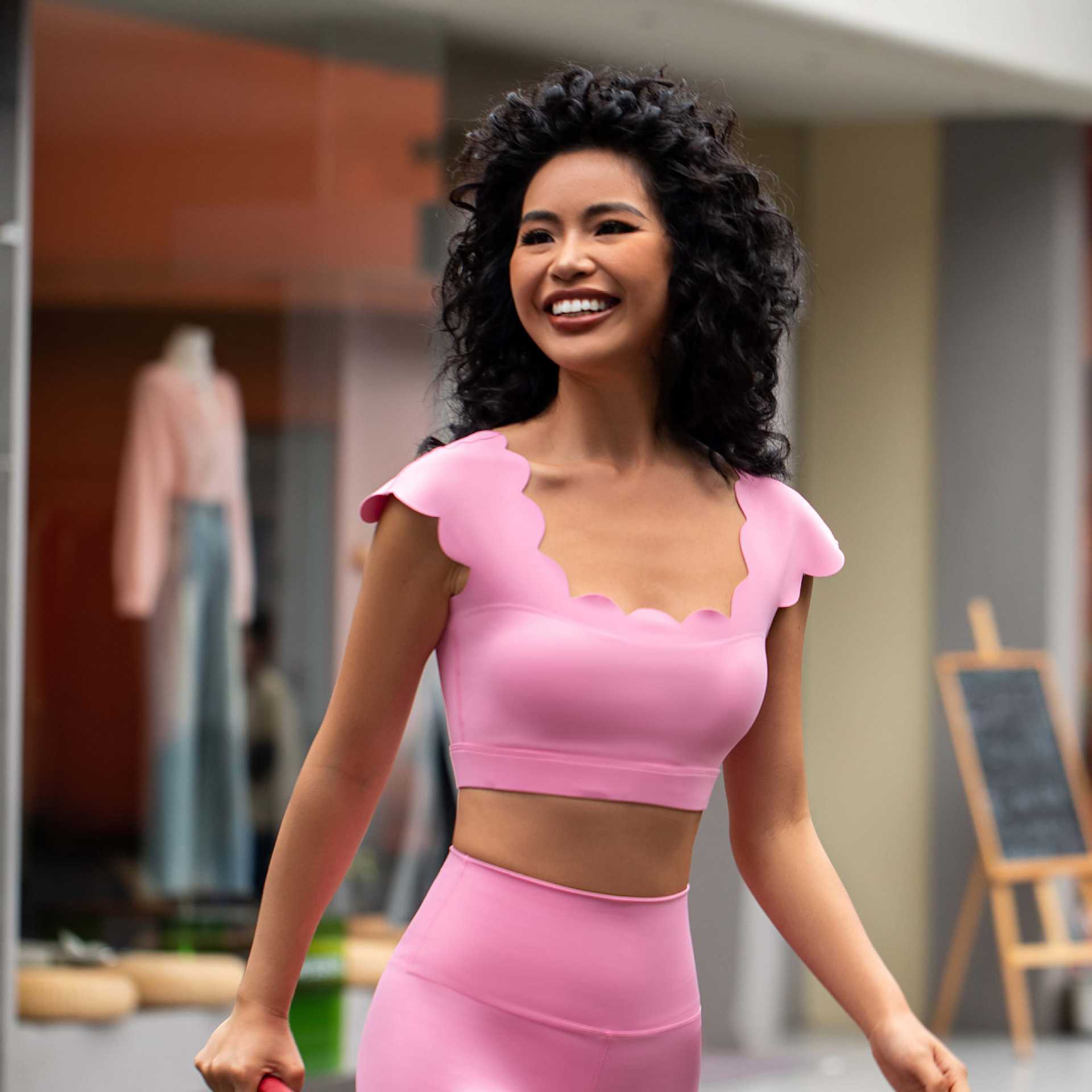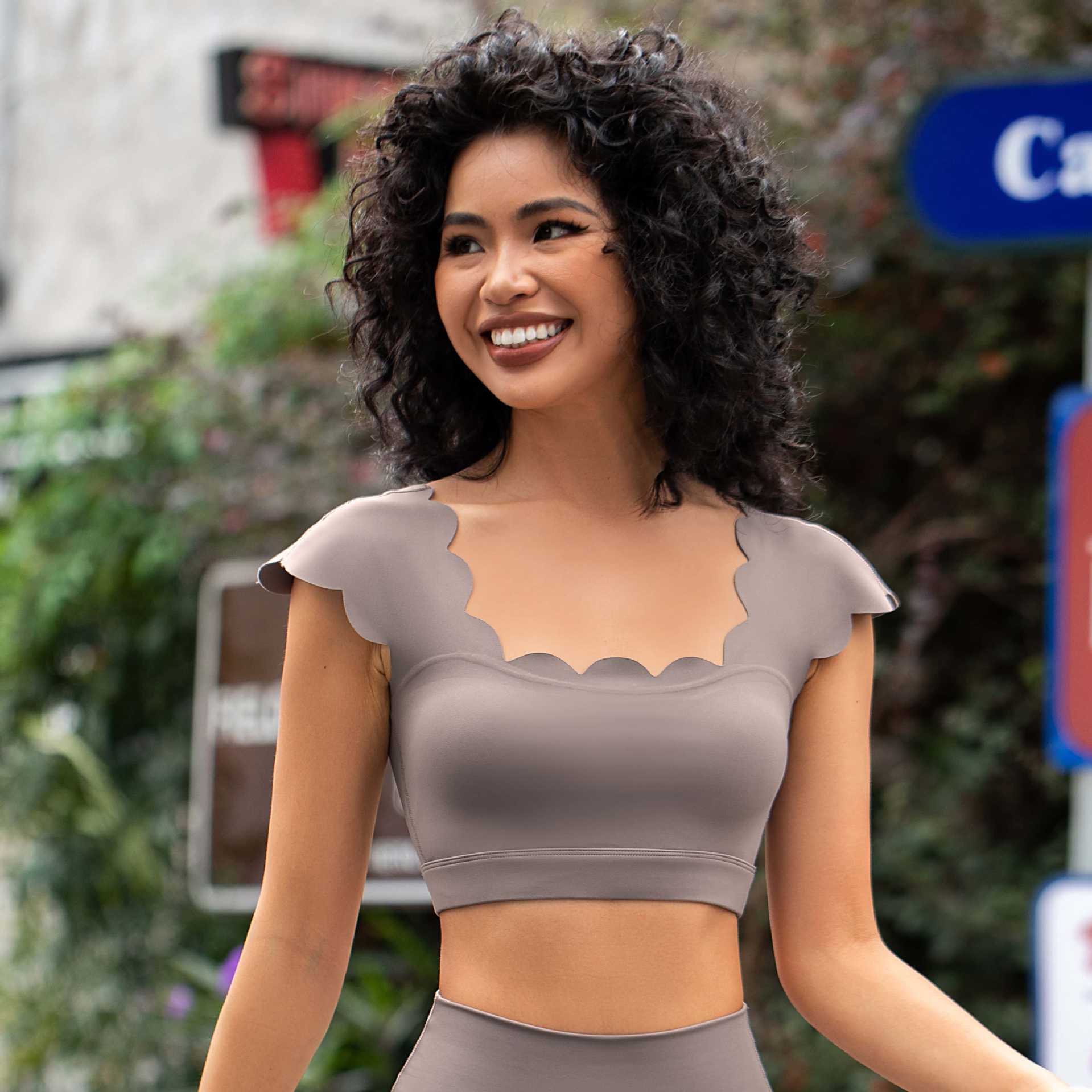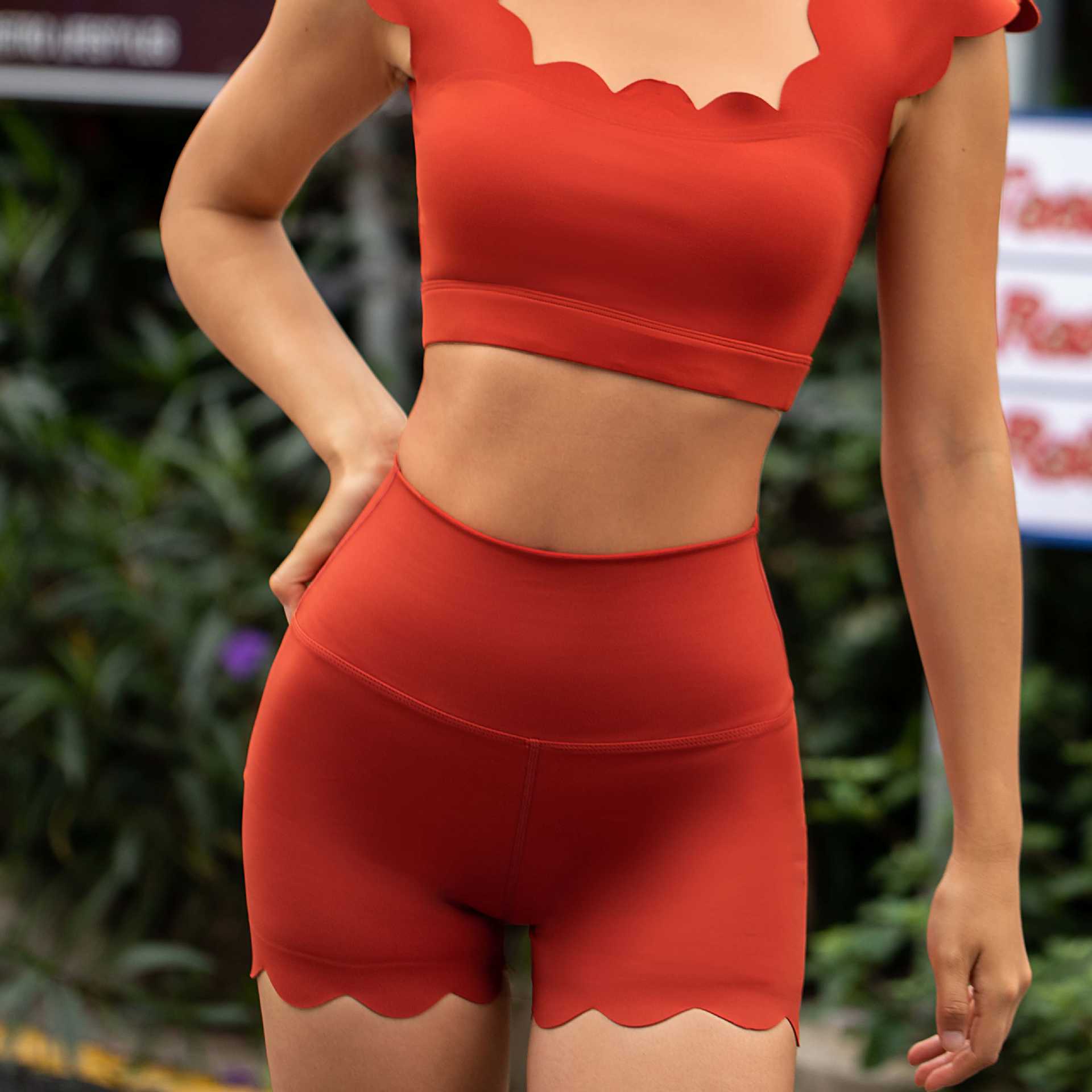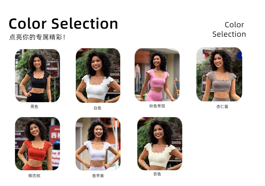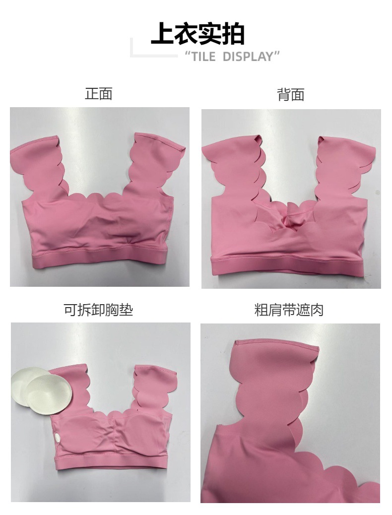 유럽과 미국의 새로운 스타일 반팔 스포츠 피트니스 탑, 누드 느낌의 스포츠 요가 탱크탑, 레이스 장식 투피스 여성 세트스토어 가기