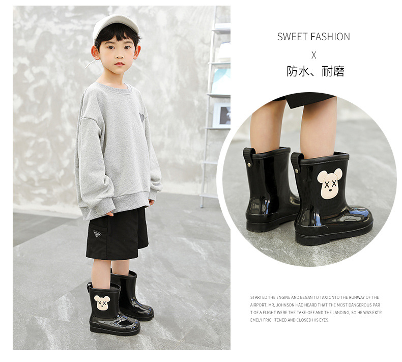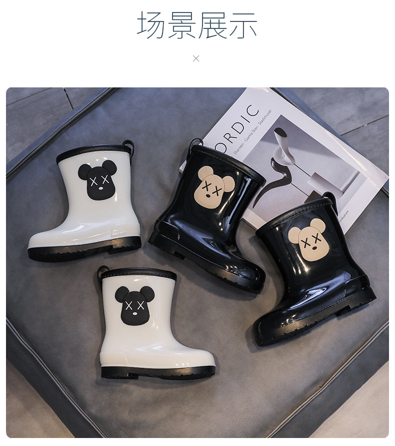 일본과 한국 버전의 어린이 장화 경량 환경 보호 소년 소녀 장화 학생 신발 커버 소형, 중형 및 대형 어린이 물 신발 미끄럼 방지 패션스토어 가기