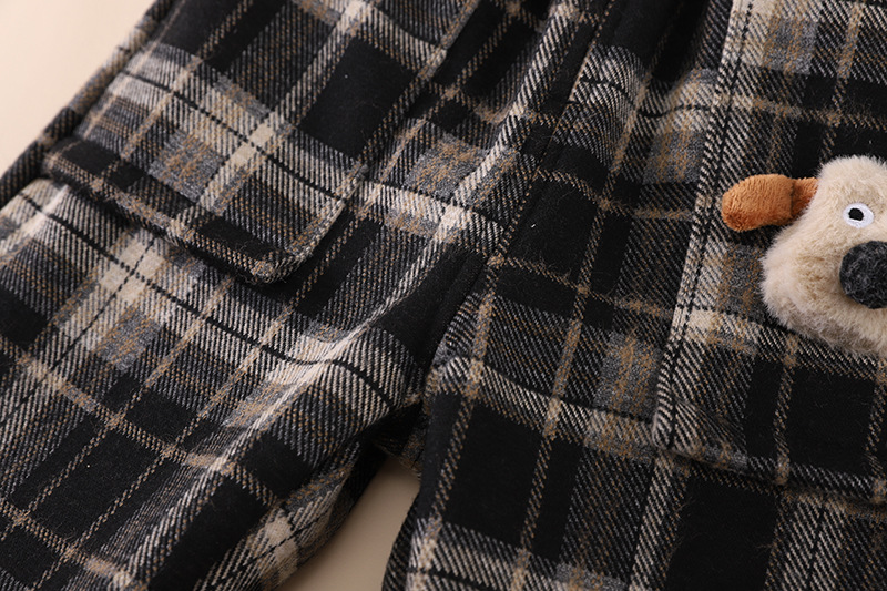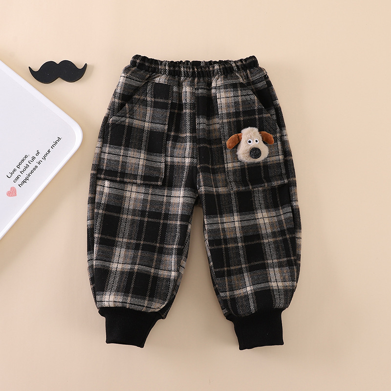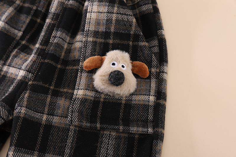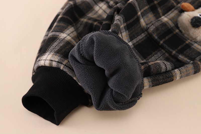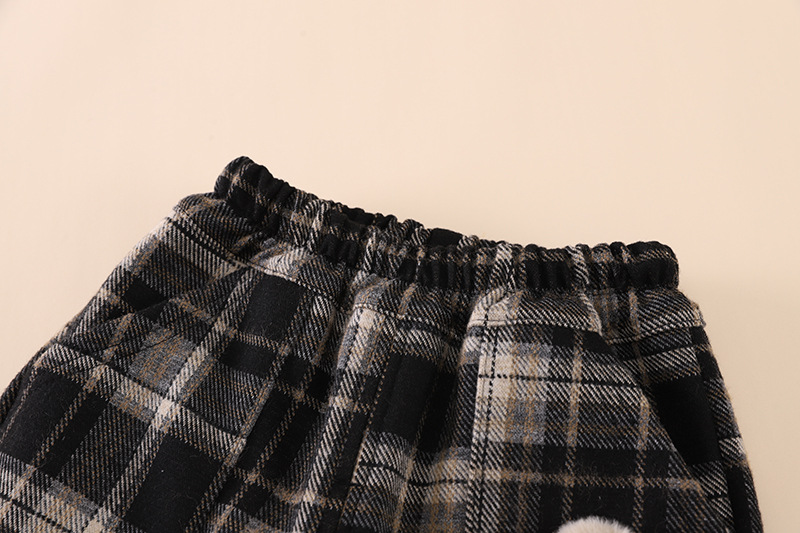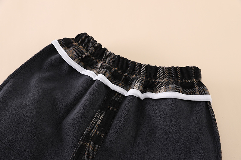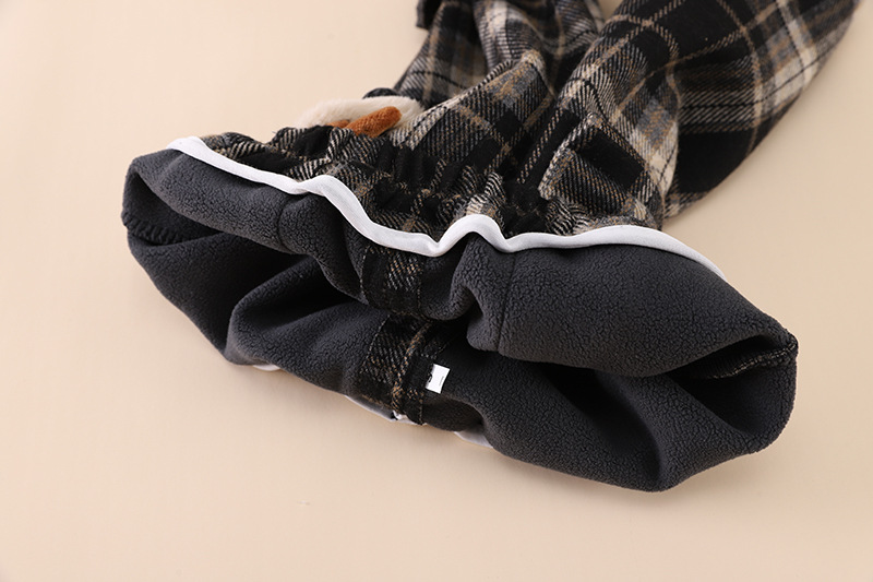 • 검은색 격자 무늬 강아지 양털 바지