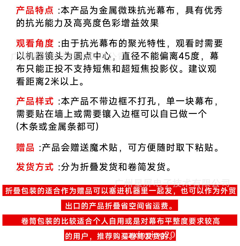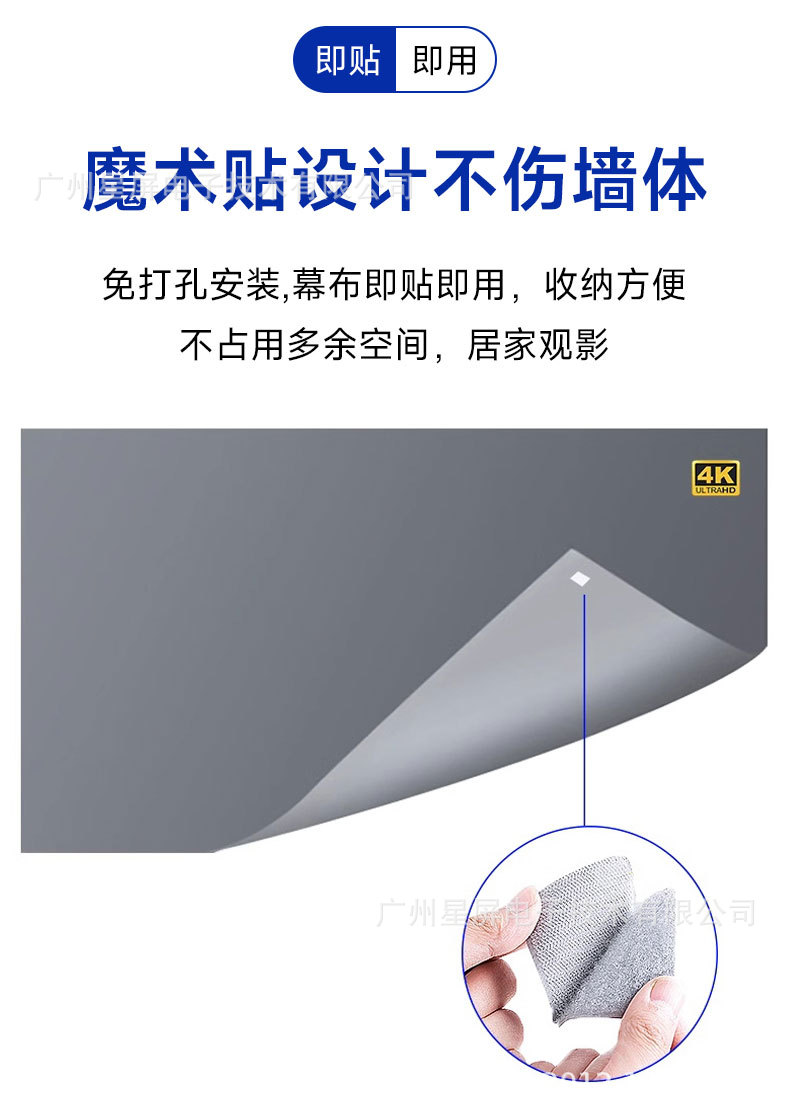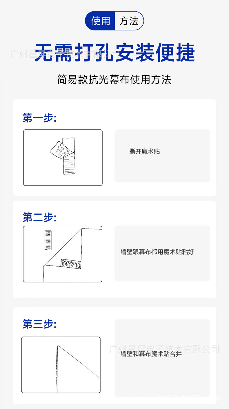 프로젝터 커튼 자체 접착 펀치없는 금속 안티 라이트 접이식 100inch 홈 커튼 소프트 라이트 스크린 네일 프리