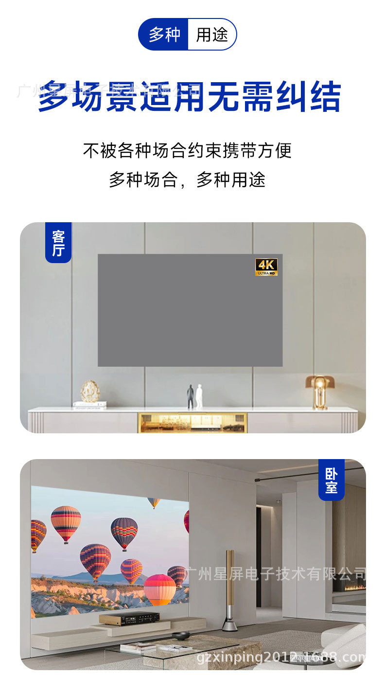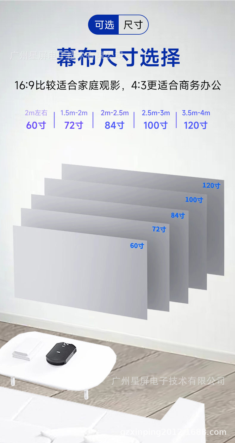 프로젝터 커튼 자체 접착 펀치없는 금속 안티 라이트 접이식 100inch 홈 커튼 소프트 라이트 스크린 네일 프리스토어 가기