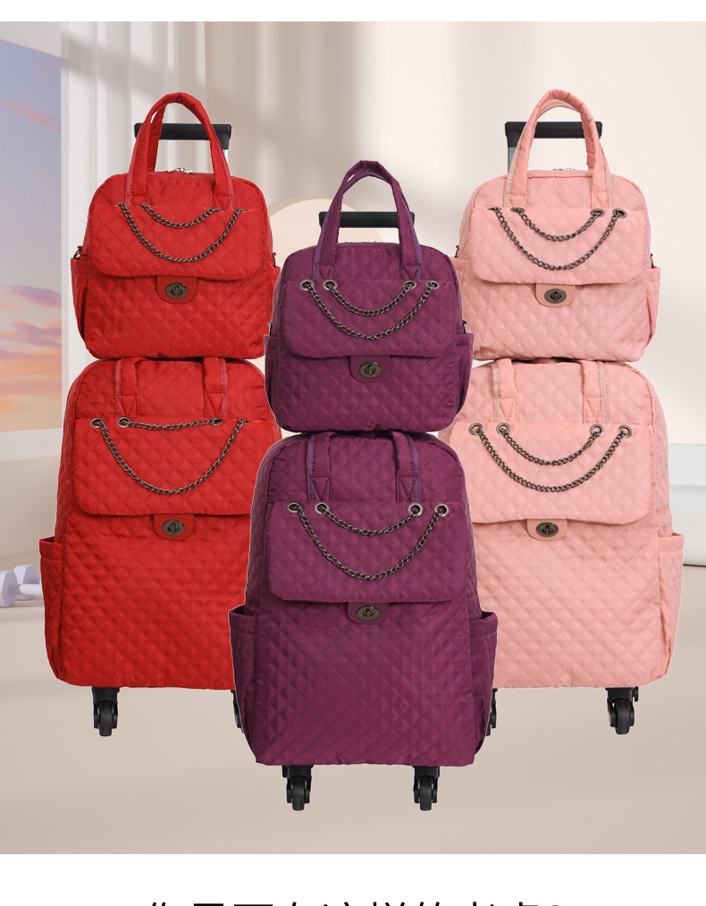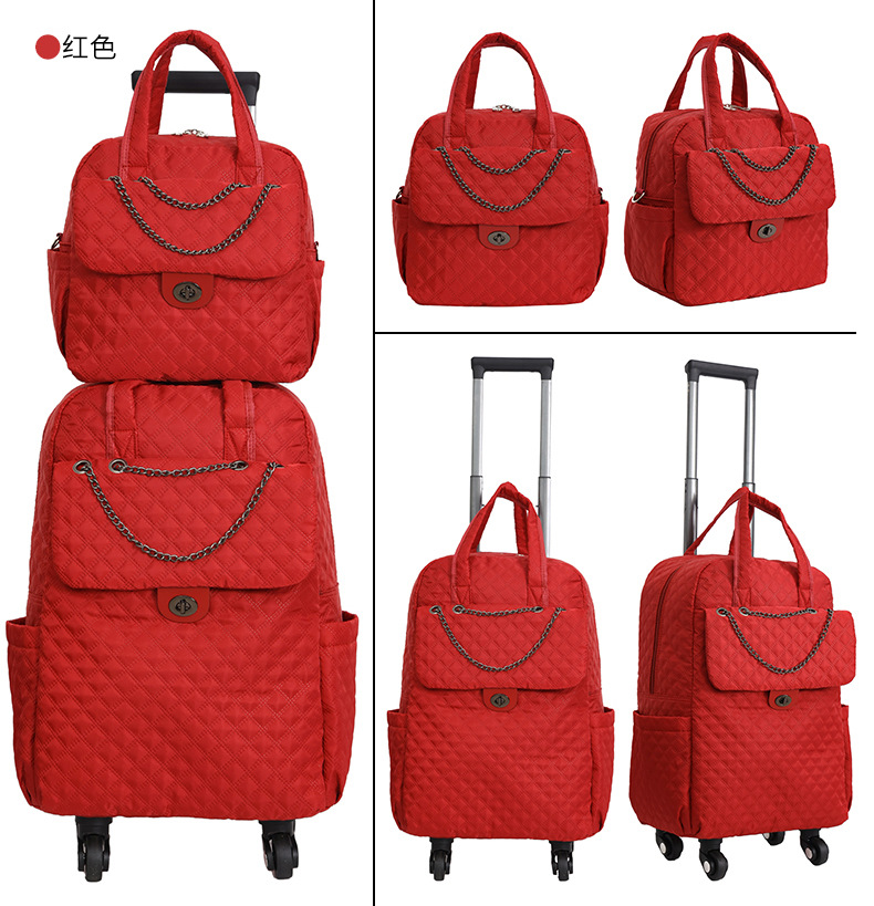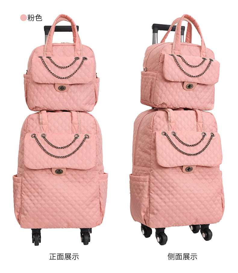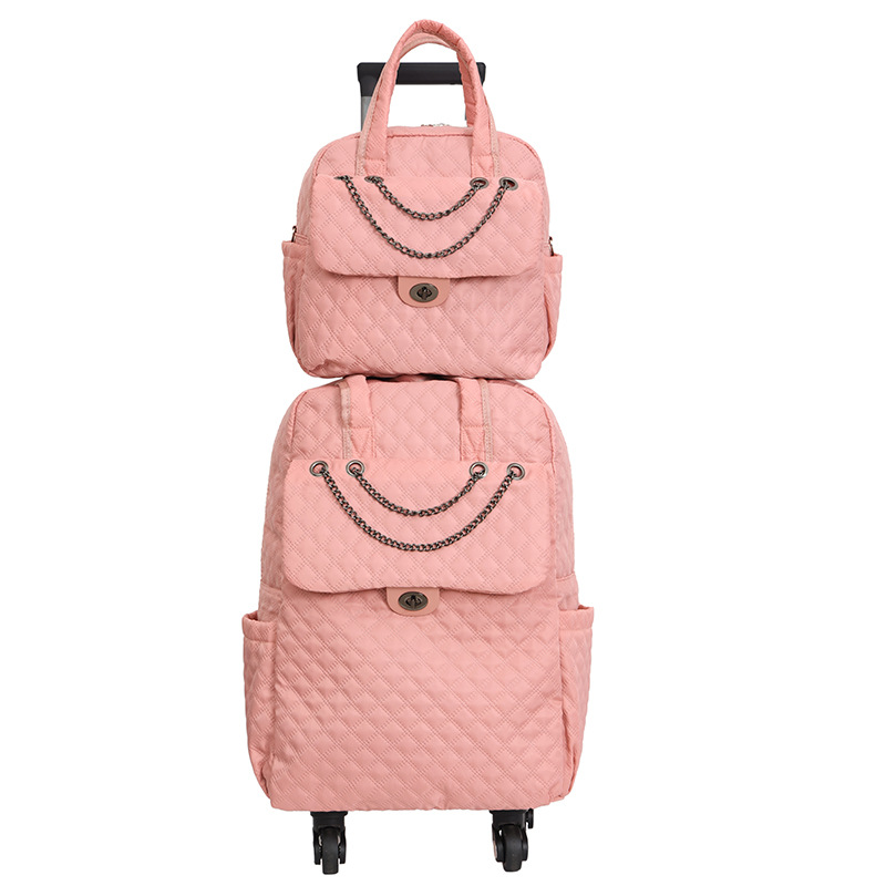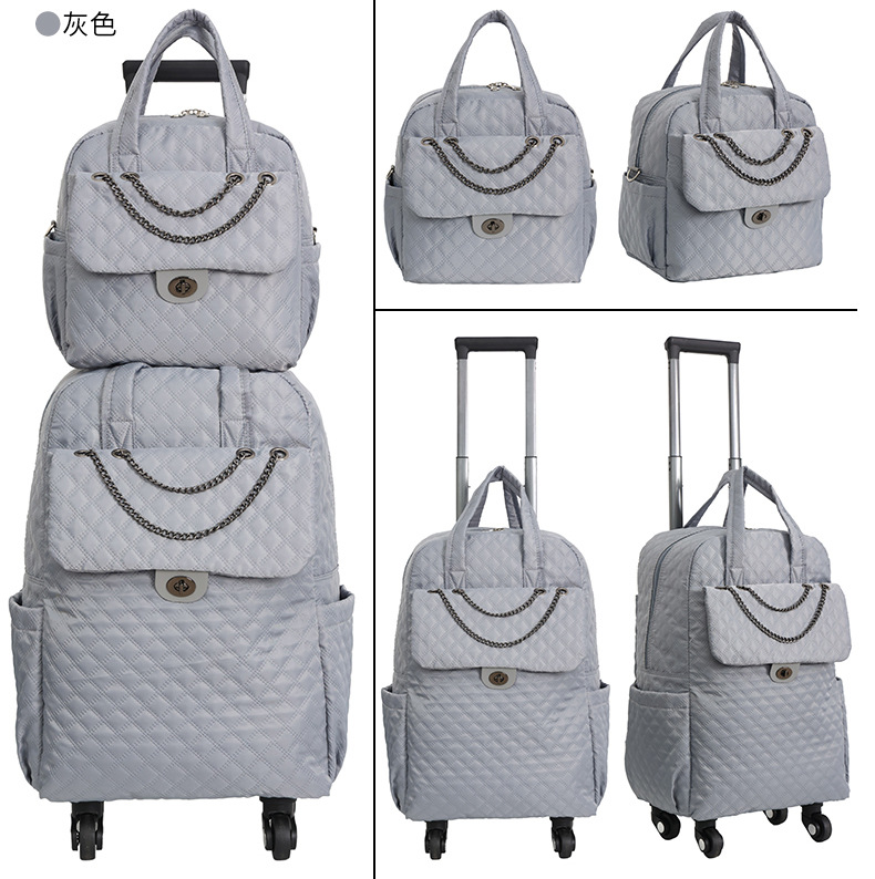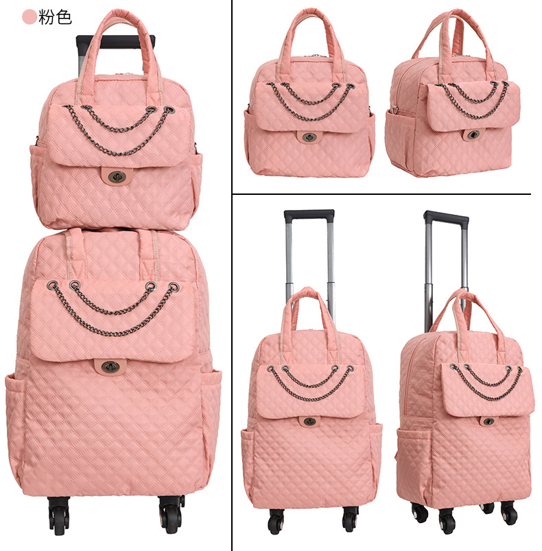 Lingge 작은 향기로운 스타일 트롤리 가방 유행 유행 휴대용 경량 여성용 간단한 보트 가방 가방 유니버설 휠 트롤리 가방스토어 가기