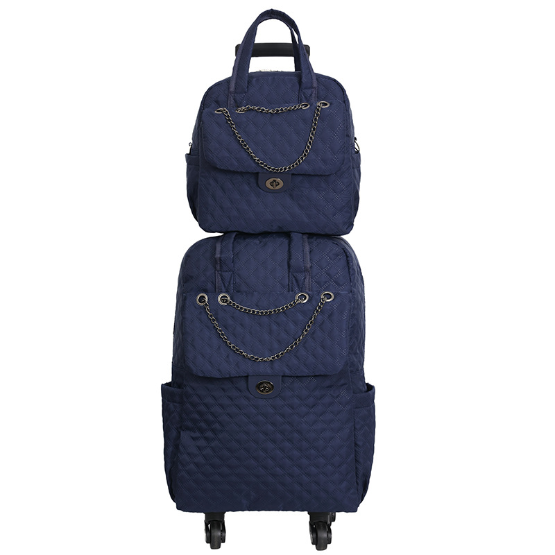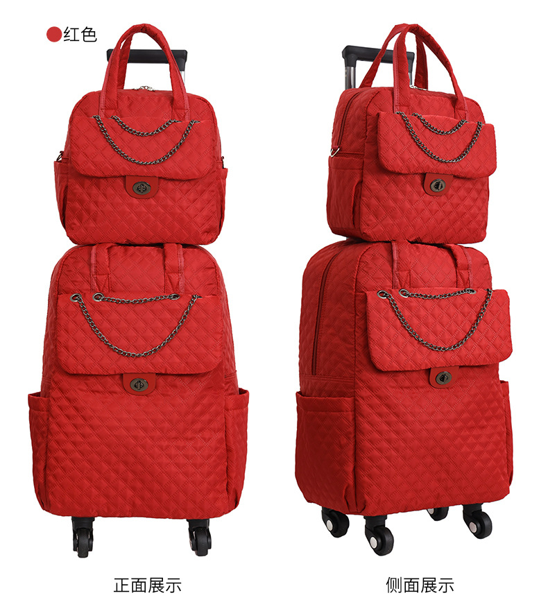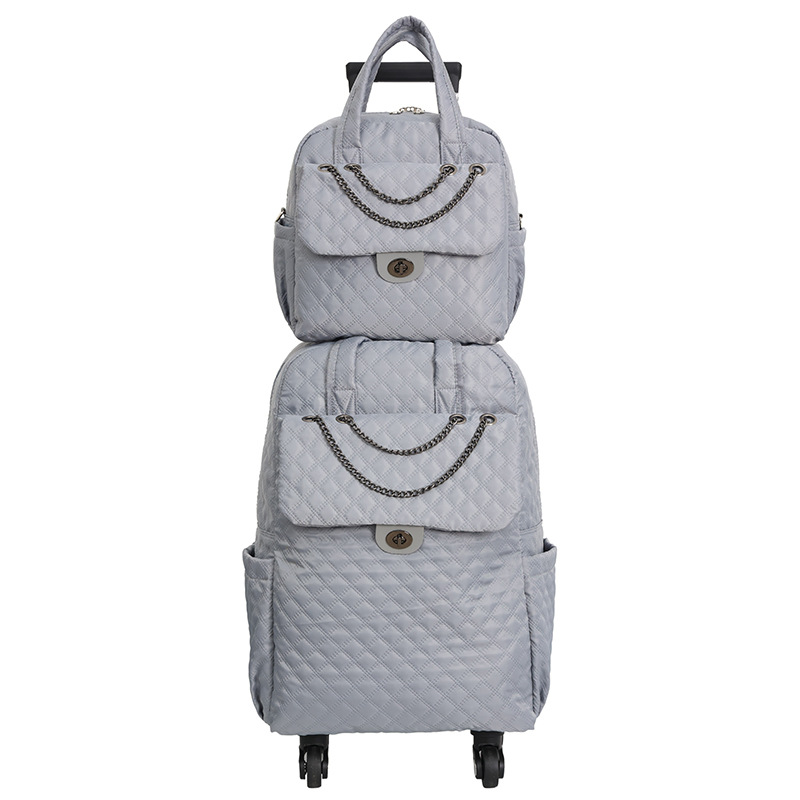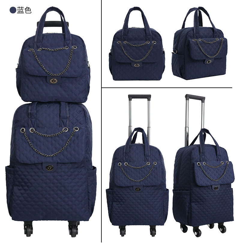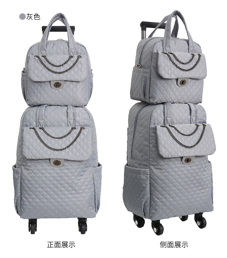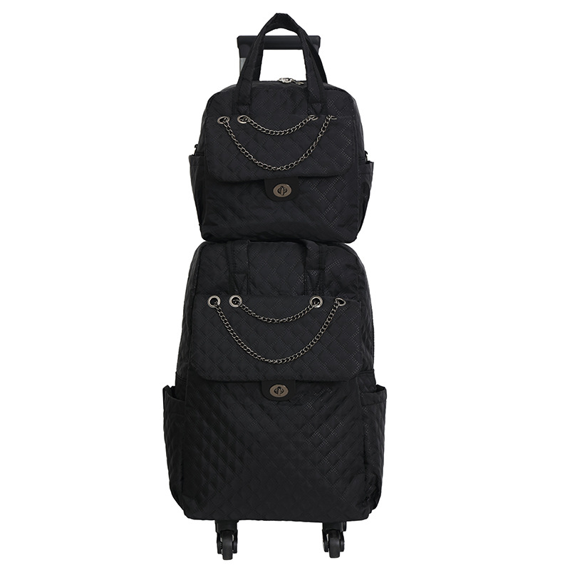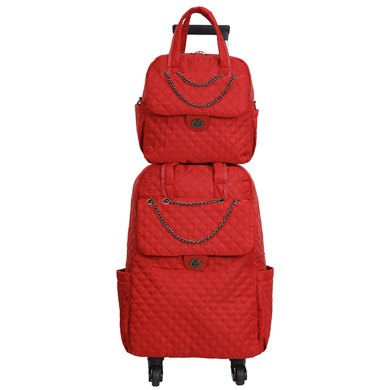 Lingge 작은 향기로운 스타일 트롤리 가방 유행 유행 휴대용 경량 여성용 간단한 보트 가방 가방 유니버설 휠 트롤리 가방스토어 가기